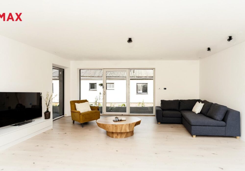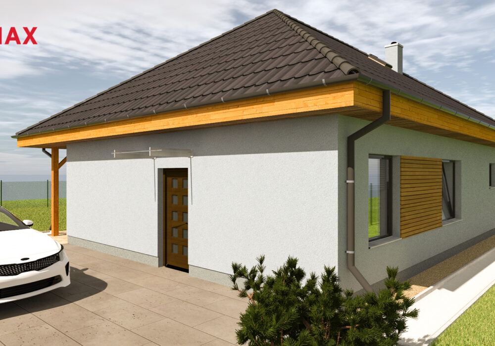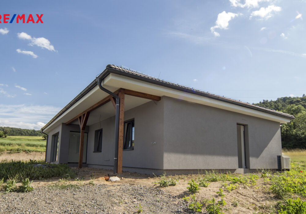 Jedná se o ekonomicky úspornou novostavbu jednopodlažního bungalovu navrženou tak, aby splňovala současné nároky na moderní domov. Tak je koncipován i interiér s dispozicí 4+kk. U vchodu do budovy se nachází technická místnost pro obsluhu tepelného čerpadla, dále jsou umístěny 3 ložnice, 2 z nich mají vlastní šatnu, z chodby je dále vstup do koupelny s WC a do dalšího, samostatného WC. V čele chodby vstoupíme do prostorného, světlého obývacího pokoje s přípravou na kuchyňský kout. Zde jsou francouzská okna do zahrady.