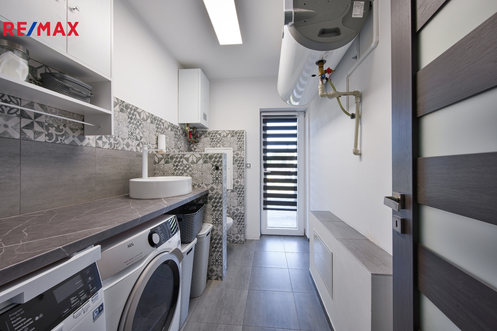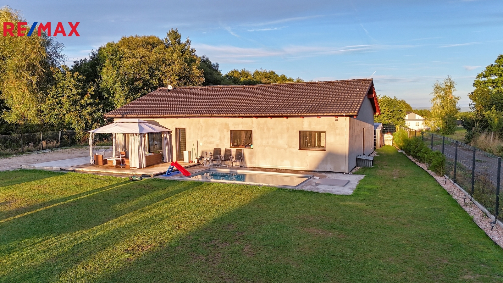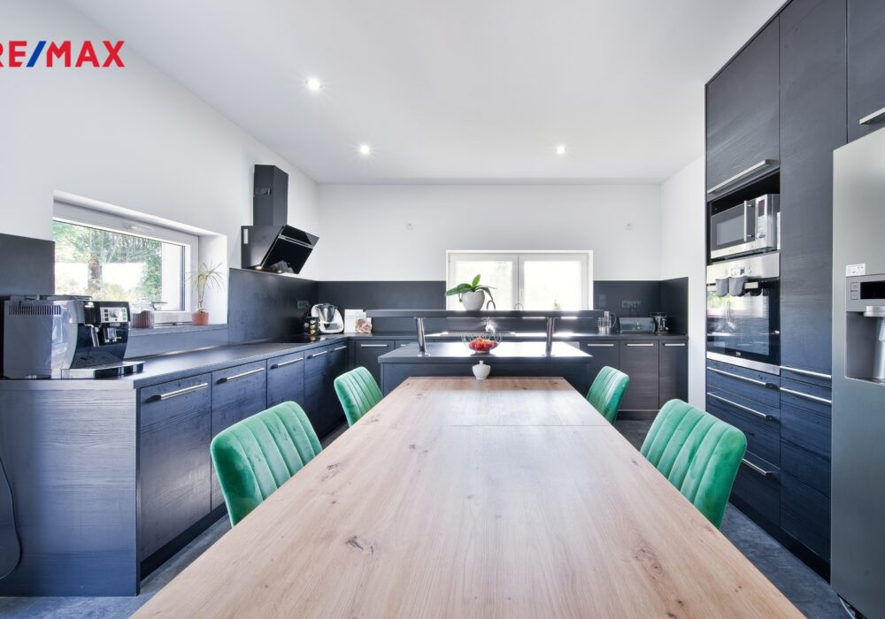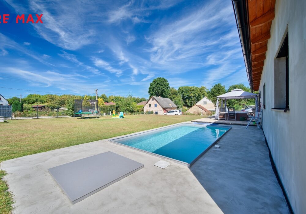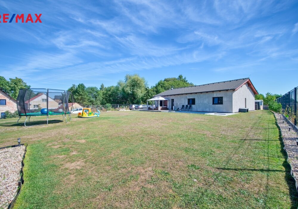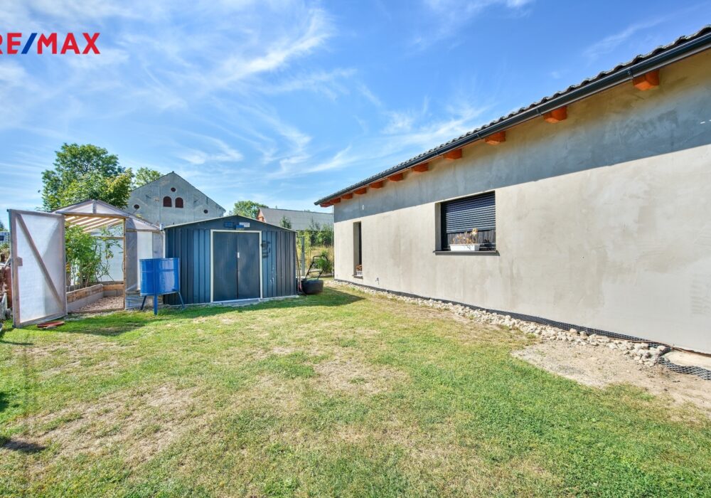 Zděný dům byl kolaudován v roce 2022, má skvěle promyšlenou dispozici i pro početnější rodinu. Výstup z obývacího pokoje přímo na terasu k bazénu (s protiproudem), je přesně to co chcete při teplých letních dnech. Obývací pokoj spolu s krásnou designovou kuchyní disponuje bezmála 40m2. Technická místnost (prádelna) s toaletou je přesně to co ocení každá žena v domácnosti, stejně tak jako šatní místnost přímo u hlavní ložnice. Dětské pokoje jsou zde dva, které jsou přes chodbu od hlavní ložnice a každý člen rodiny tím získává dostatek soukromí.