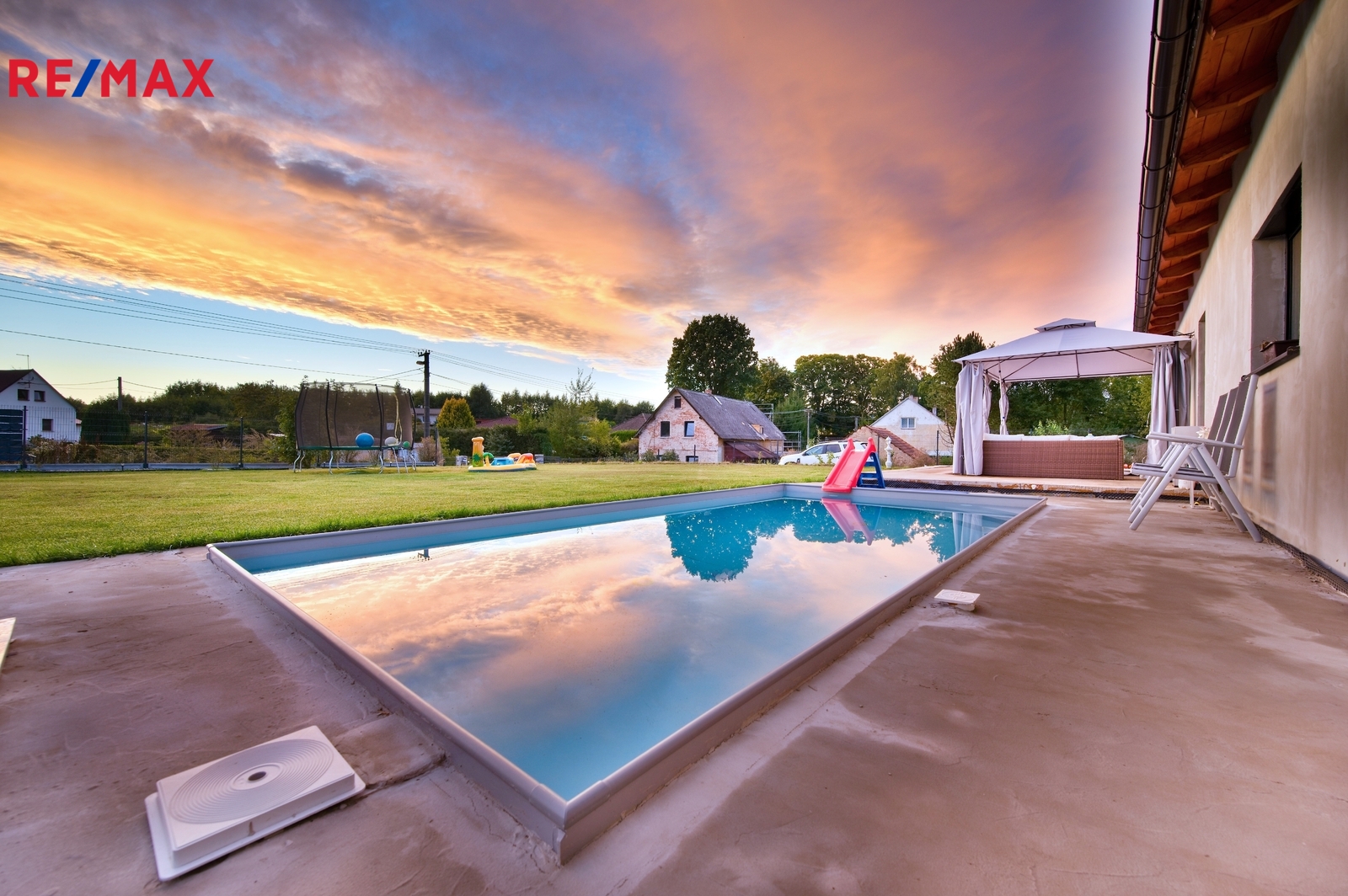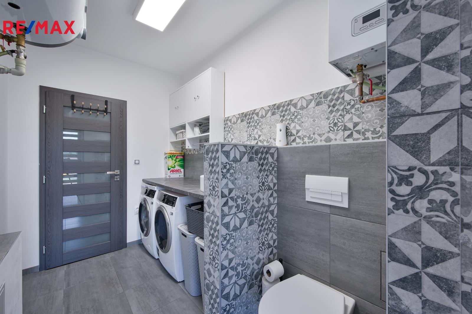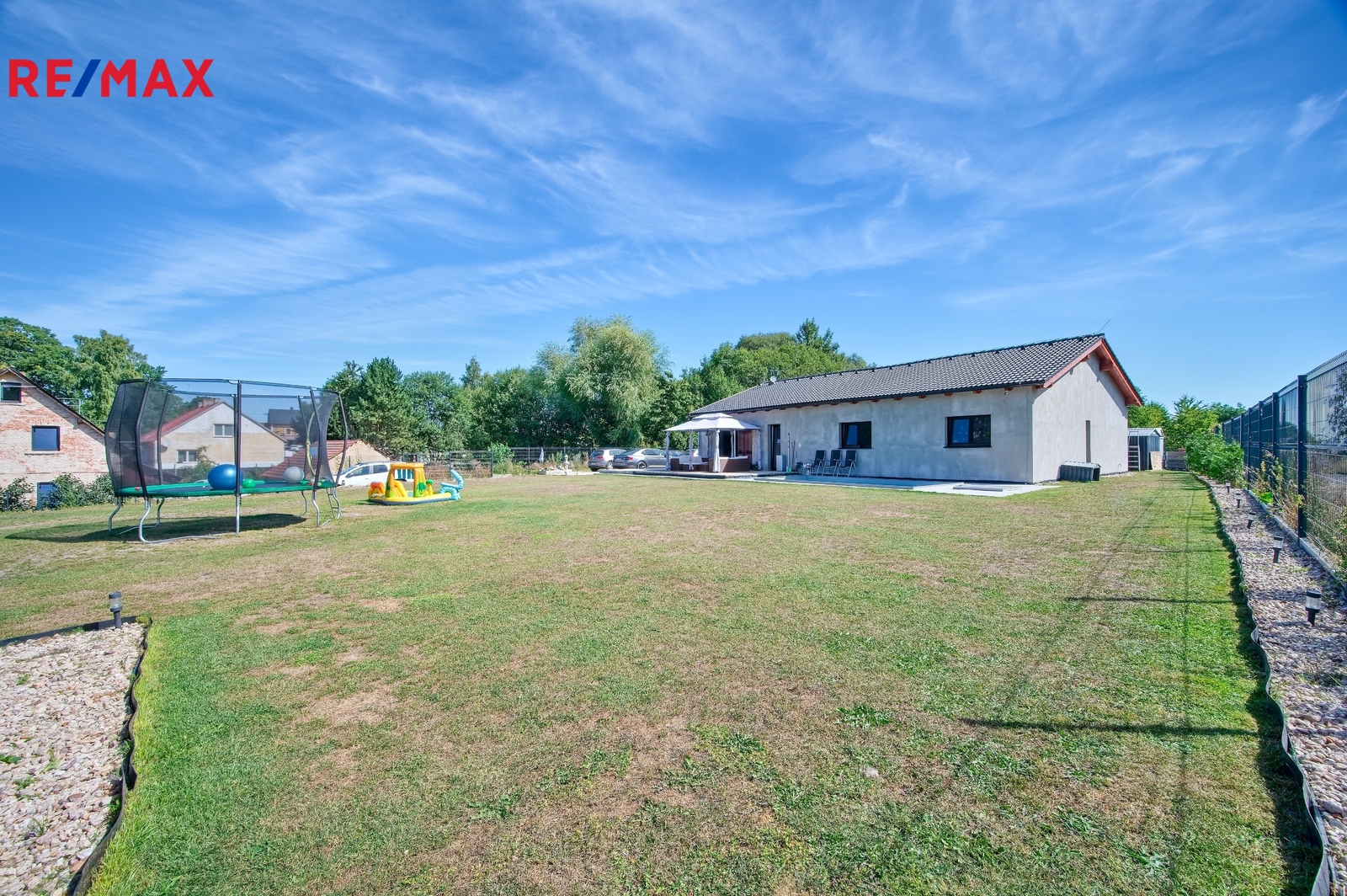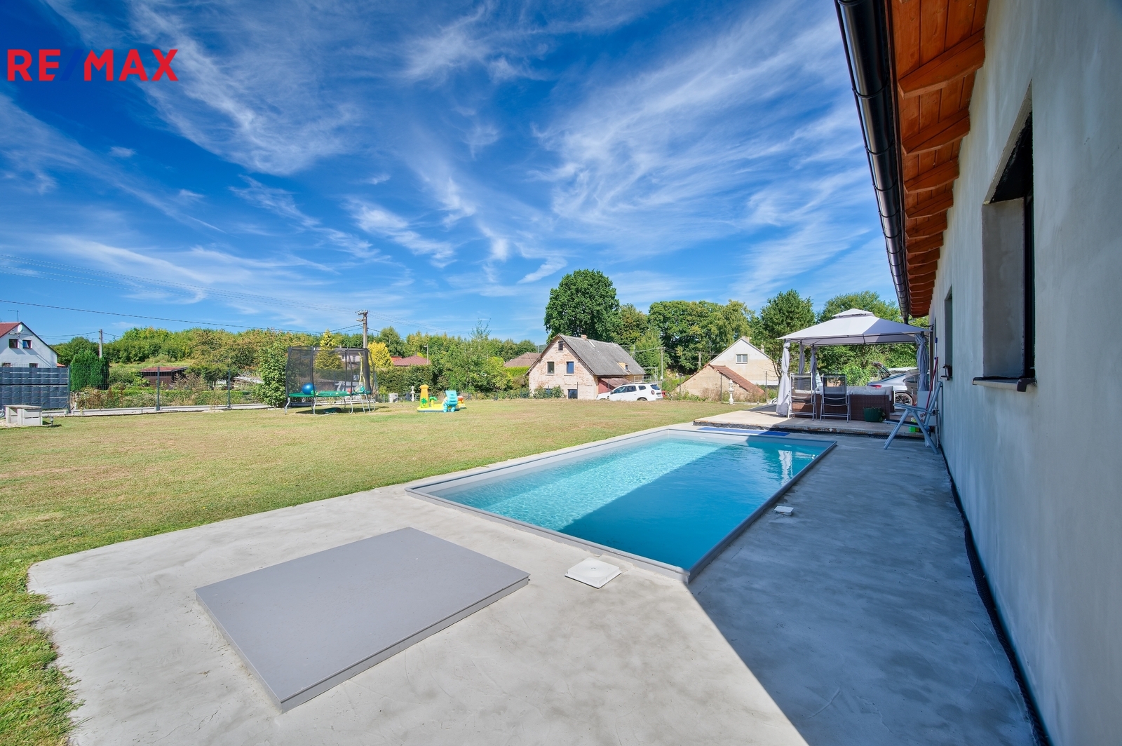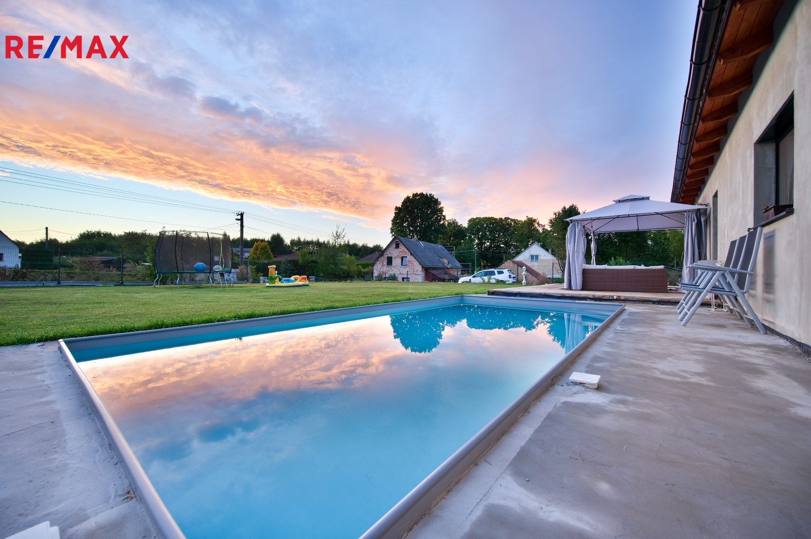 Zděný dům byl kolaudován v roce 2022, má skvěle promyšlenou dispozici i pro početnější rodinu. Výstup z obývacího pokoje přímo na terasu k bazénu (s protiproudem), je přesně to co chcete při teplých letních dnech. Obývací pokoj spolu s krásnou designovou kuchyní disponuje bezmála 40m2. Technická místnost (prádelna) s toaletou je přesně to co ocení každá žena v domácnosti, stejně tak jako šatní místnost přímo u hlavní ložnice. Dětské pokoje jsou zde dva, které jsou přes chodbu od hlavní ložnice a každý člen rodiny tím získává dostatek soukromí.
