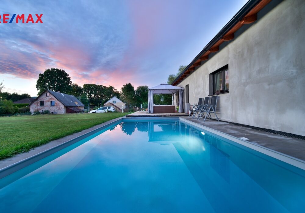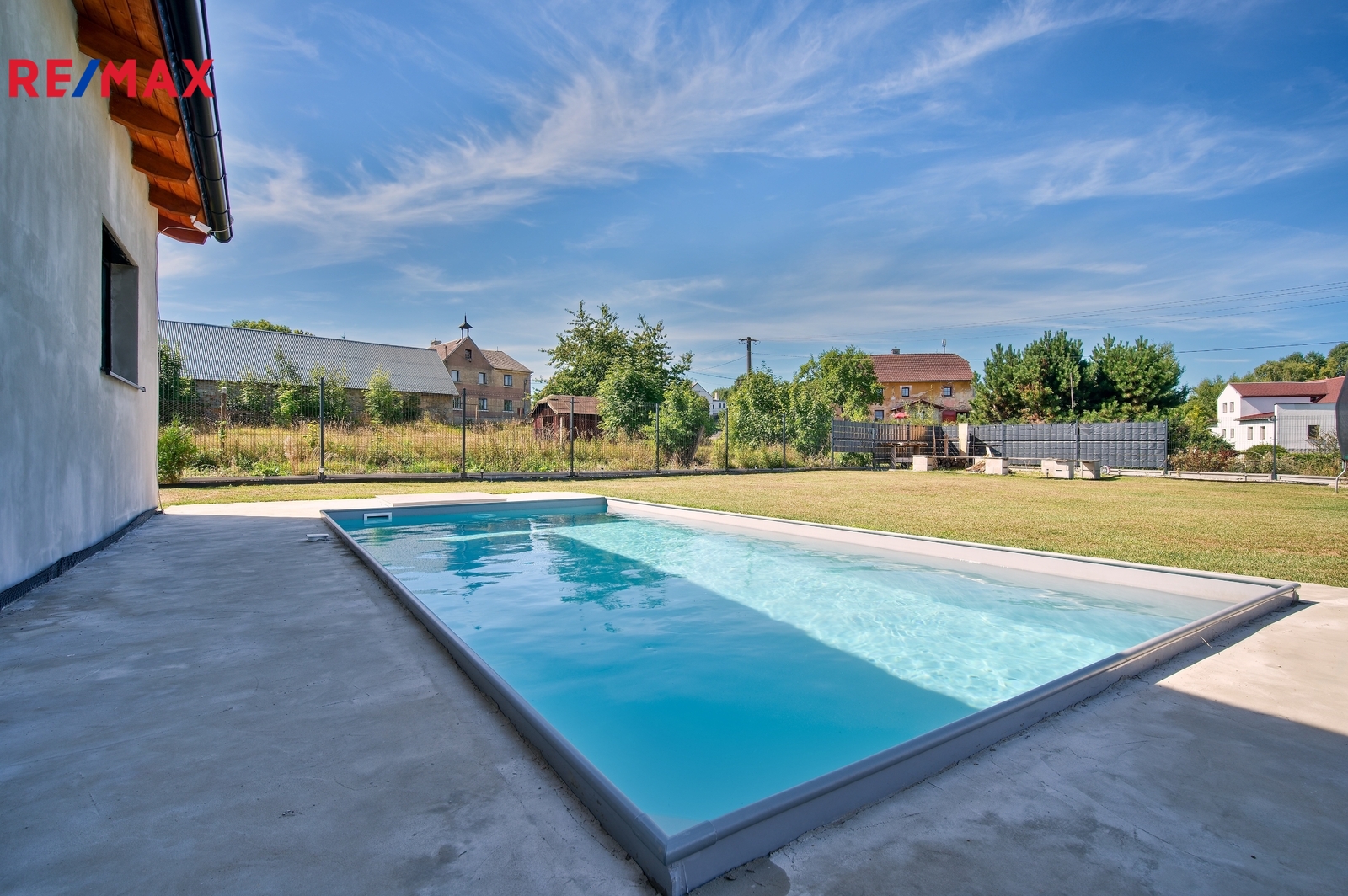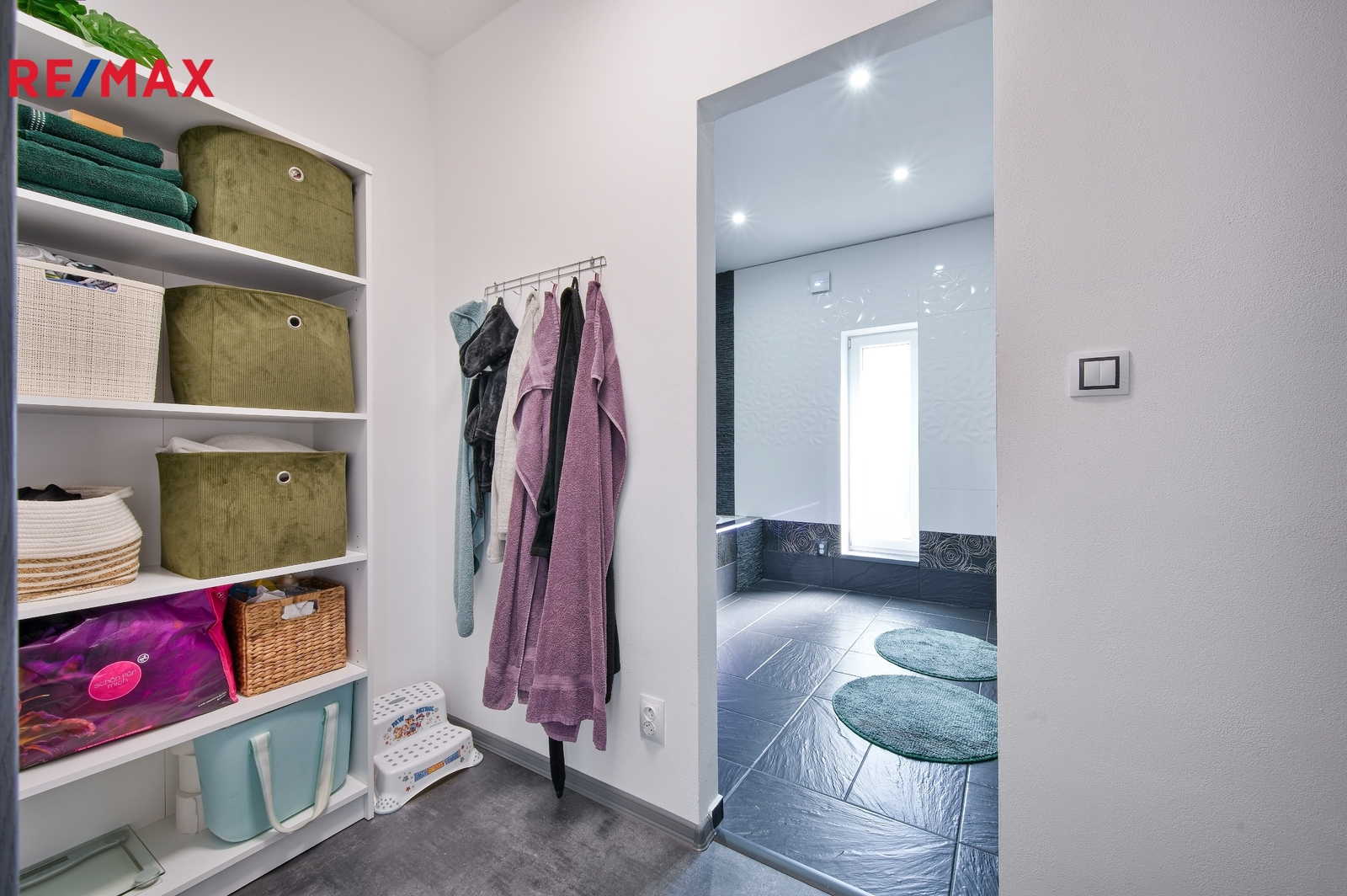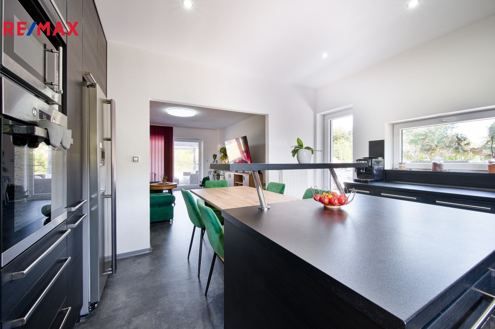 Zděný dům byl kolaudován v roce 2022, má skvěle promyšlenou dispozici i pro početnější rodinu. Výstup z obývacího pokoje přímo na terasu k bazénu (s protiproudem), je přesně to co chcete při teplých letních dnech. Obývací pokoj spolu s krásnou designovou kuchyní disponuje bezmála 40m2. Technická místnost (prádelna) s toaletou je přesně to co ocení každá žena v domácnosti, stejně tak jako šatní místnost přímo u hlavní ložnice. Dětské pokoje jsou zde dva, které jsou přes chodbu od hlavní ložnice a každý člen rodiny tím získává dostatek soukromí.