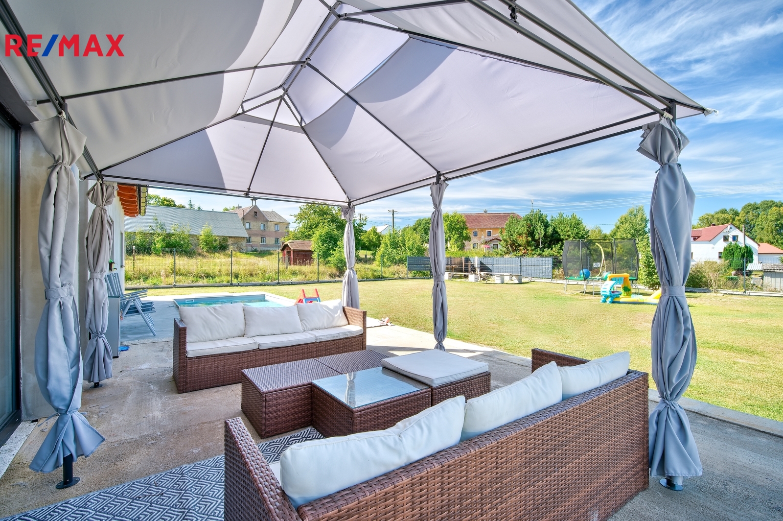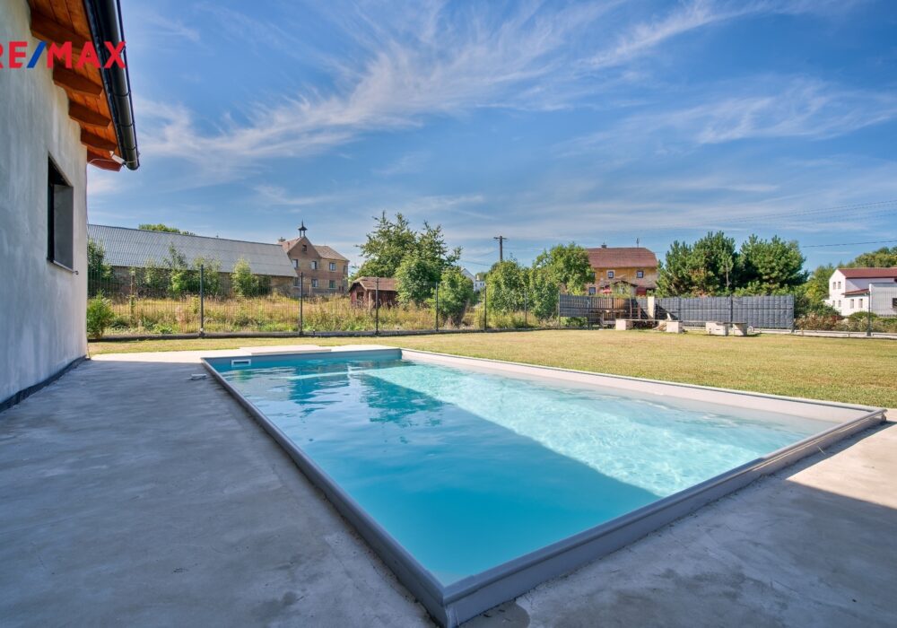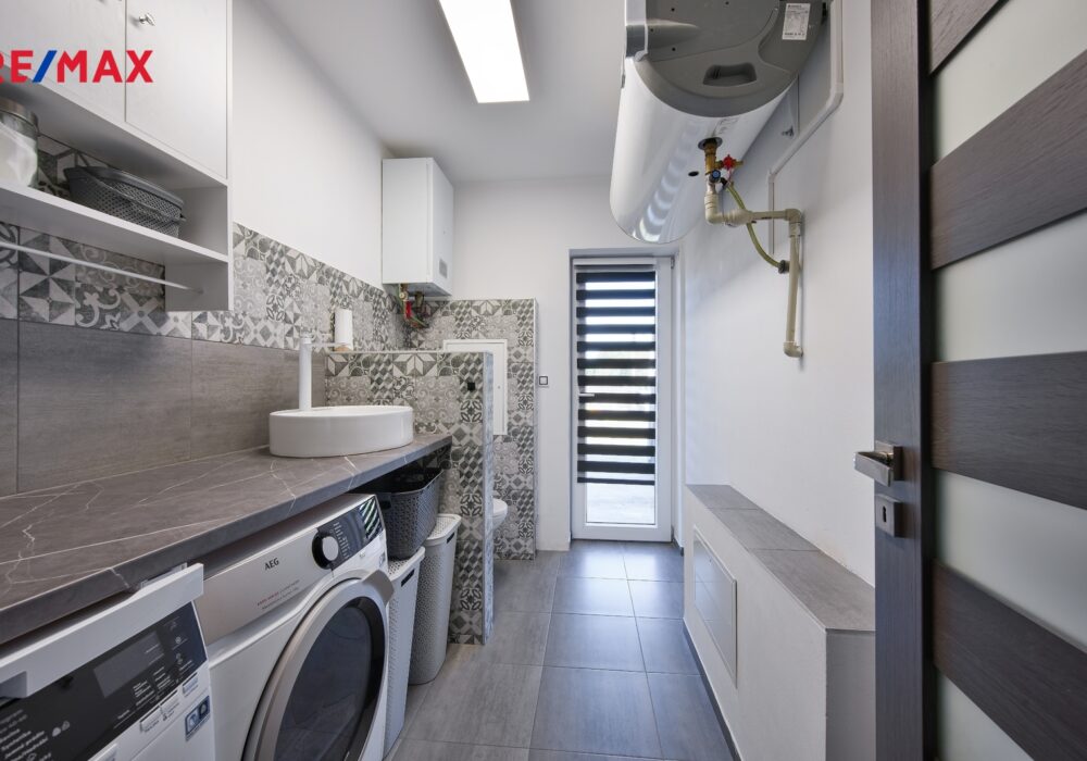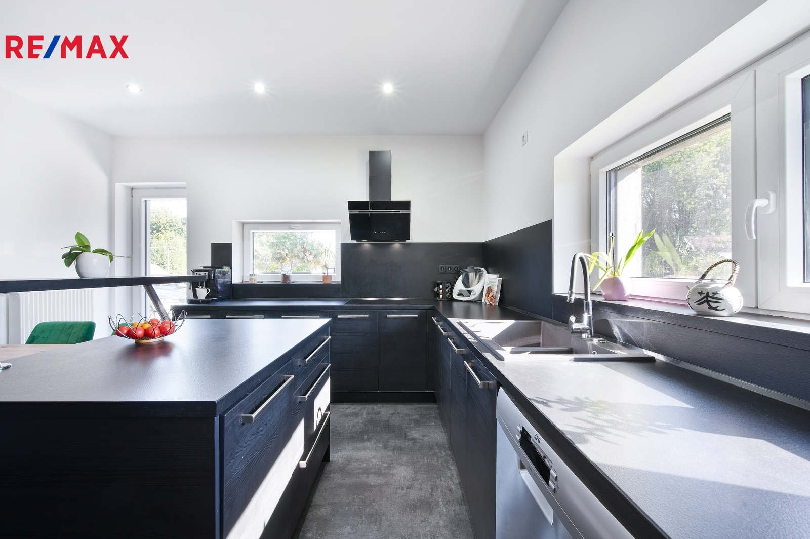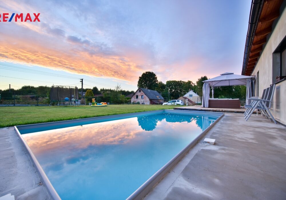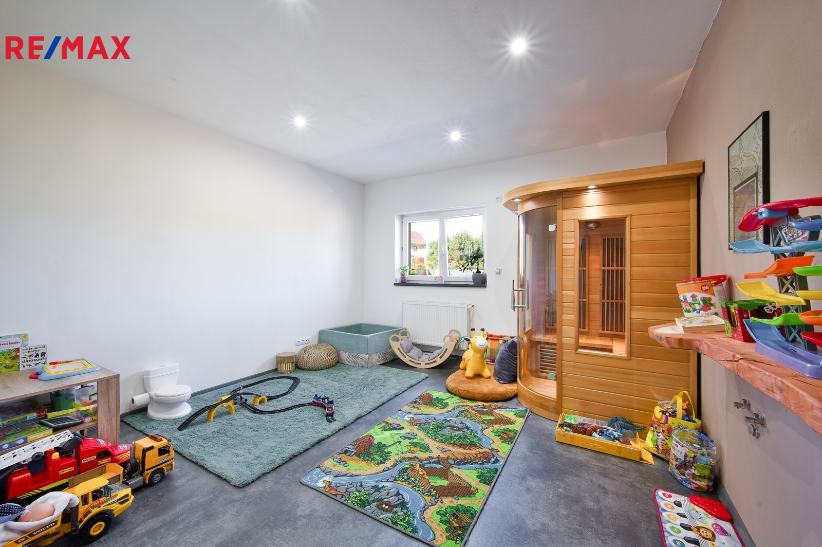 Zděný dům byl kolaudován v roce 2022, má skvěle promyšlenou dispozici i pro početnější rodinu. Výstup z obývacího pokoje přímo na terasu k bazénu (s protiproudem), je přesně to co chcete při teplých letních dnech. Obývací pokoj spolu s krásnou designovou kuchyní disponuje bezmála 40m2. Technická místnost (prádelna) s toaletou je přesně to co ocení každá žena v domácnosti, stejně tak jako šatní místnost přímo u hlavní ložnice. Dětské pokoje jsou zde dva, které jsou přes chodbu od hlavní ložnice a každý člen rodiny tím získává dostatek soukromí.