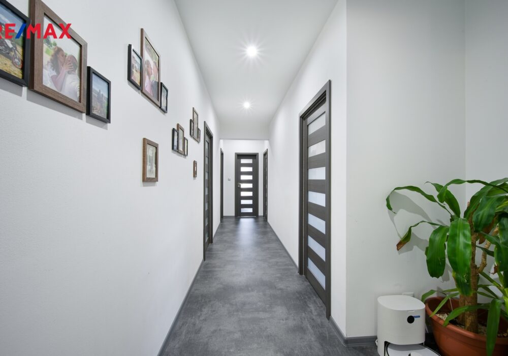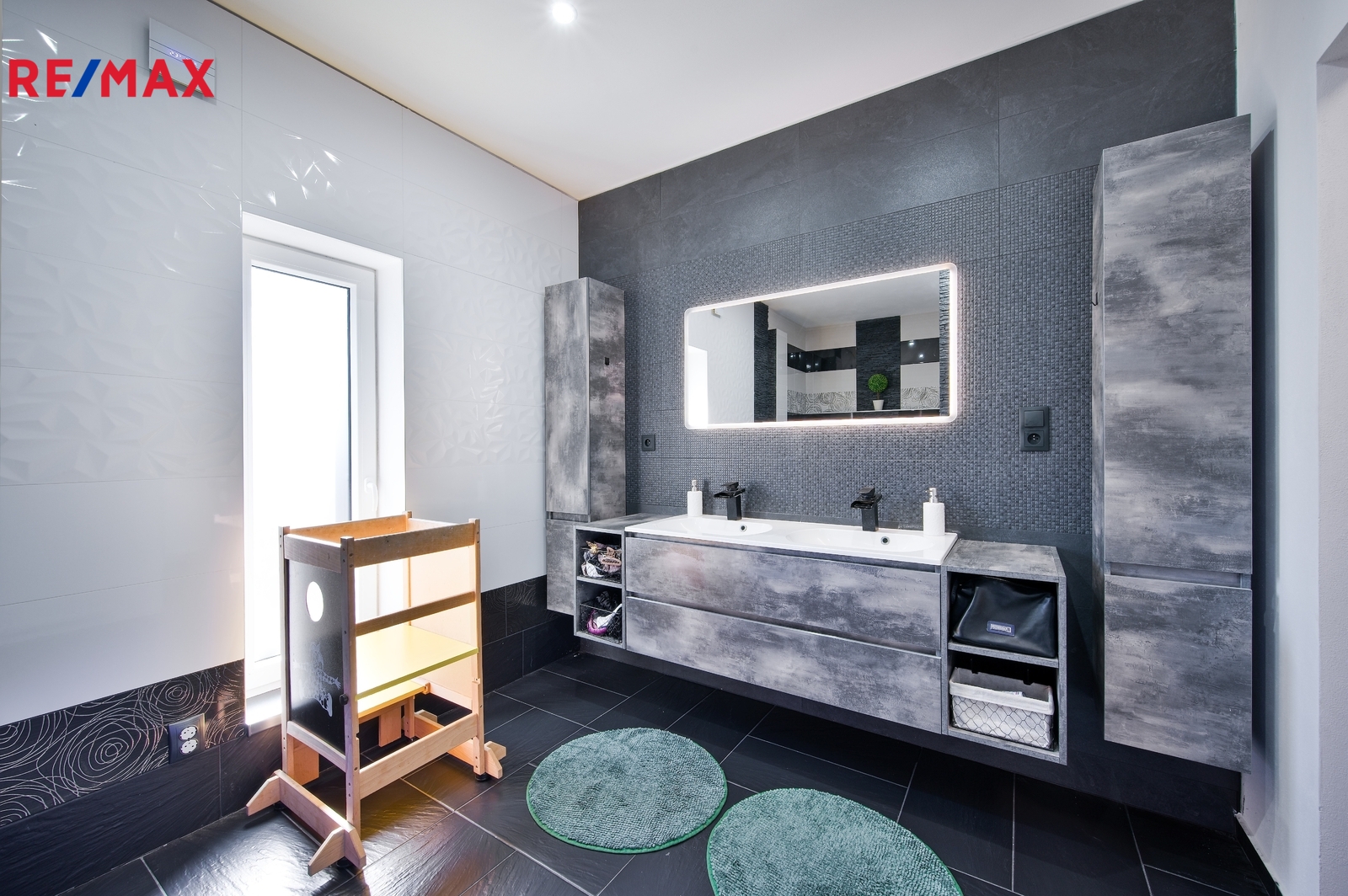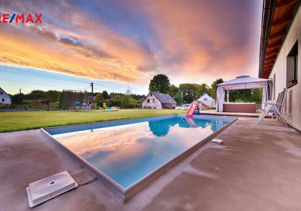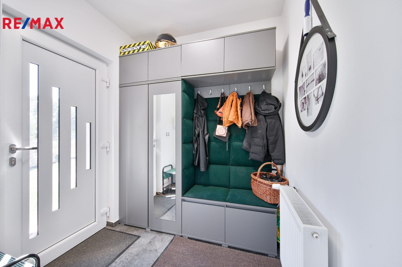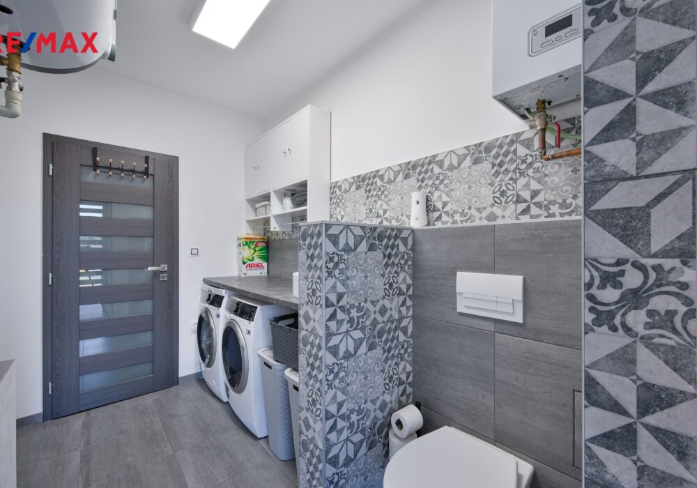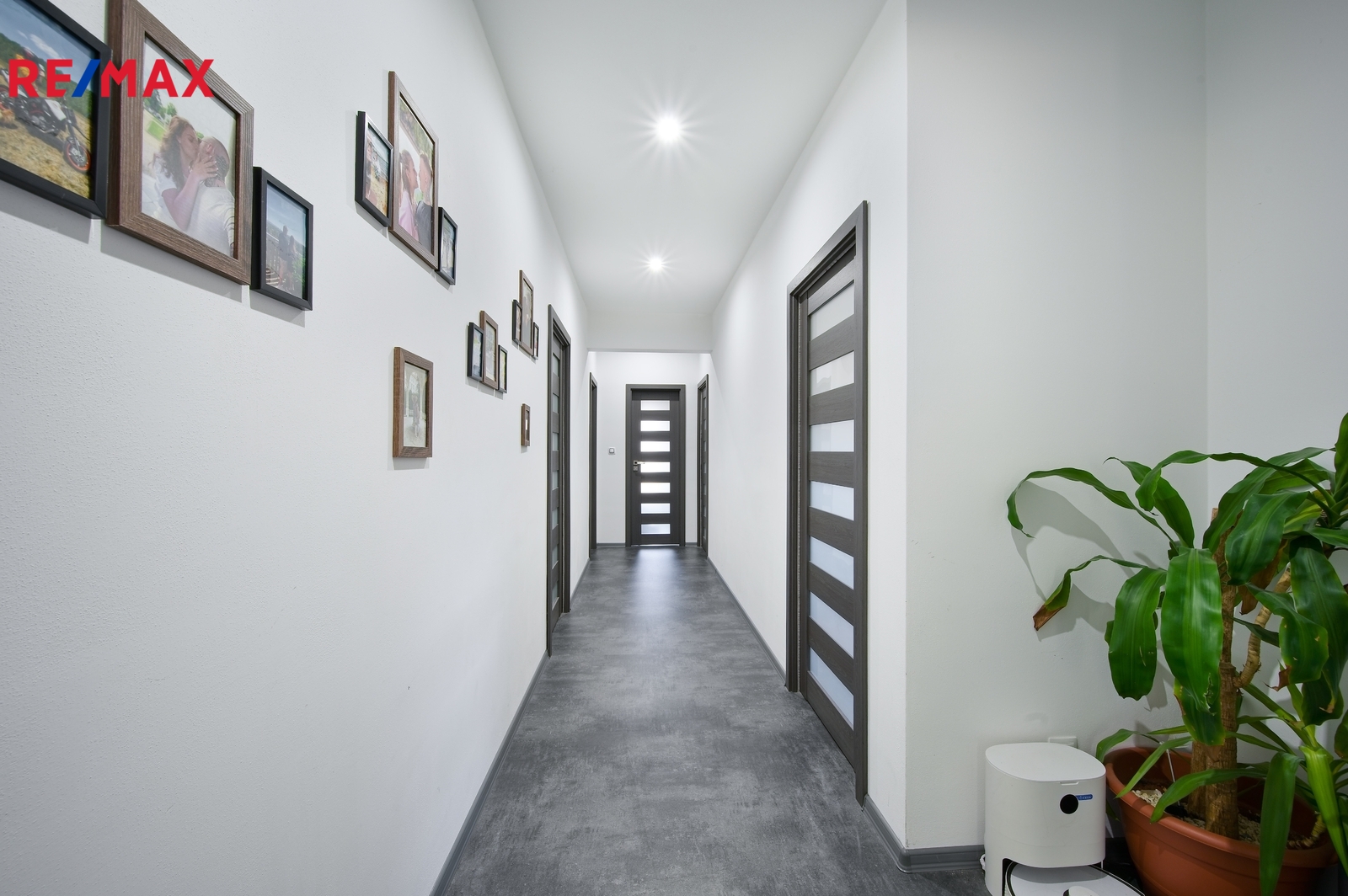 Zděný dům byl kolaudován v roce 2022, má skvěle promyšlenou dispozici i pro početnější rodinu. Výstup z obývacího pokoje přímo na terasu k bazénu (s protiproudem), je přesně to co chcete při teplých letních dnech. Obývací pokoj spolu s krásnou designovou kuchyní disponuje bezmála 40m2. Technická místnost (prádelna) s toaletou je přesně to co ocení každá žena v domácnosti, stejně tak jako šatní místnost přímo u hlavní ložnice. Dětské pokoje jsou zde dva, které jsou přes chodbu od hlavní ložnice a každý člen rodiny tím získává dostatek soukromí.
