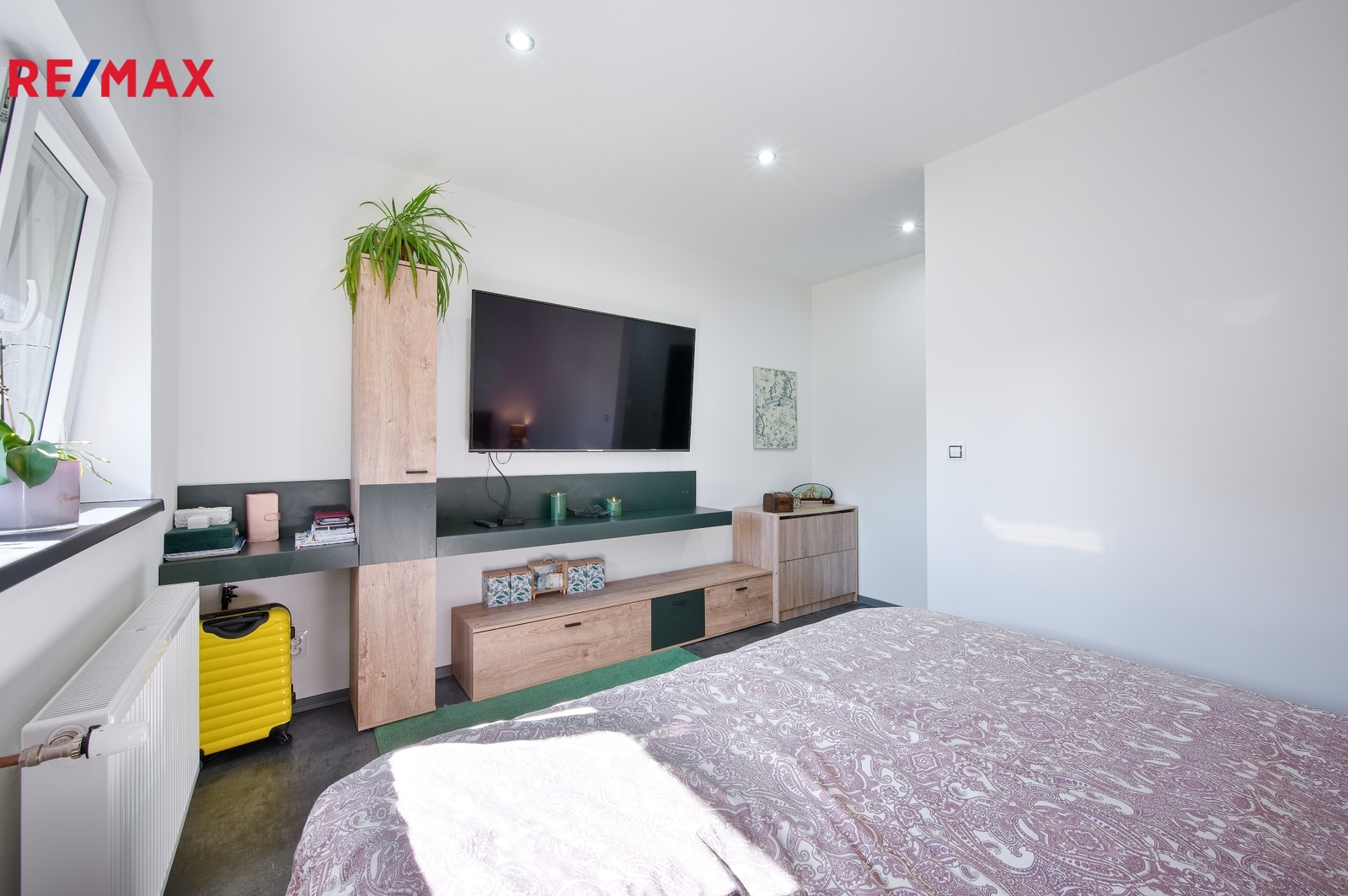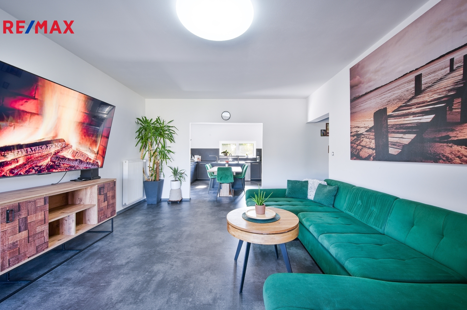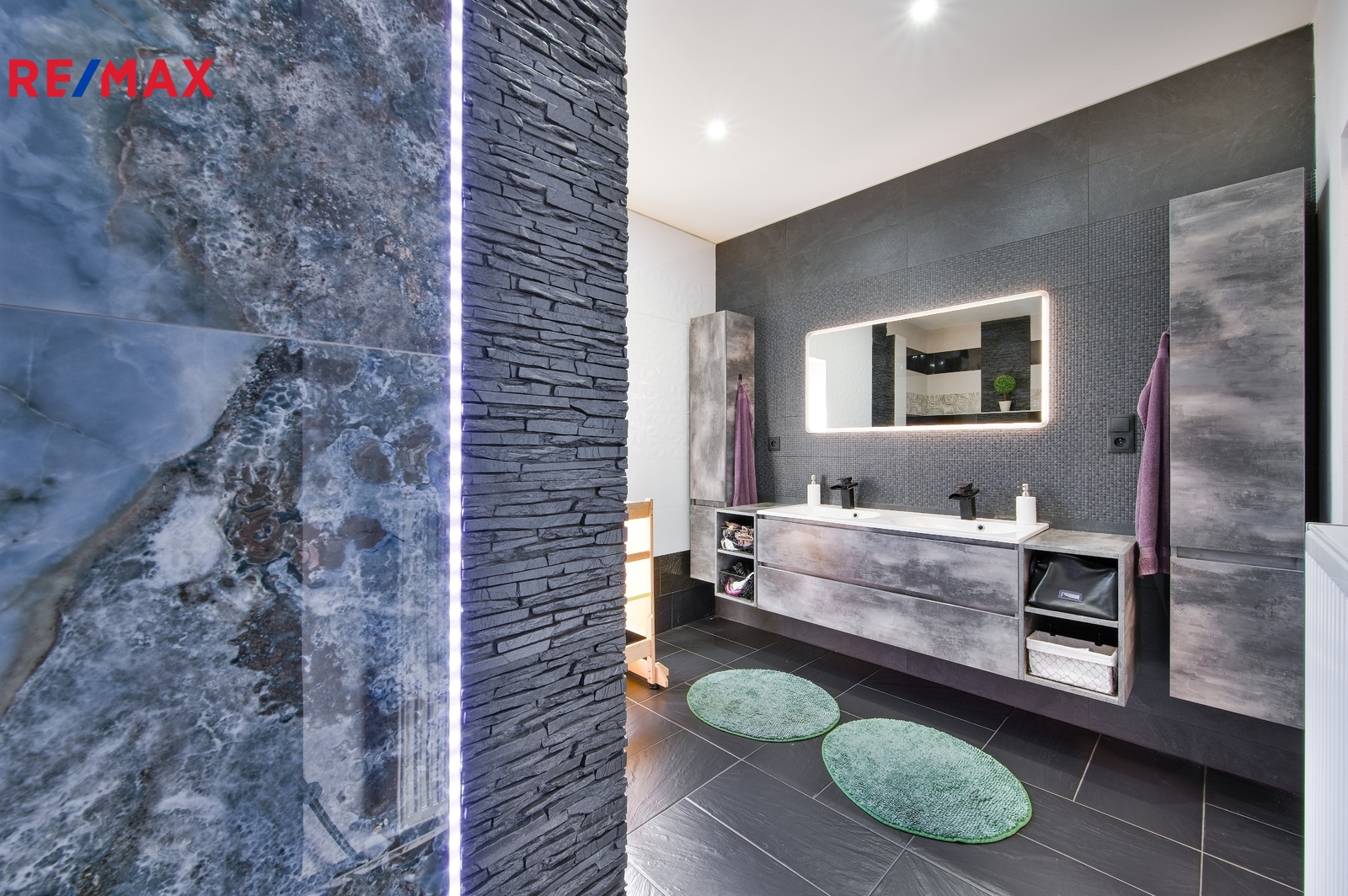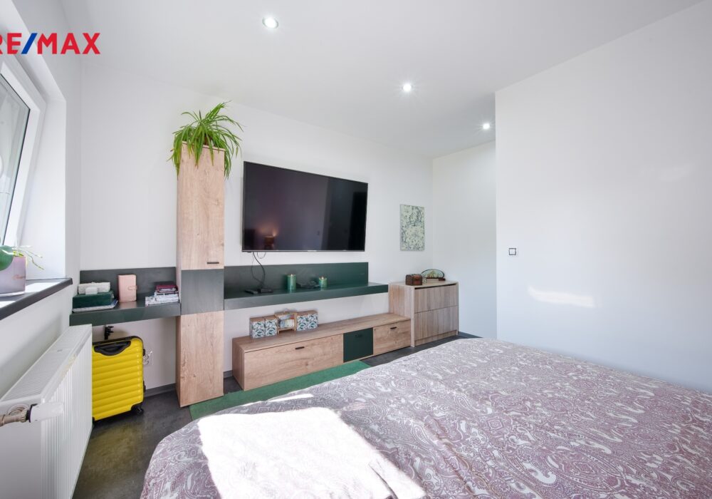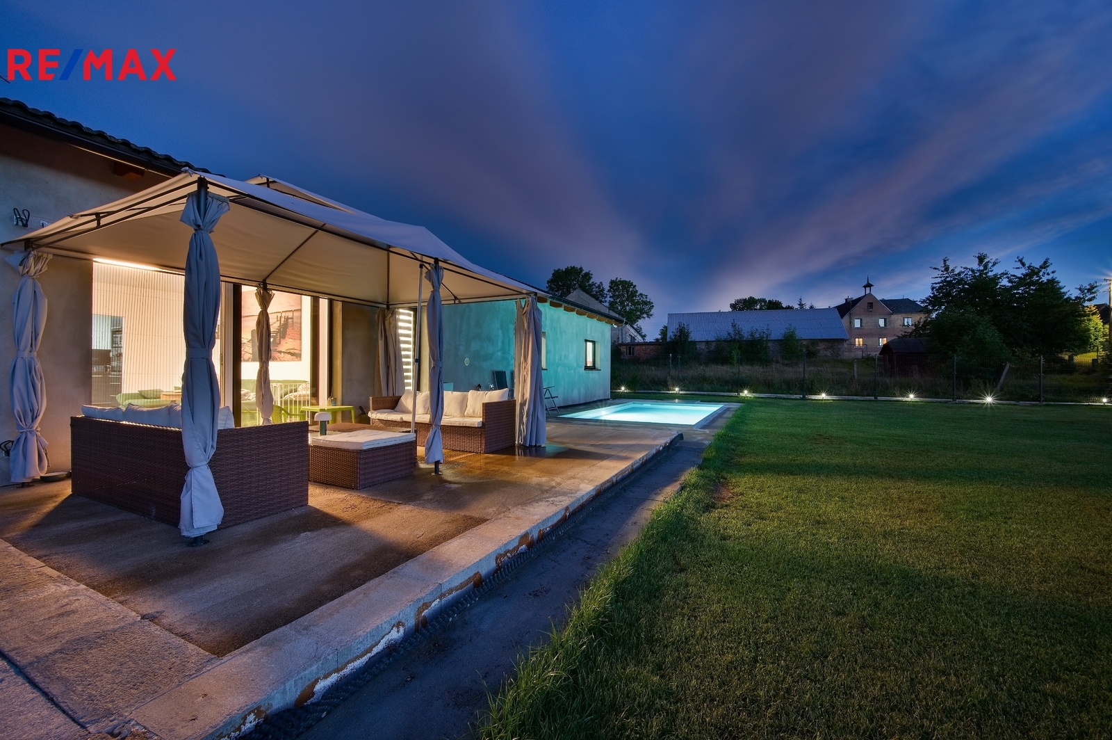 Zděný dům byl kolaudován v roce 2022, má skvěle promyšlenou dispozici i pro početnější rodinu. Výstup z obývacího pokoje přímo na terasu k bazénu (s protiproudem), je přesně to co chcete při teplých letních dnech. Obývací pokoj spolu s krásnou designovou kuchyní disponuje bezmála 40m2. Technická místnost (prádelna) s toaletou je přesně to co ocení každá žena v domácnosti, stejně tak jako šatní místnost přímo u hlavní ložnice. Dětské pokoje jsou zde dva, které jsou přes chodbu od hlavní ložnice a každý člen rodiny tím získává dostatek soukromí.