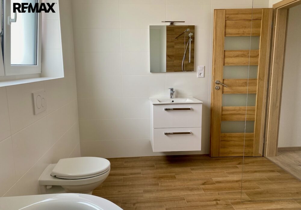 Velmi příjemná dispozice – obývací pokoj 42 m2, velké světlé pokoje přes 15 m2, 4+kk/T o užitné ploše bytu 139 m2 + 30 m2 terasa + prostorná půda, velká technická místnost (možno pracovna), velká slunná zahrada cca 715 m2 s výhledy do kraje. Jedná se o dokončenou novostavbu s nízkými náklady na provoz (zateplený Porotherm, tepelné čerpadlo), energetická třída B. Lze si vybrat z více bytových jednotek.