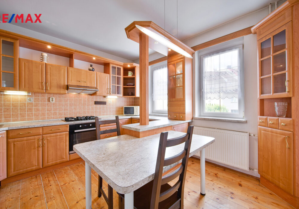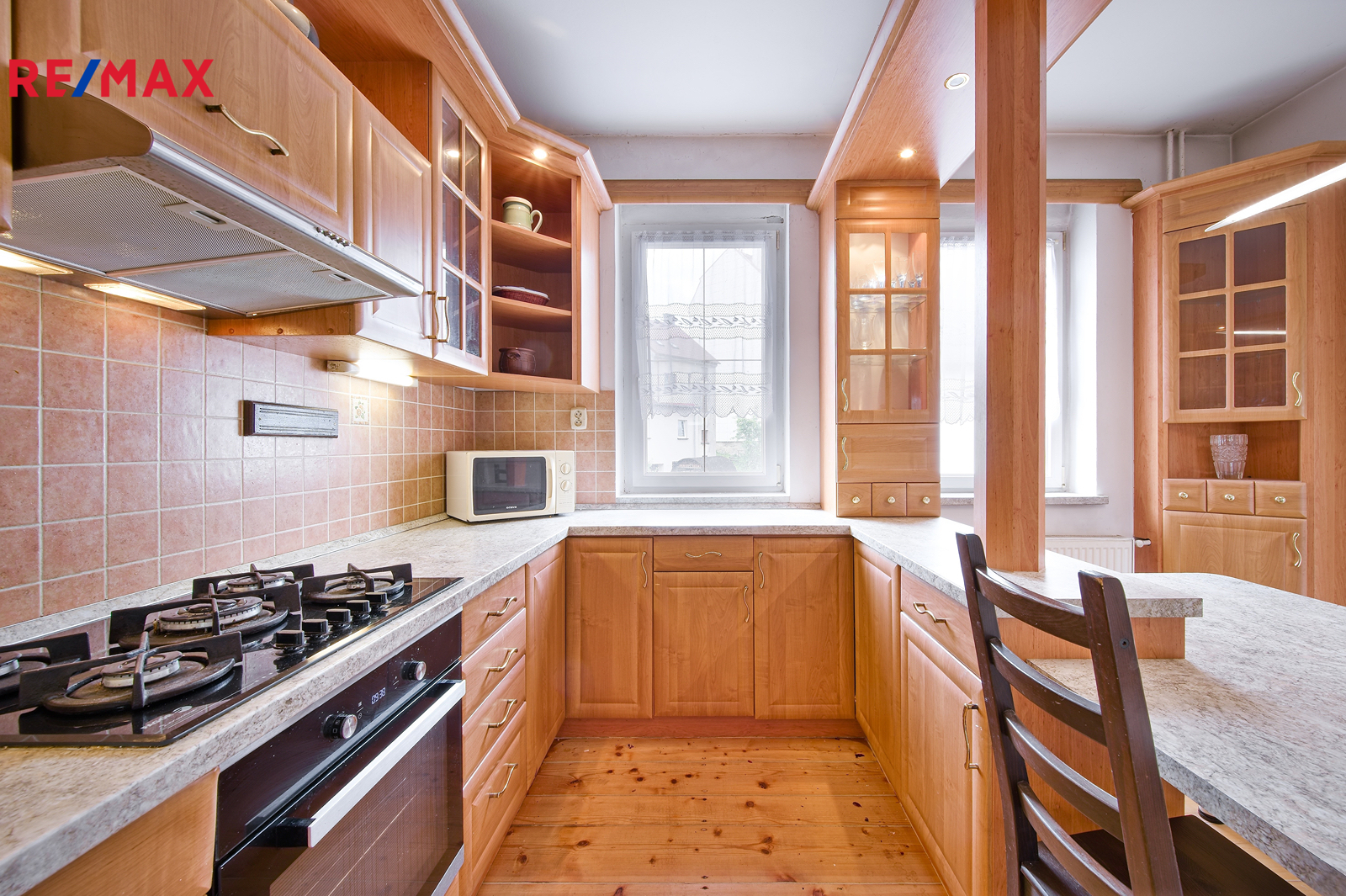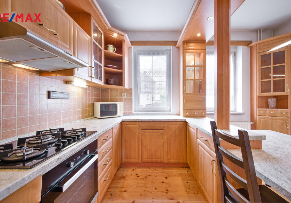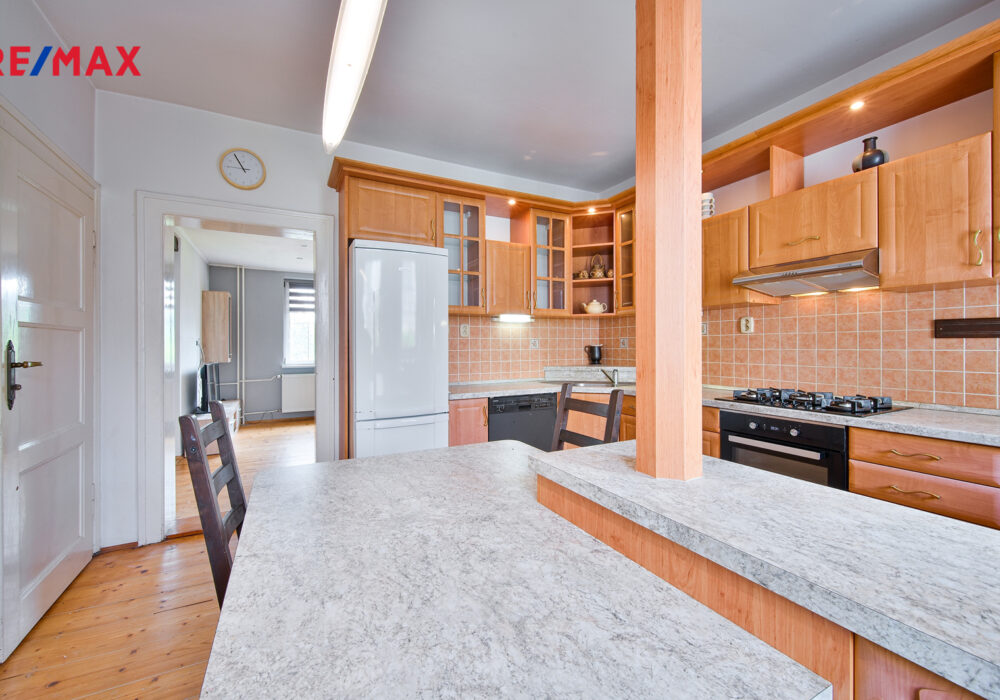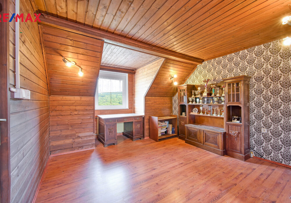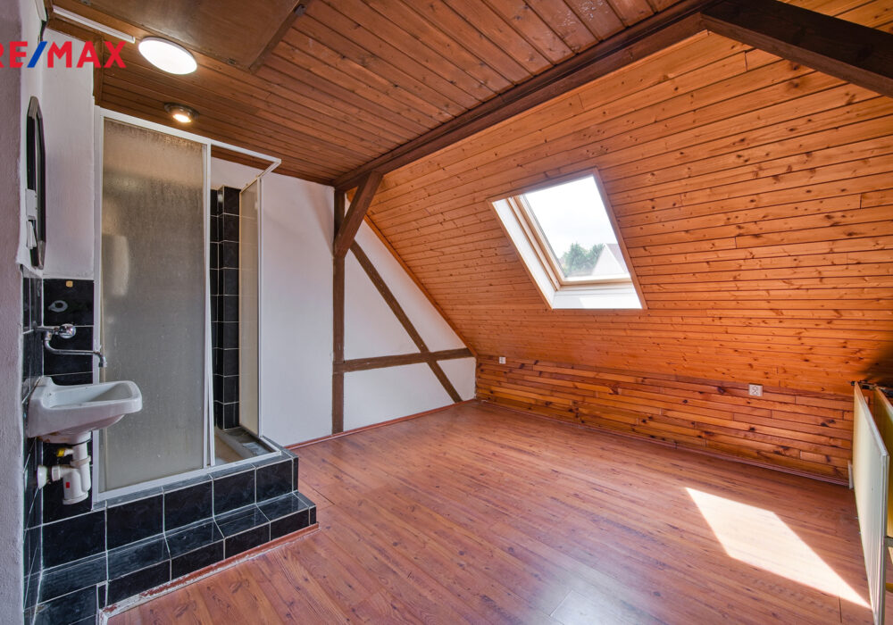 Dům je celkově podsklepený, najdeme zde dílnu, sklad, garáž z které se dostanete rovnou do domu a další technické zázemí domu. Ve vyvýšeném přízemí nalezneme dva pokoje, které lze využít jako ložnici a dětský pokoj nebo přebudovat na kuchyni s obývacím pokojem. Dále pak koupelnu společně s prvním WC, která je průchozí do technické místnosti, která nabízí prostor pro pračku se sušičkou. V prvním patře se nachází vstup do kuchyně, která je opravdu veliká a nabízí dostatek úložného prostoru. Kuchyň má vestavěné spotřebiče, jako je trouba, plynový sporák a myčka nádobí. Dále na patře nalezneme menší místnost, která vybízí pro vybudování menší pracovny, nebo čtenářského koutku, kde budete mít dostatek klidu pro vžití se do příběhu dobrodružné knihy. V podkroví nalezneme veliký dětský pokoj, kde je vybudovaná sprcha s umyvadlem. Půdní prostor slouží spíše k uskladnění věcí. Celkově se jedná o velmi udržovaný, zateplený dům, kde již není potřeba velkých investic.