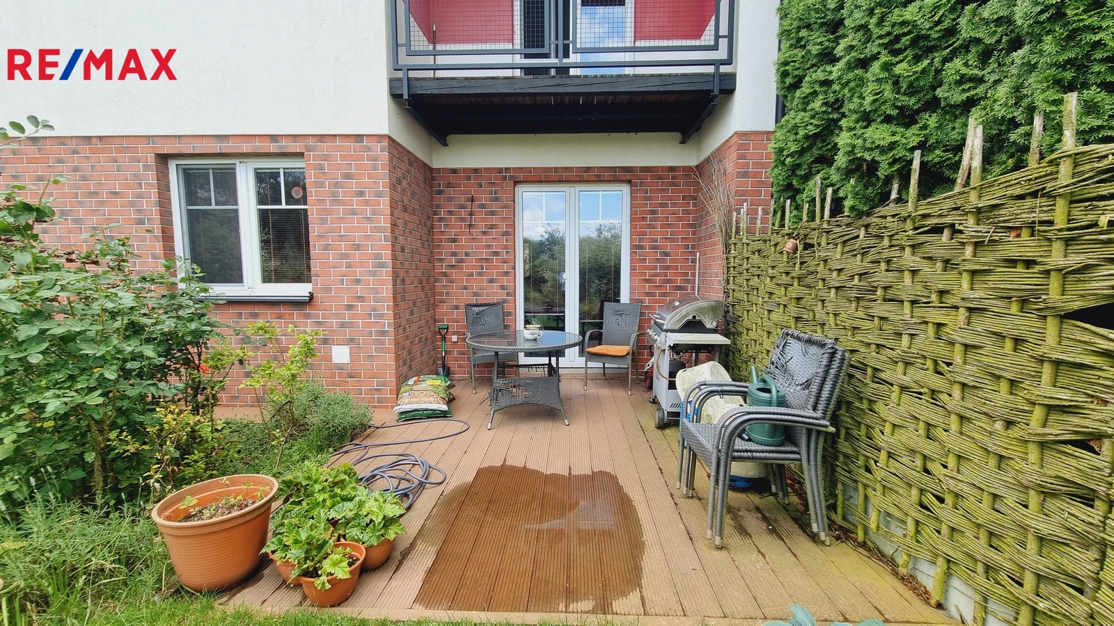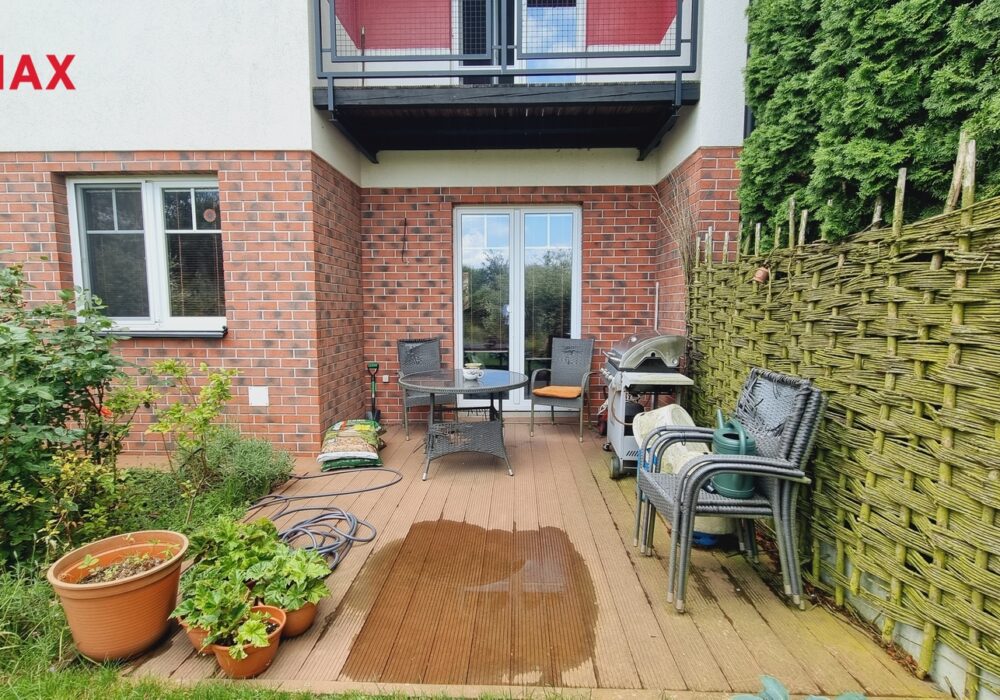 Součástí domu je předzahrádka, terasa se zahradou orientovanou do klidné části, a parkovací stání před domem. Celková plocha pozemku činí 237 m². Orientační půdorysy jsou k dispozici ve fotogalerii. Navíc je v domě půda pro další využití.