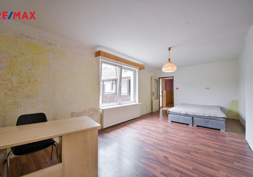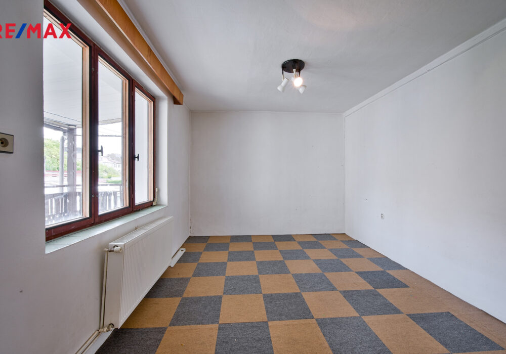 V prvním patře najdeme dvě opravdu velké neprůchozí místnosti a jednu průchozí. Poté pak technickou místnost a vchod na balkon.