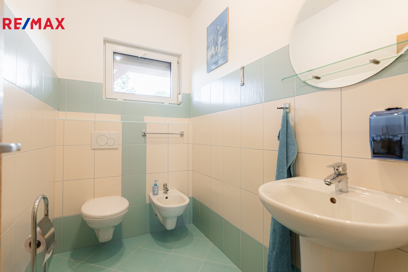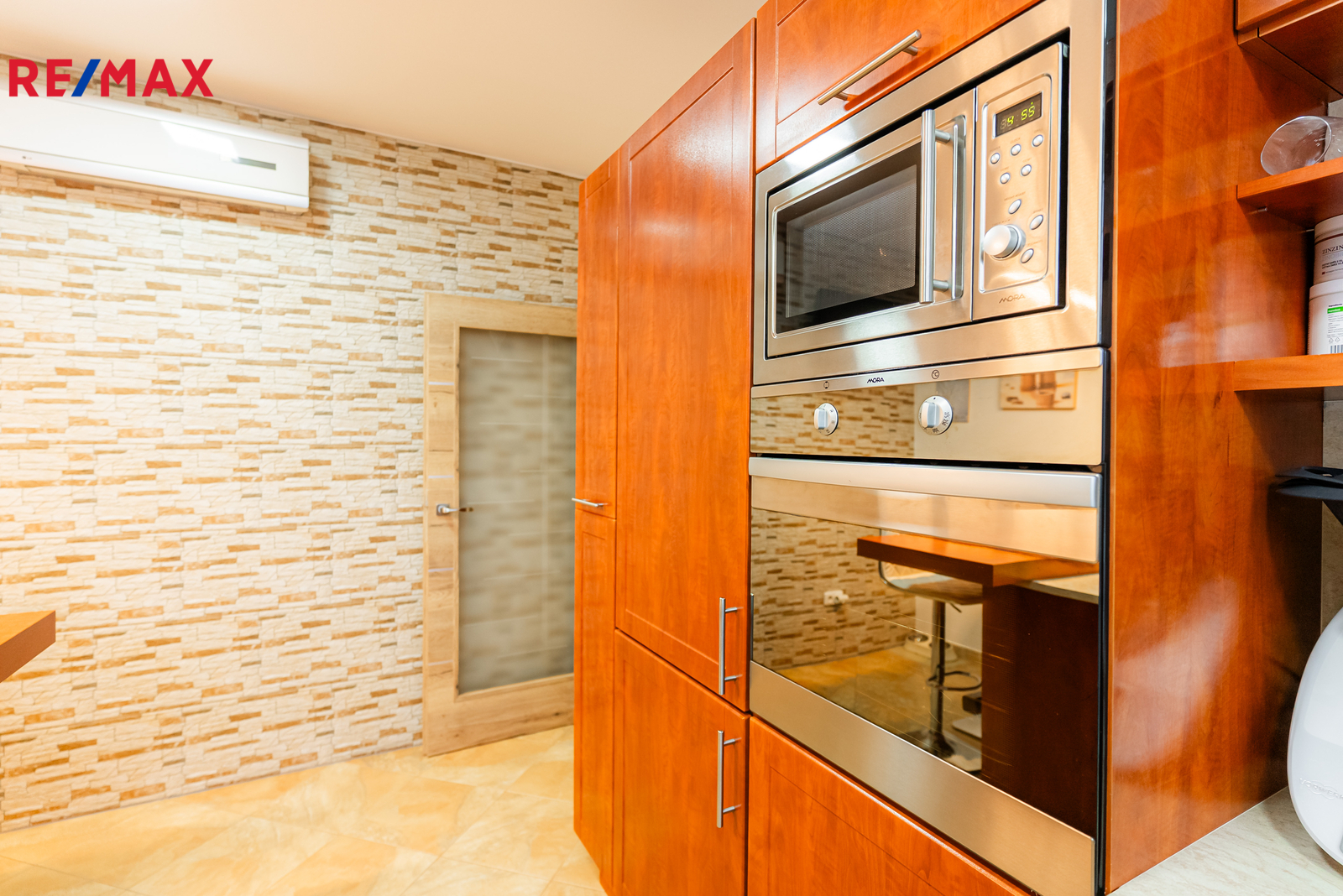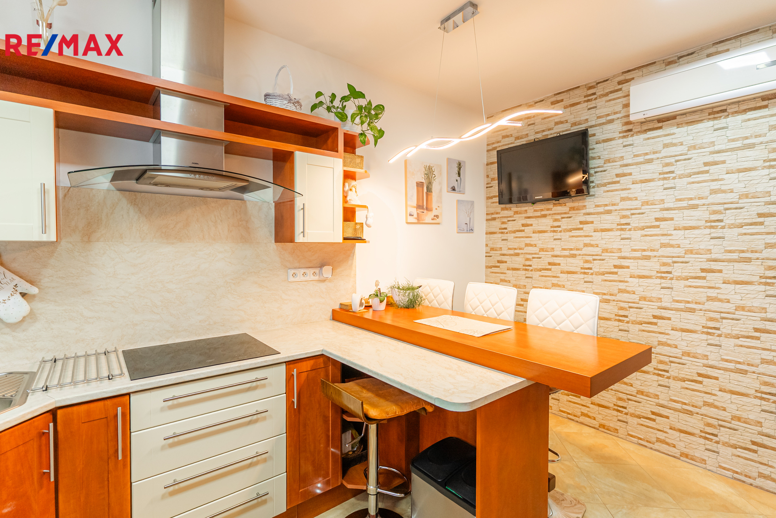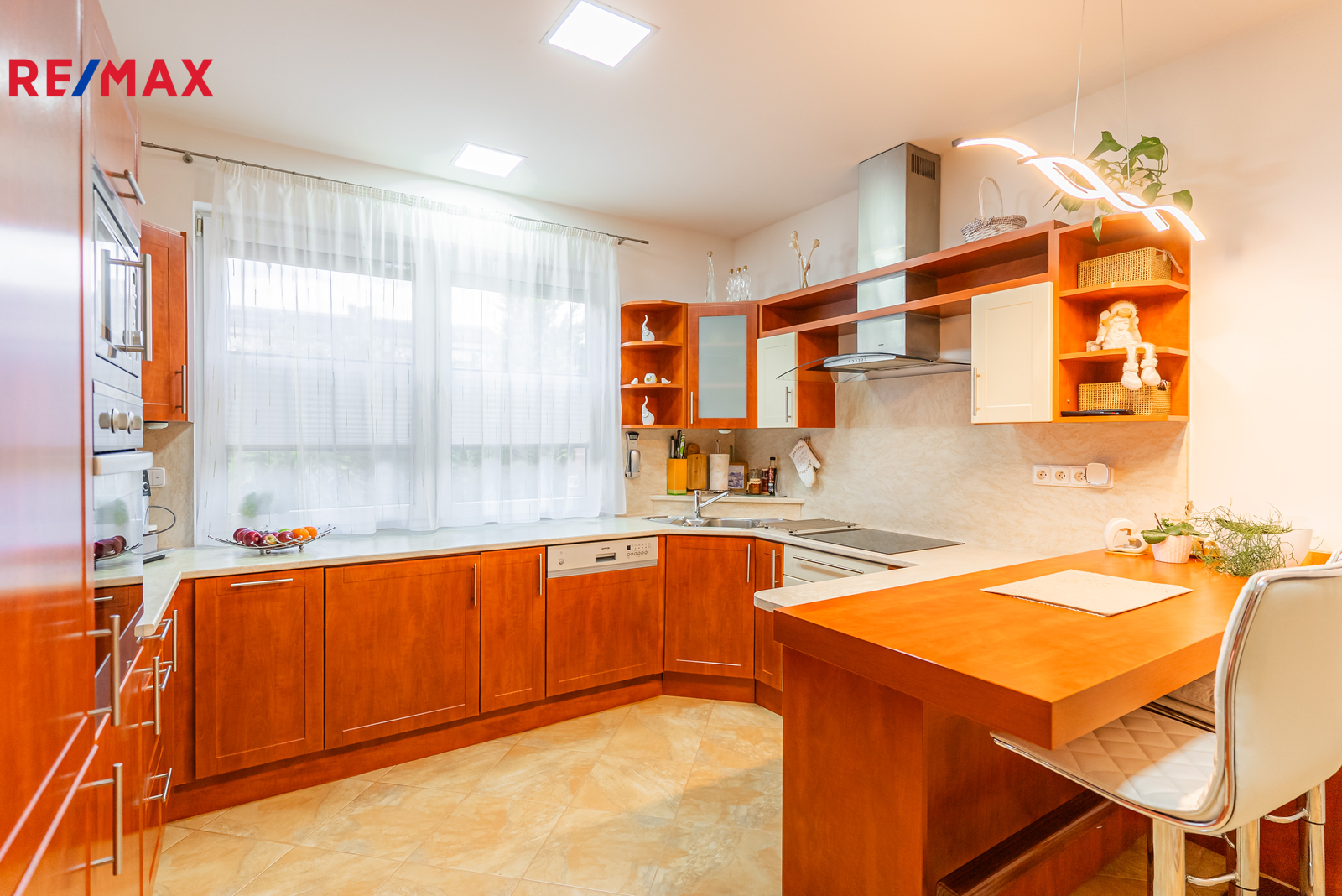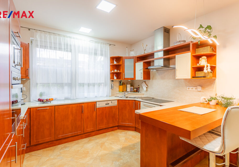 Dispozice domu je 3+1 s užitnou plochou 169 m². Kuchyň (12,35 m²) je samostatná, vybavená vestavěnými spotřebiči a barovým pultem. Dva prostorné pokoje (13 a 18 m²) poskytují dostatek místa pro rodinu, koupelna (10,5 m²) nabízí vanu, sprchový kout, podlahové topení. Samostatné WC s bidetem, technická místnost a praktická vstupní chodba s vestavěným botníkem dělají dům velmi funkčním.