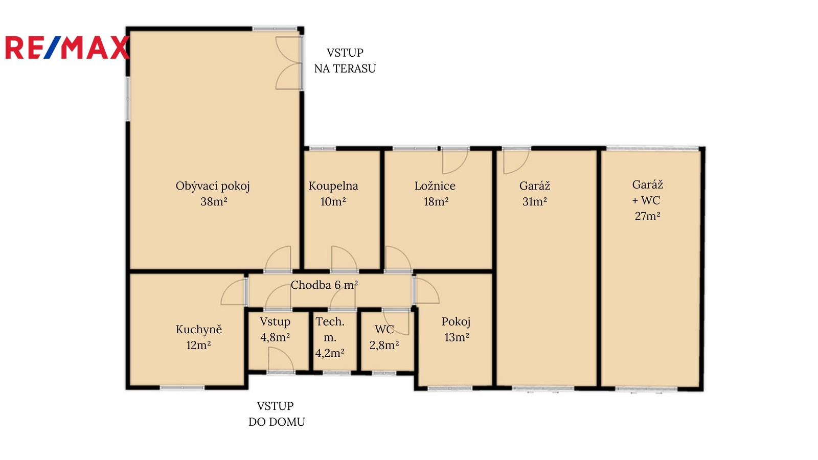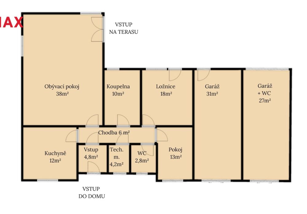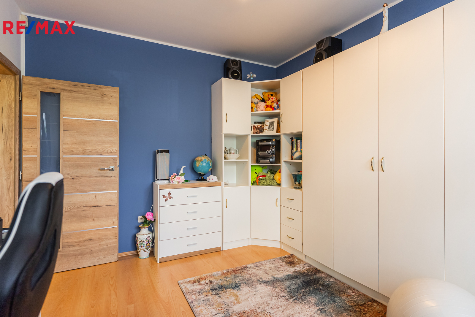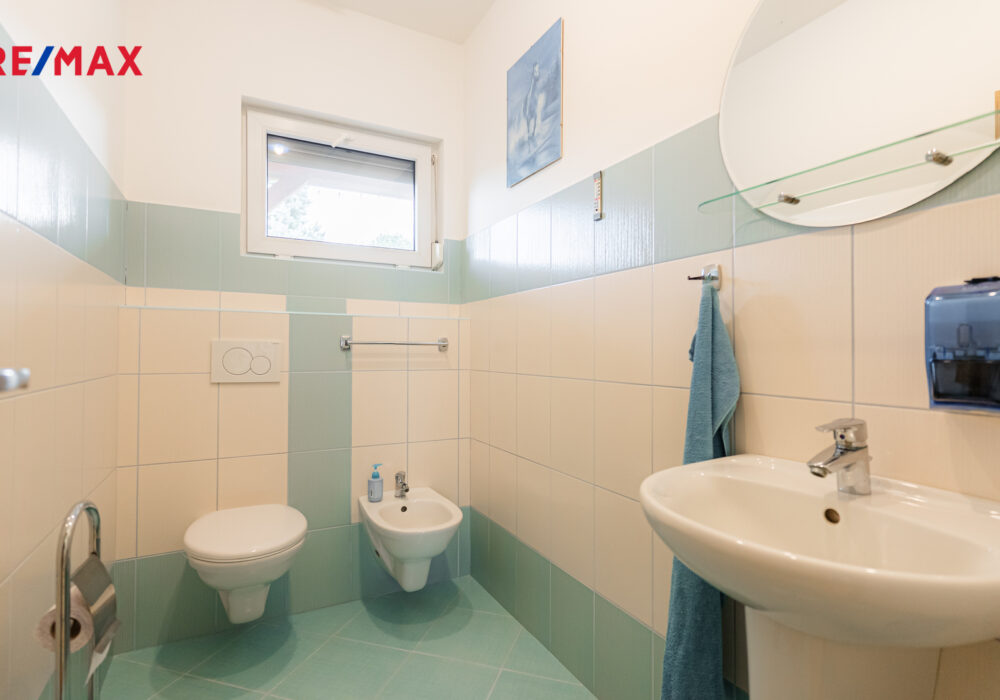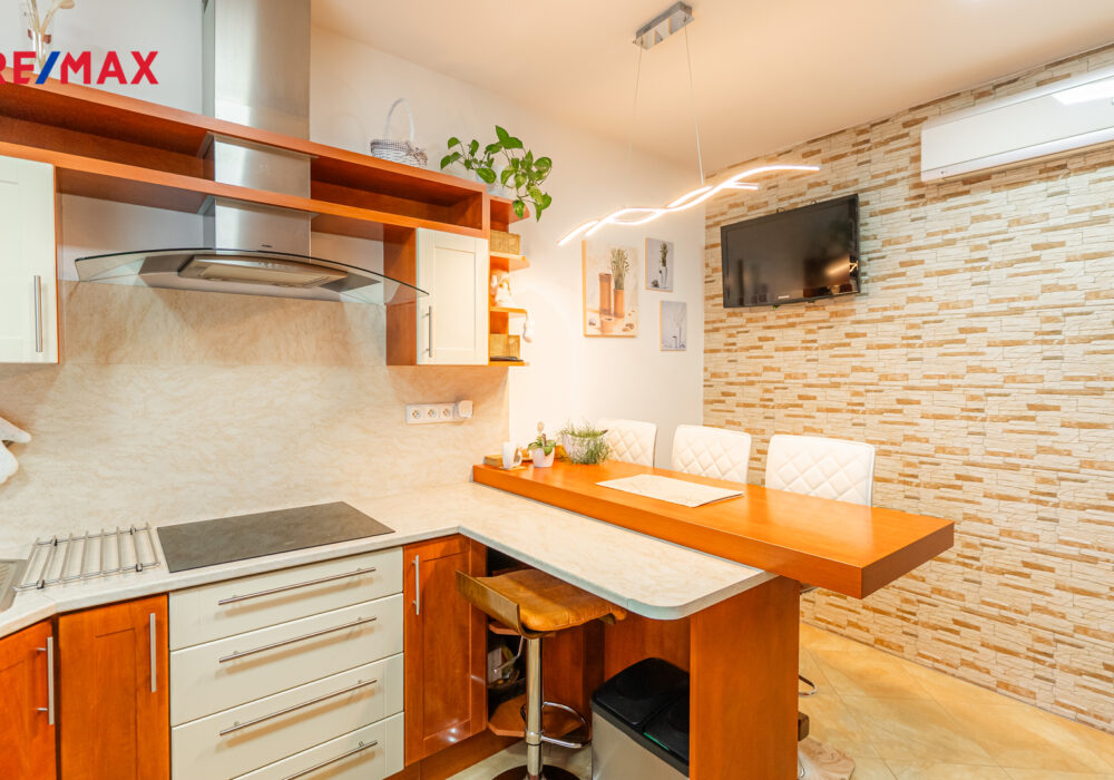 Dispozice domu je 3+1 s užitnou plochou 169 m². Kuchyň (12,35 m²) je samostatná, vybavená vestavěnými spotřebiči a barovým pultem. Dva prostorné pokoje (13 a 18 m²) poskytují dostatek místa pro rodinu, koupelna (10,5 m²) nabízí vanu, sprchový kout, podlahové topení. Samostatné WC s bidetem, technická místnost a praktická vstupní chodba s vestavěným botníkem dělají dům velmi funkčním.