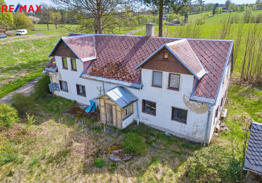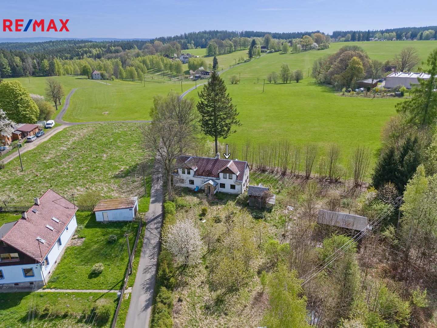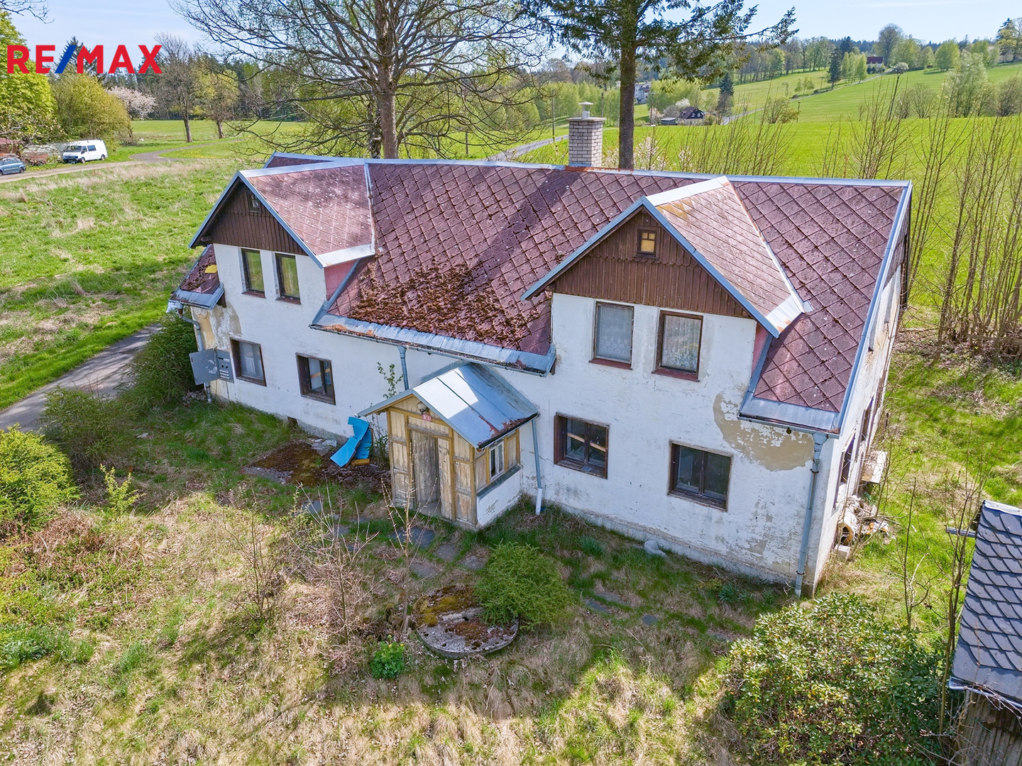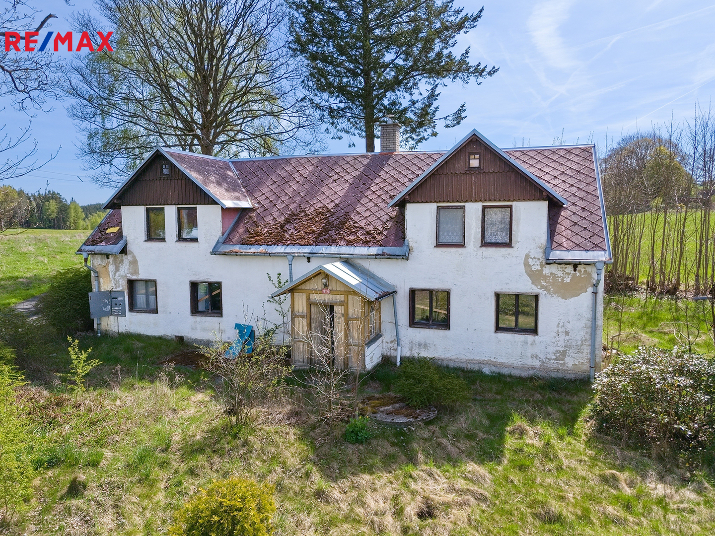 Ve výhradním zastoupení nabízíme k prodeji rodinný dům v Hranicích u Aše s dispozicí 4+1 jedna z místností aktuálně slouží jako dílna. Dům je neobydlený a v původním stavu, určený ke kompletní rekonstrukci. Dům je částečně podsklepen. V přízemí nalezneme prostornou kuchyň s jídelním koutem a prostorem pro uskladnění potravin, koupelnu a již výše zmíněnou dílnu. V patře pak nalezneme pokoj, který je průchozí do ložnice, druhou koupelnu a prostorný obývací pokoj, který má dva menší prostory, sloužící jako šatník.