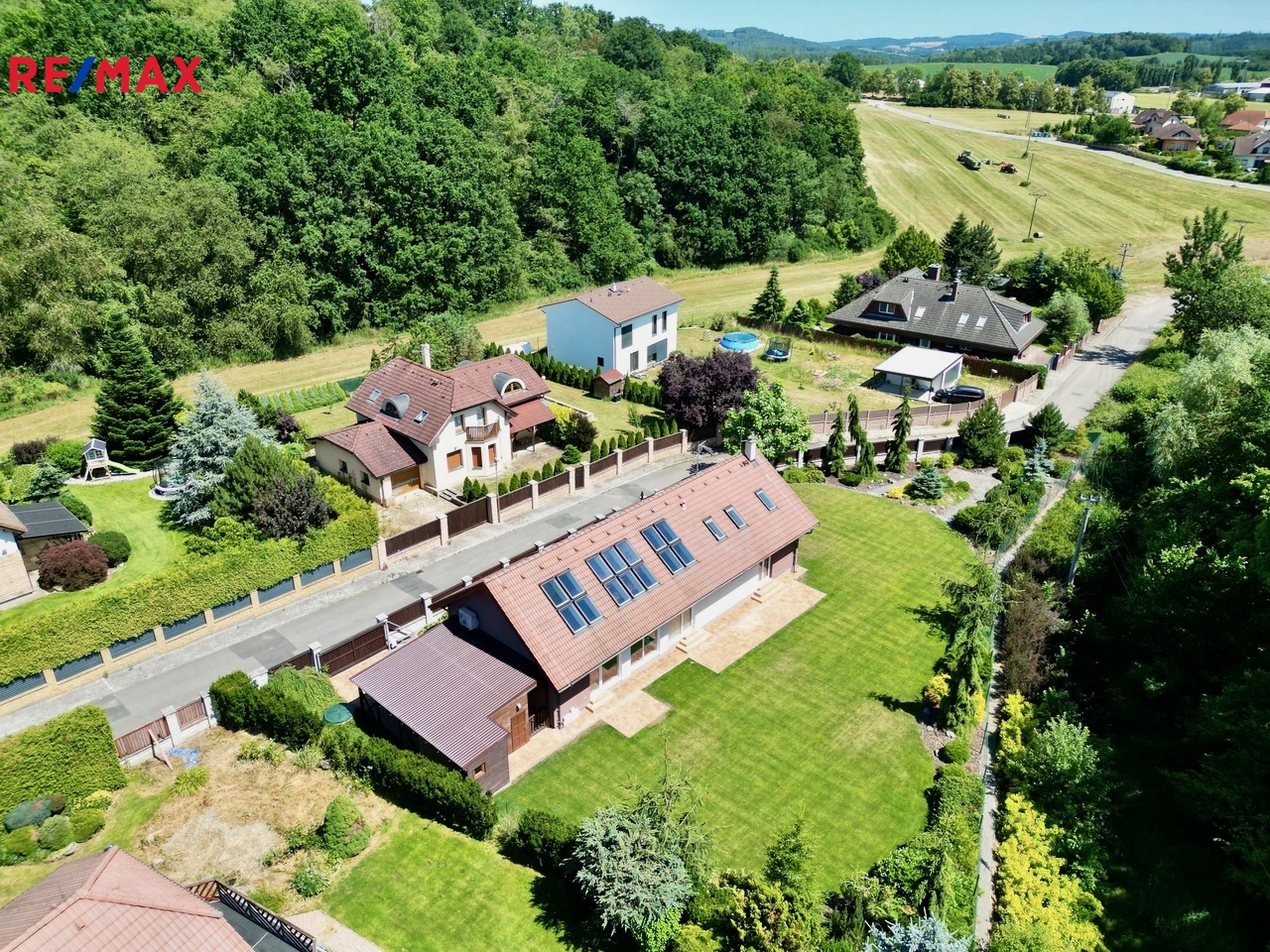 Moderní a velkorysé pojetí novostavby podtrhuje velký, slunný a rovinatý pozemek o velikosti 1241 m2 v klidné slepé ulici. Výhledy jsou jen do zeleně – bez sousedů. Nachází se v klidné slepé ulici. Místo je to pro každého, kdo chce žít v souladu s přírodou.