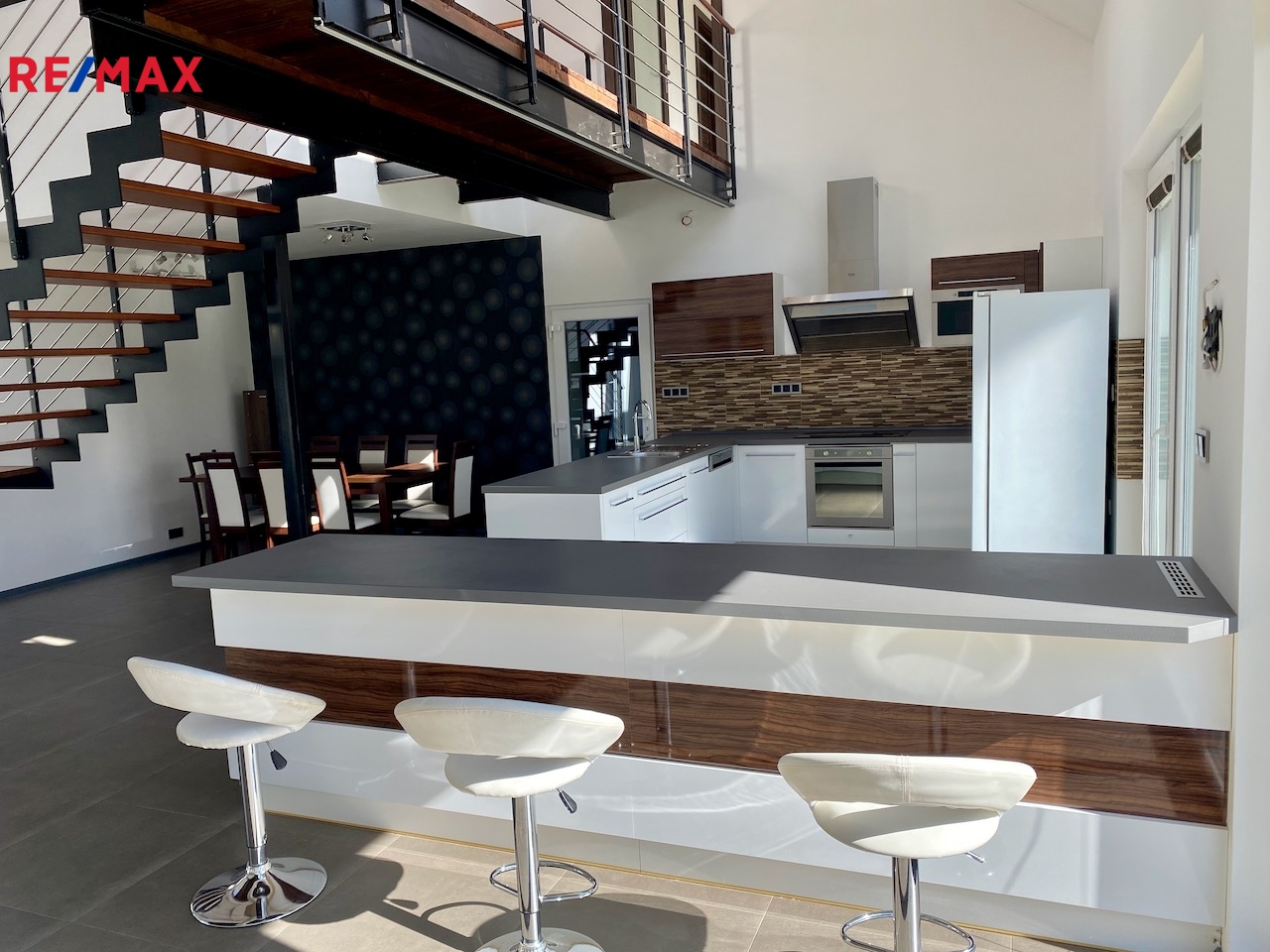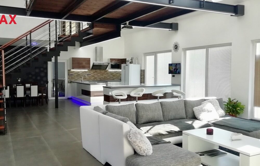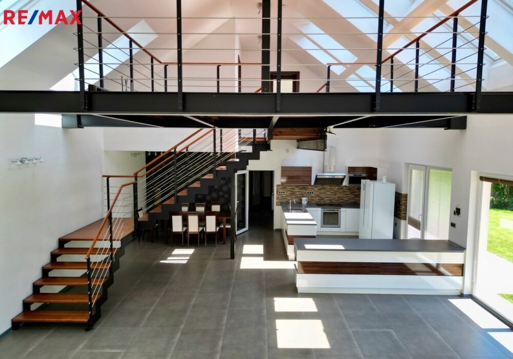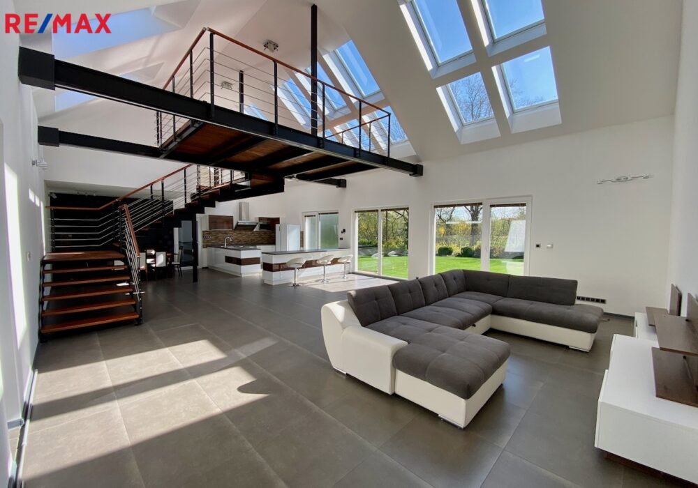 Zveme Vás na nezávaznou prohlídku jedinečně řešeného nového domu, který je ideálně propojený s okolní přírodou. Exkluzivitu nabídky umocňuje architektonické řešení interiéru – dům o užitné ploše 200 m2 je vzdušný a krásně prosvětlený. Srdcem domu je velký obývací pokoj s kuchyní a jídelnou o velikosti 92 m2, nad kterým je ochoz, který lze užívat např. jako pracovnu.