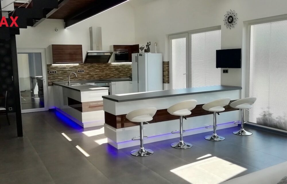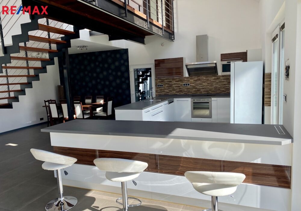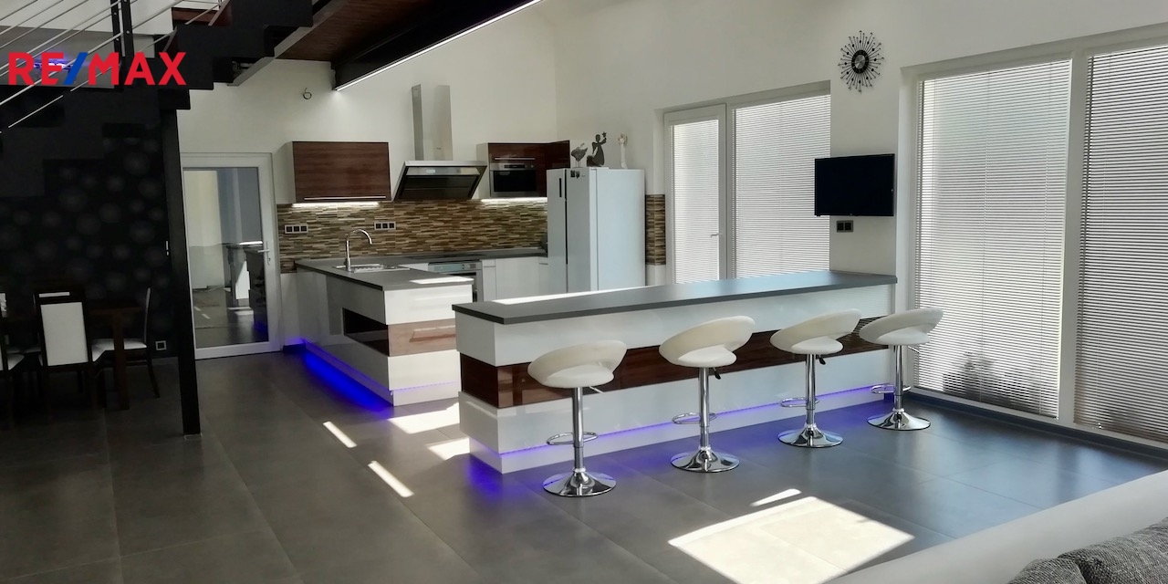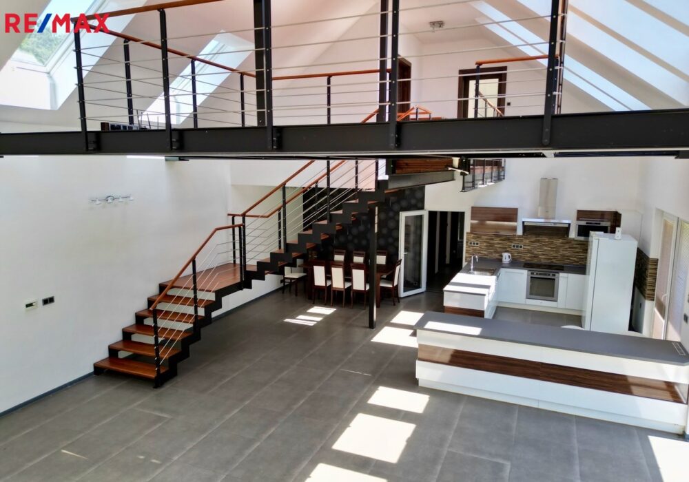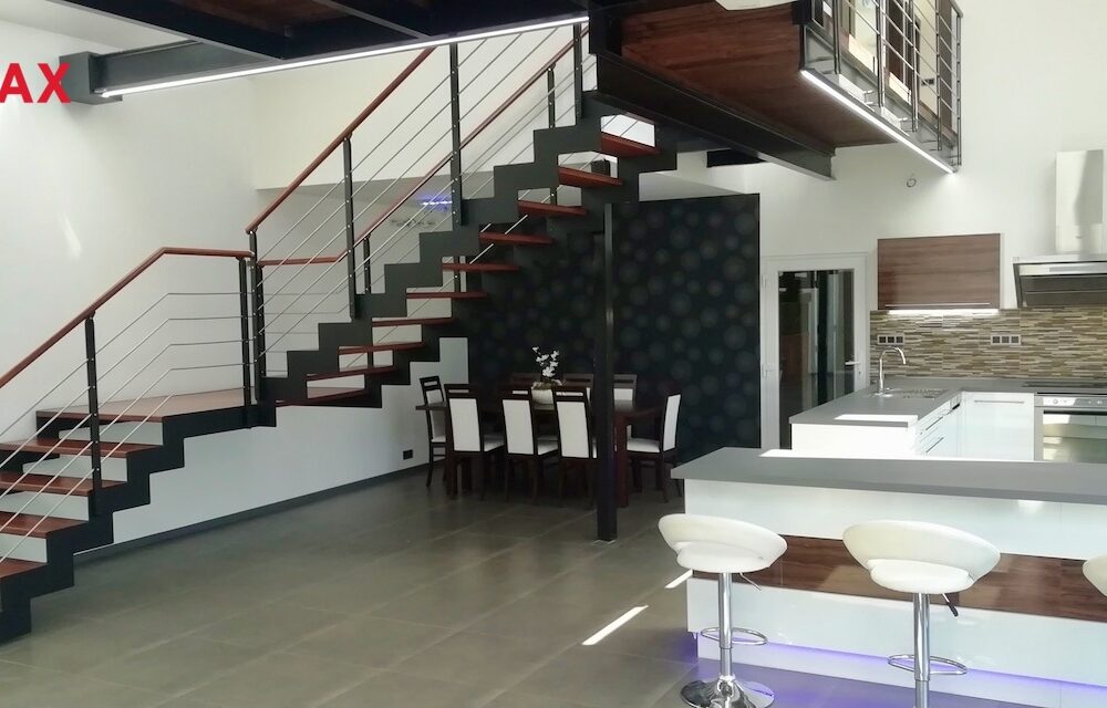 Zveme Vás na nezávaznou prohlídku jedinečně řešeného nového domu, který je ideálně propojený s okolní přírodou. Exkluzivitu nabídky umocňuje architektonické řešení interiéru – dům o užitné ploše 200 m2 je vzdušný a krásně prosvětlený. Srdcem domu je velký obývací pokoj s kuchyní a jídelnou o velikosti 92 m2, nad kterým je ochoz, který lze užívat např. jako pracovnu.