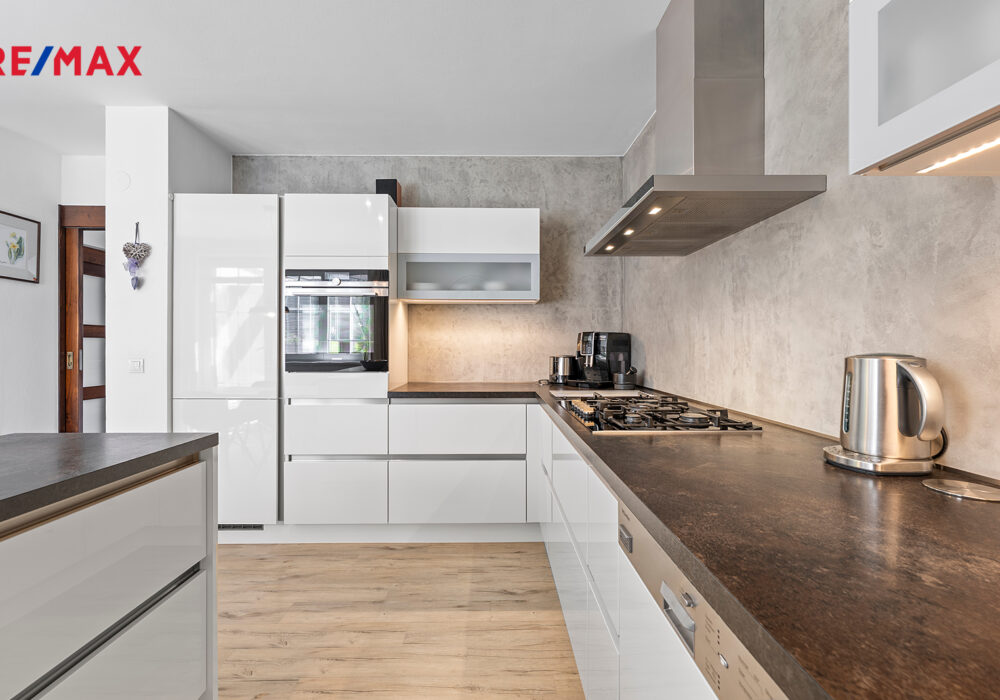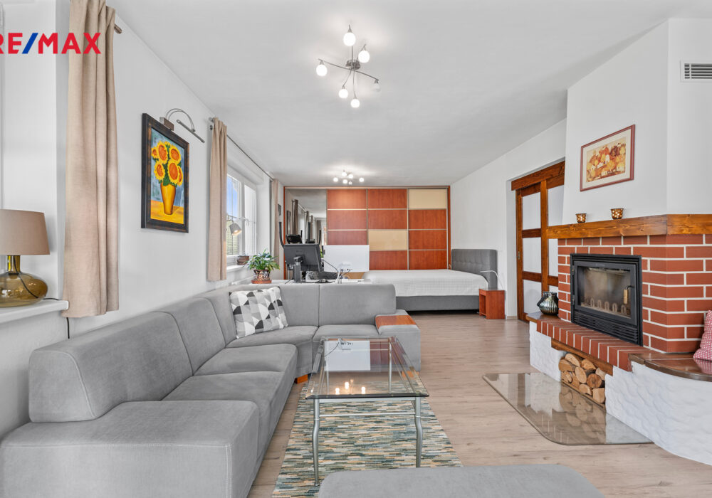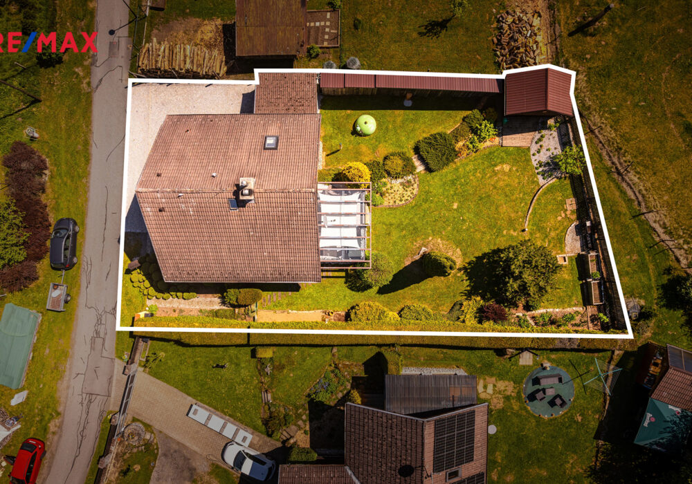 Součástí pozemku o celkové výměře 697 m2 je kompletně podsklepený, dvoupodlažní dům o zastavěné ploše 108 m2, který disponuje užitnou plochou cca 208 m2. Kolaudován byl v r. 1995, ale v průběhu let byl velmi pečlivě udržován a také modernizován: první nadzemní podlaží je po celkové rekonstrukci, v části výměna oken, přístavba pergoly aj.