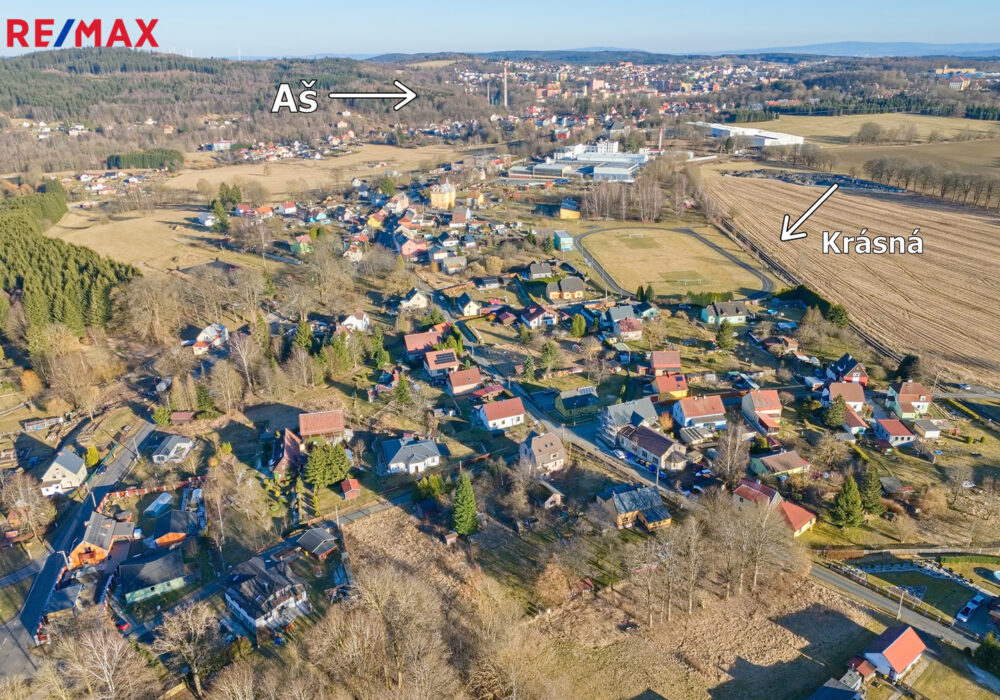 Nemovitost se nachází na adrese Krásná 264 v obci Krásná u Aše, okres Cheb, což zaručuje vysokou dostupnost a pohodlné spojení s okolními městy. Díky strategické poloze v blízkosti hraničního přechodu s DE, veřejné dopravy, obchodů a zelených ploch, bude tento dům lákavou volbou jak pro nájemníky všech věkových kategorií, tak pro případné zákazníky ve vašem podnikání. Dům je napojen na kanalizaci, vodu z řádu a teplo zajišťuje plynový kotel. Ohřev užitkové vody elektrickým bojlerem.