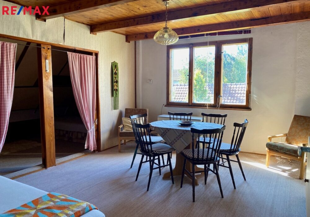 Dům byl postaven v r. 35 dle plánu architekta Snobla a nabízí řadu možností využití. Disponuje obývacím pokojem, kuchyní, pokojem, příjemnou společenskou místností a koupelnou v přízemí, v podkroví jsou 2 velké pokoje, druhá kuchyně a mnoho úložných prostor. K domu, který je možno využít jako dvougenerační, náleží také obrovský sklep.