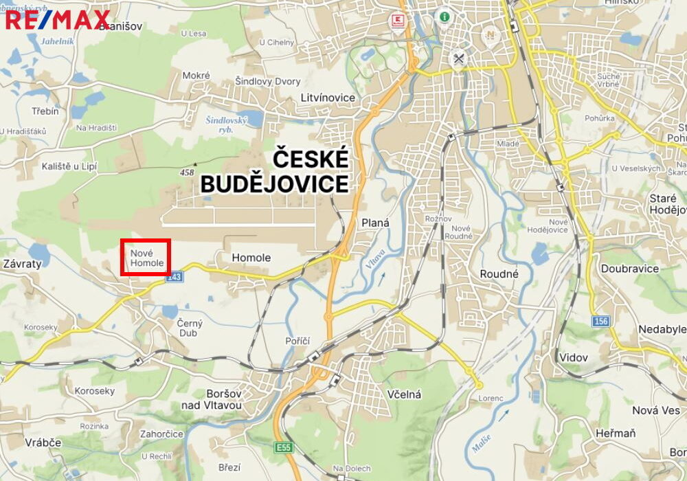 Nemovitost se nachází v obci Nové Homole, v lokalitě s komplexní občanskou vybaveností a dobrou dopravní dostupností (MHD, bus), vzdálené cca 8 km od Českých Budějovic.
