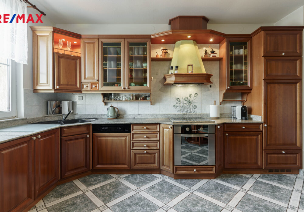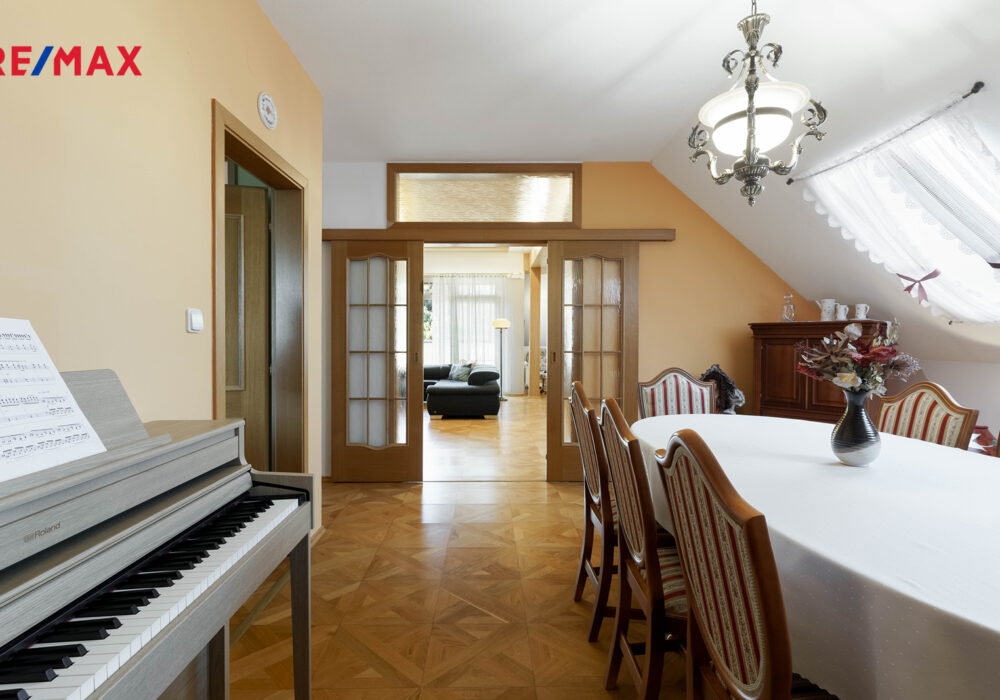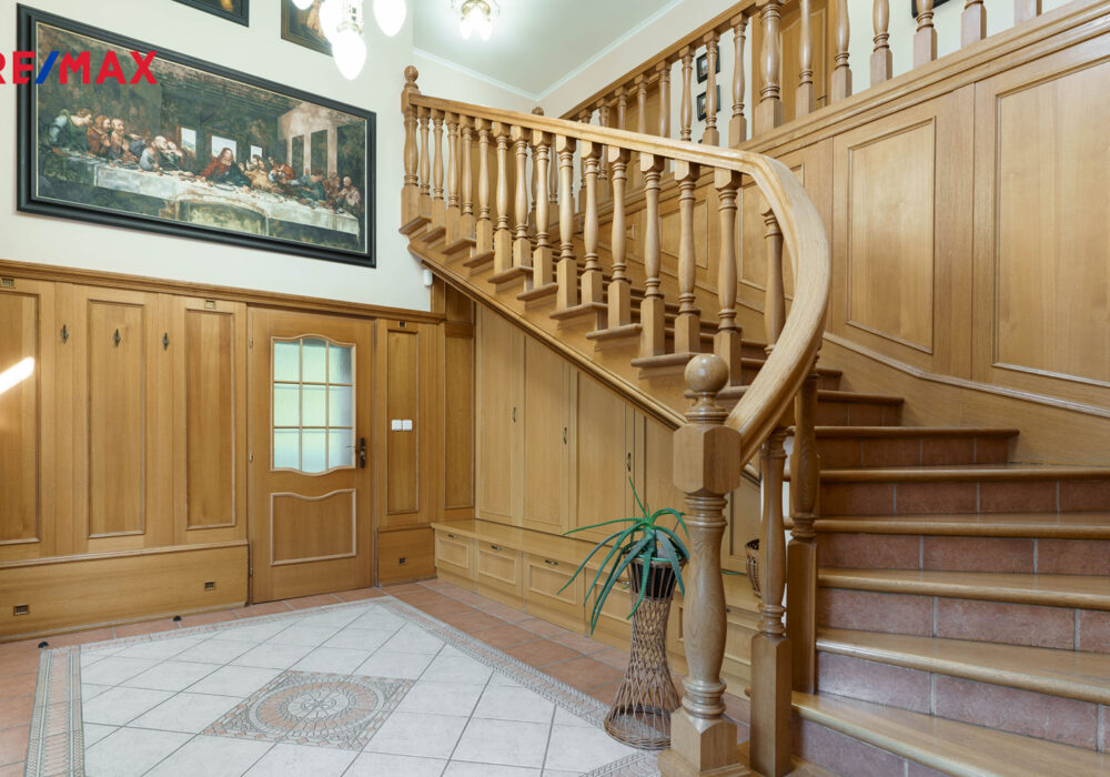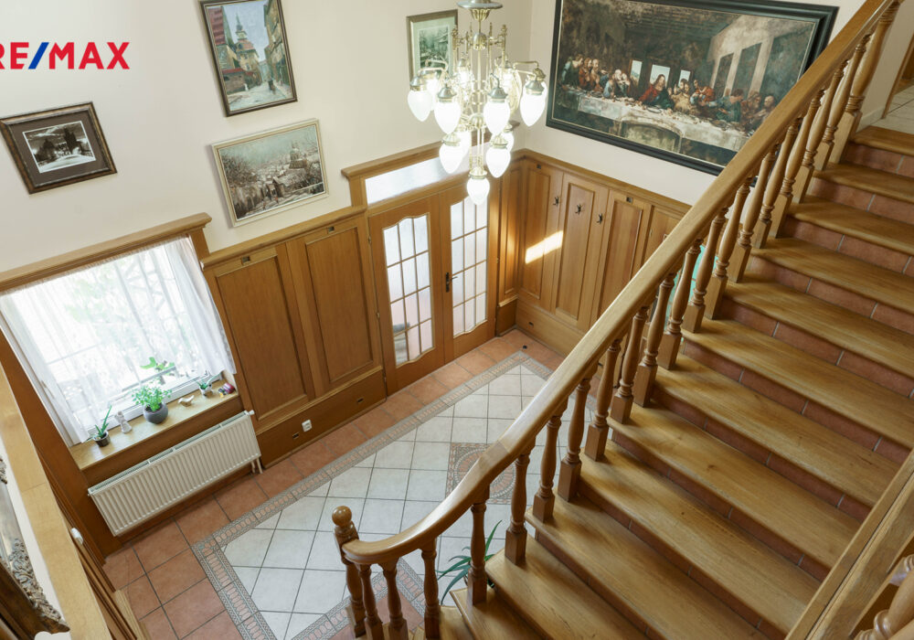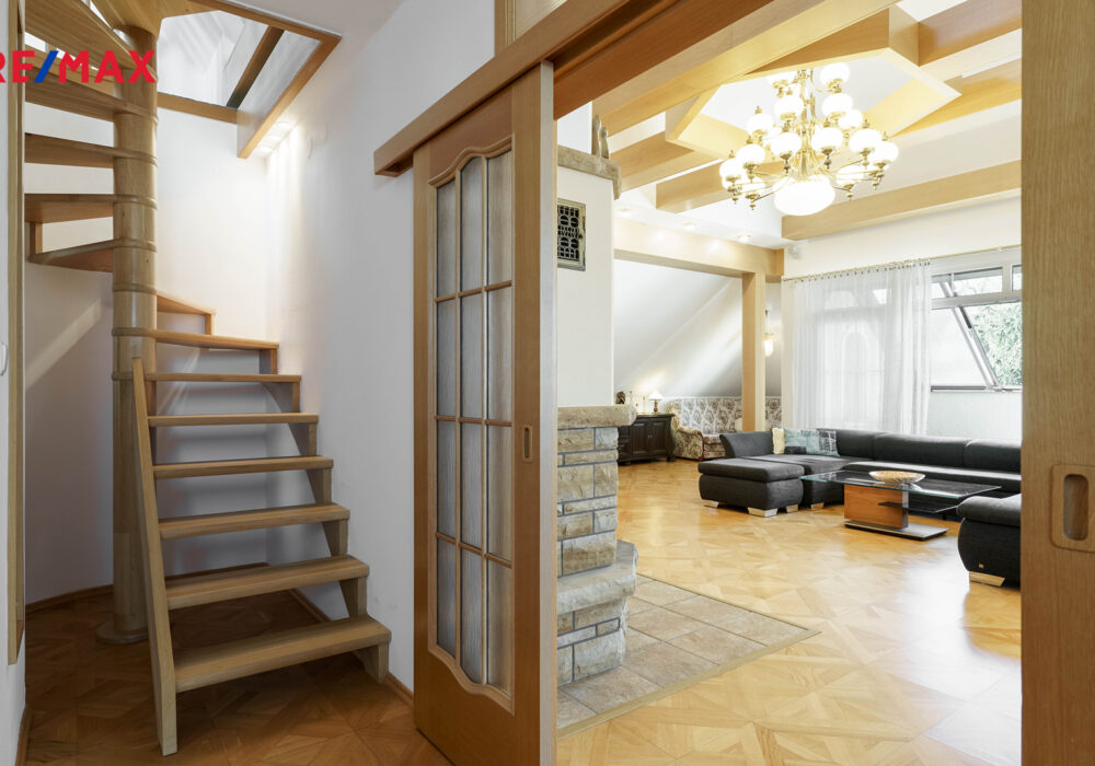 – stylové dřevěné prvky, parkety, lustry a elegantní detaily v celém interiéru