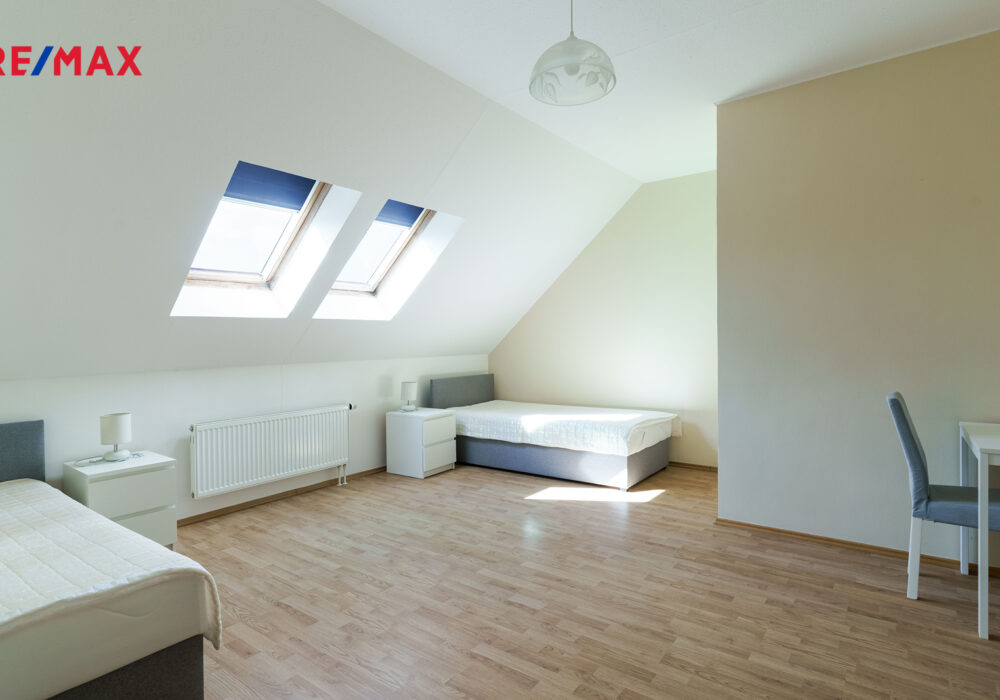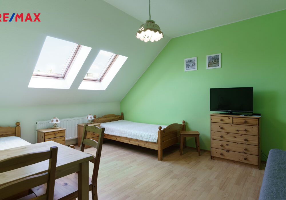 SOUČÁSTÍ DOMU JE TAKÉ PENZION, ideální pro ubytování hostů nebo dlouhodobé pronájmy – každý pokoj má vlastní koupelnu, k dispozici je i kuchyňka a sklad.