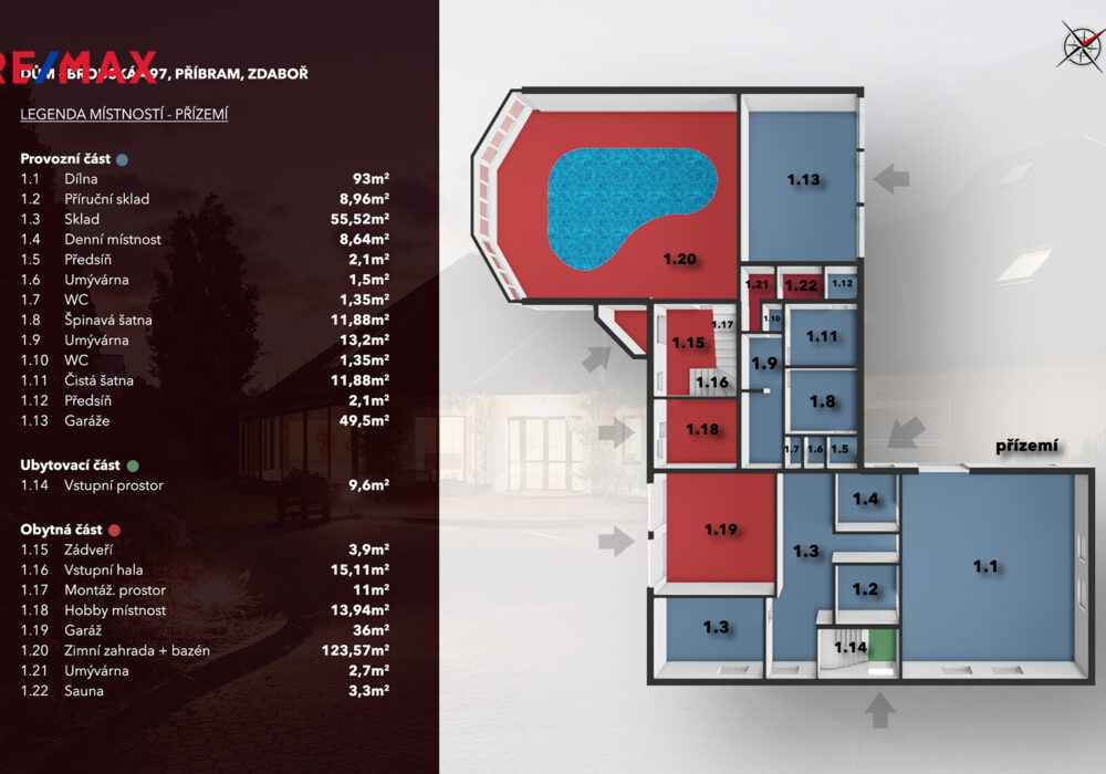 Představte si domov, který nabízí nejen výjimečný prostor pro život, ale i možnost podnikání a dalšího rozvoje. Právě takový dům vám nyní nabízíme – nádherně udržované rodinné sídlo s krásnou atmosférou, nacházející se v klidném a soukromém rezidenčním areálu v Příbrami.