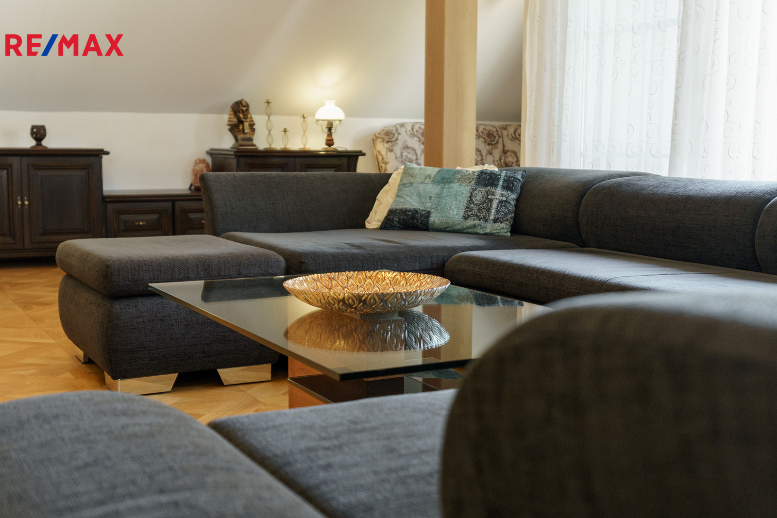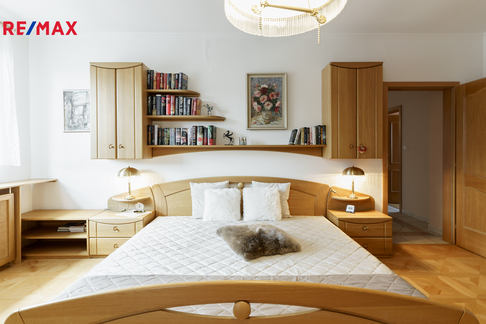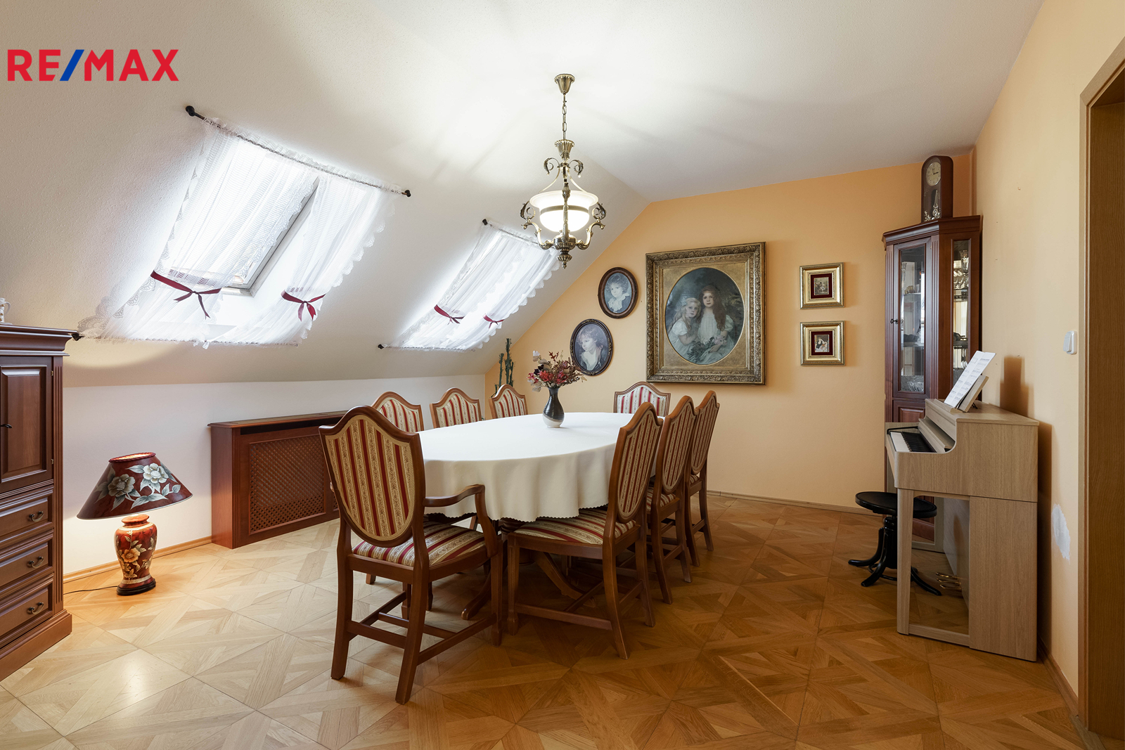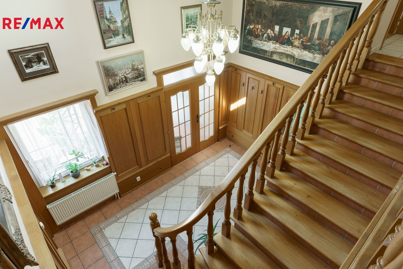 – stylové dřevěné prvky, parkety, lustry a elegantní detaily v celém interiéru