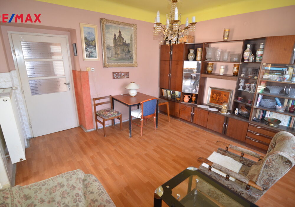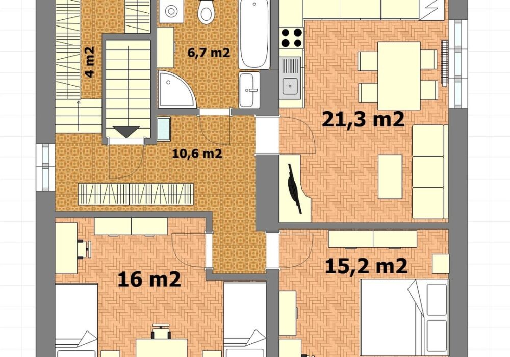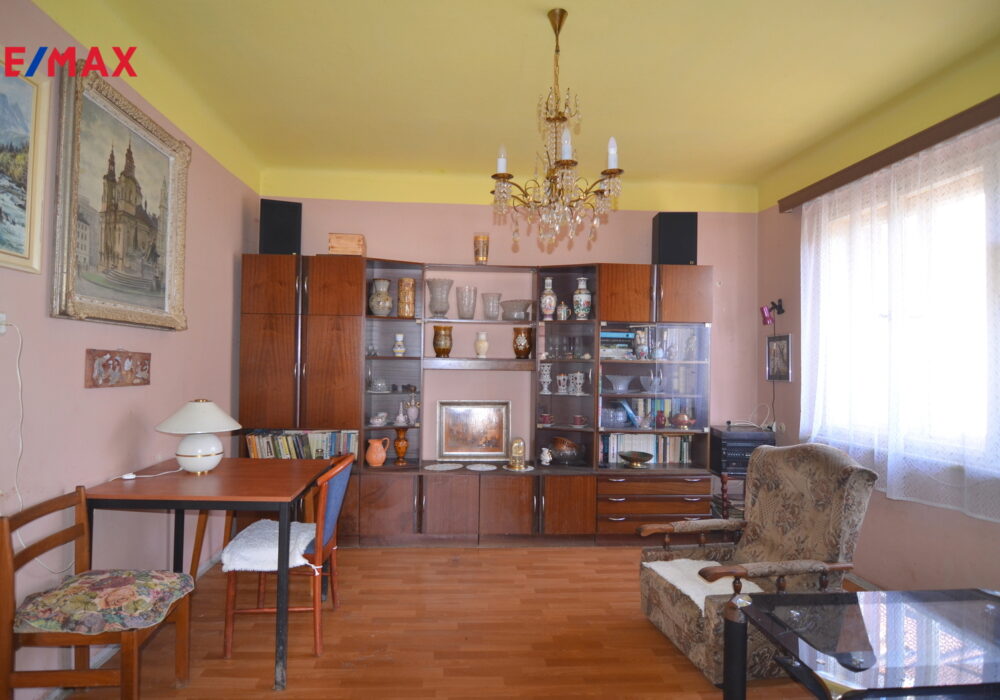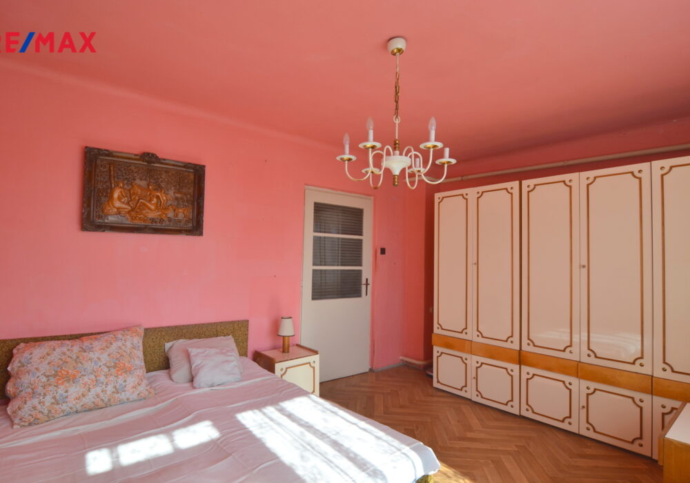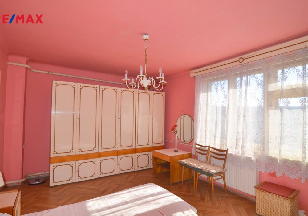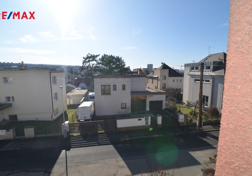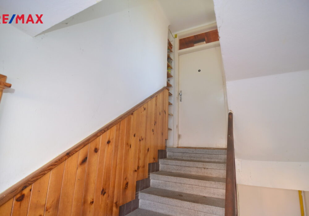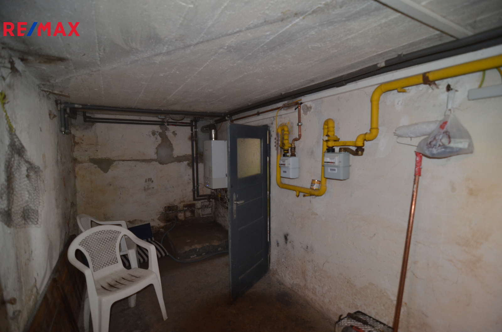 Samotná bytová jednotka (74 m2), která je předmětem prodeje, se nachází v 1. patře a je přístupná po schodišti ze společného zádveří. K dispozici je pak také polovina sklepu v suterénu domu o velikosti 13 m2 a další skladovací prostory na nižší půdě nad bytem.