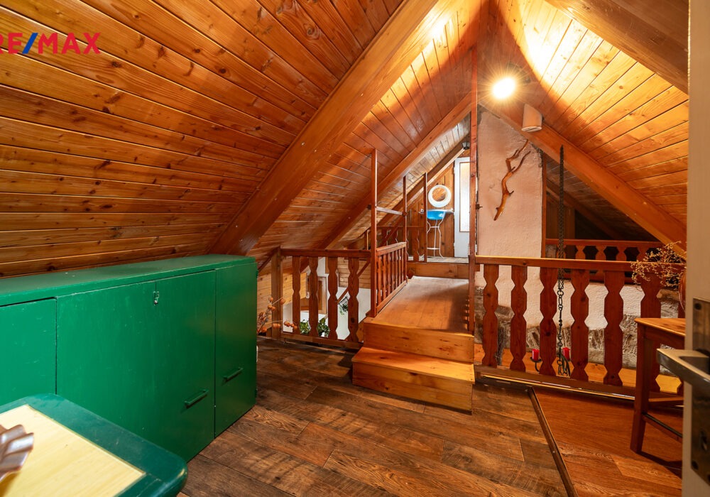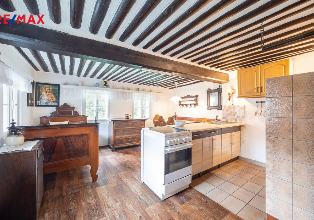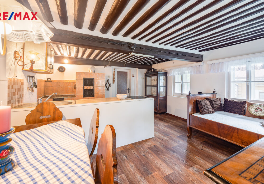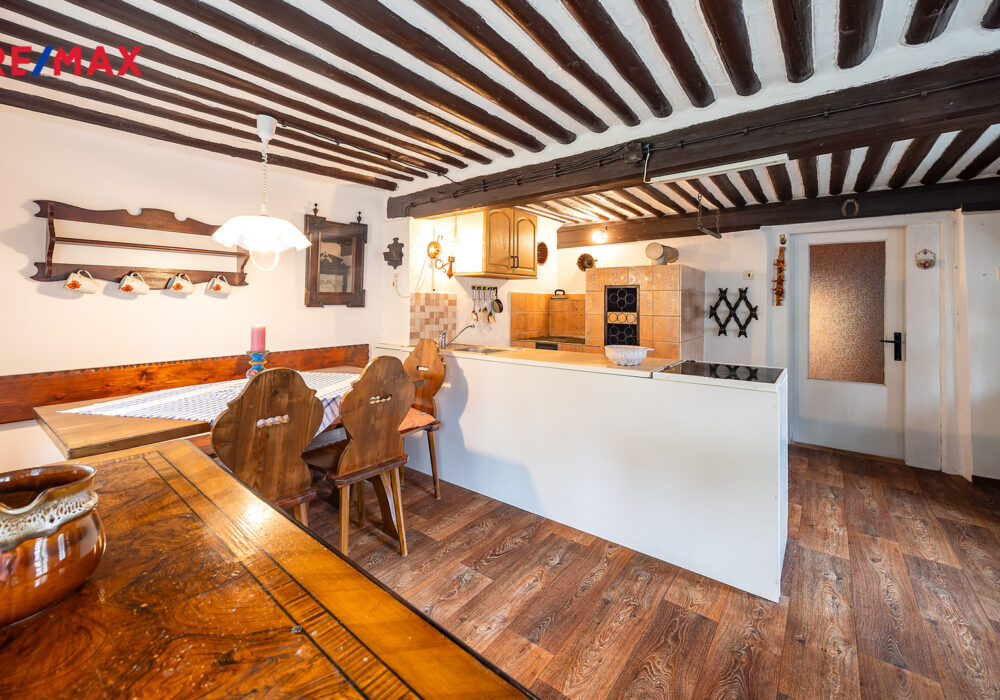 V přízemí se nachází obytný prostor s kuchyňským koutem a koupelnou. V podkroví jsou dva pokoje, vhodné jako ložnice, dětské pokoje nebo pracovna. Stylově zařízený interiér zachovává původní ráz stavby. Dřevěné stropy s trámy, palubkové obložení a historický nábytek dodávají celému prostoru autentickou venkovskou atmosféru.