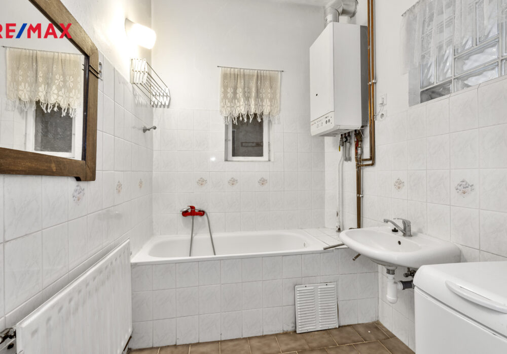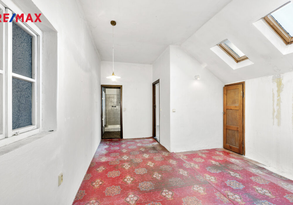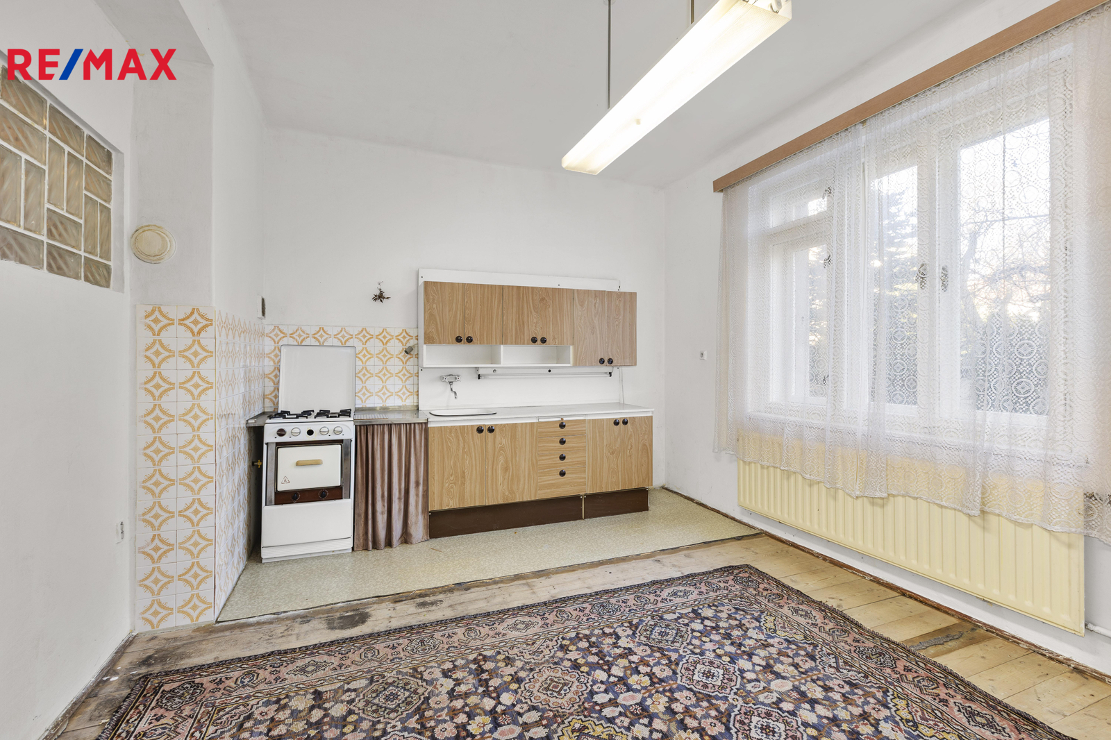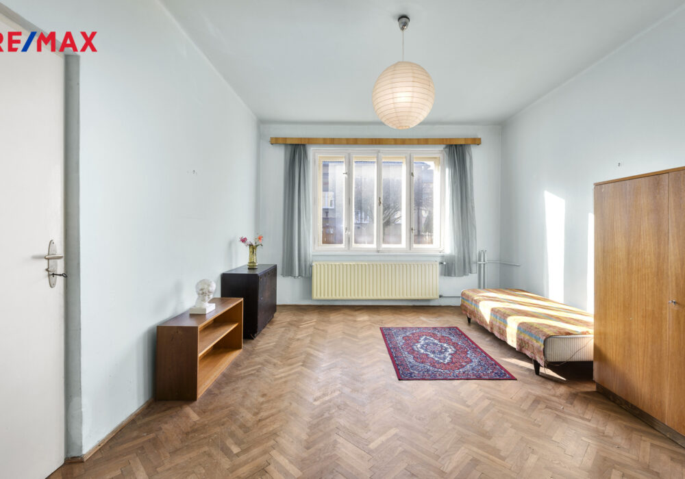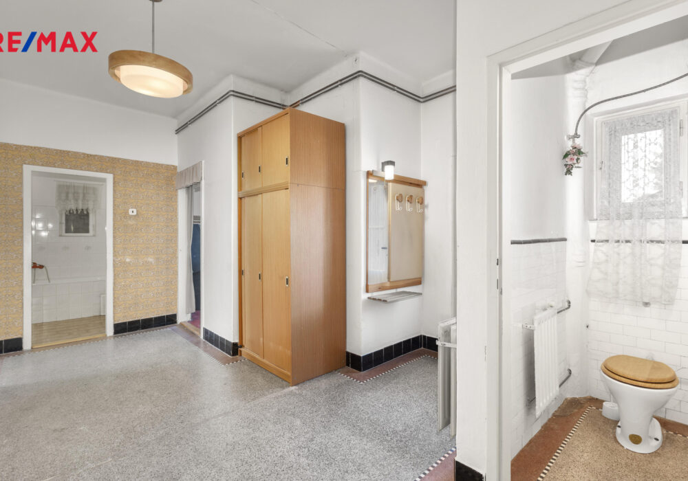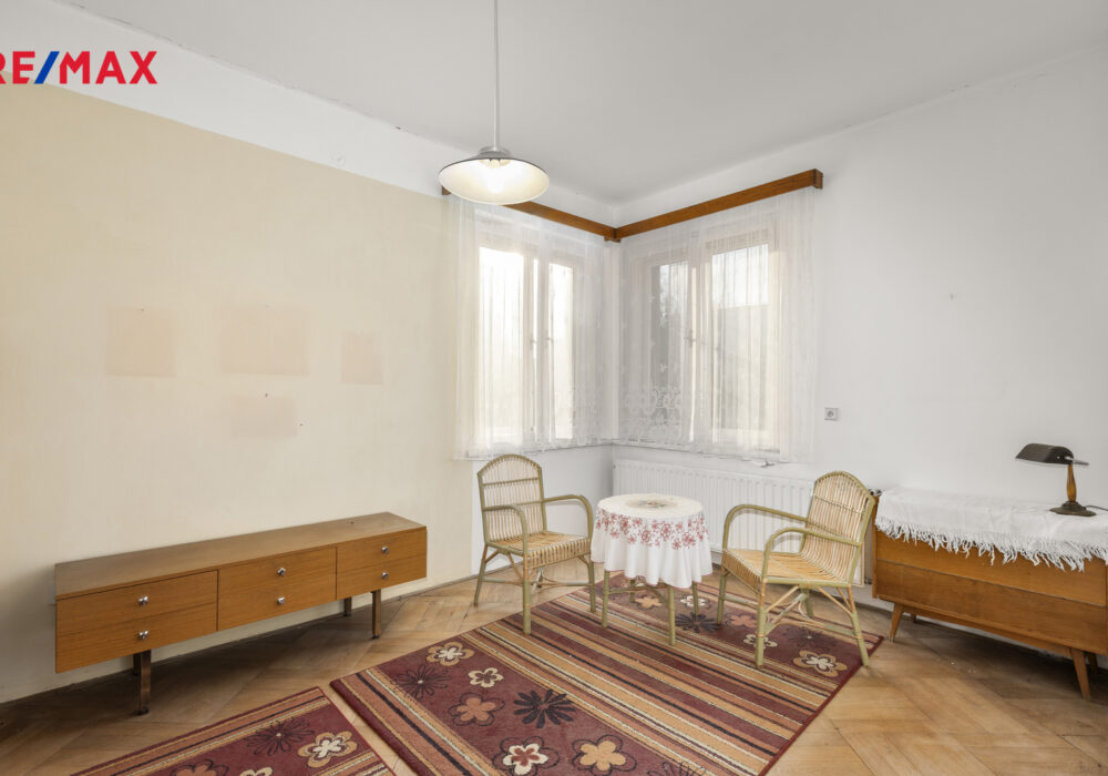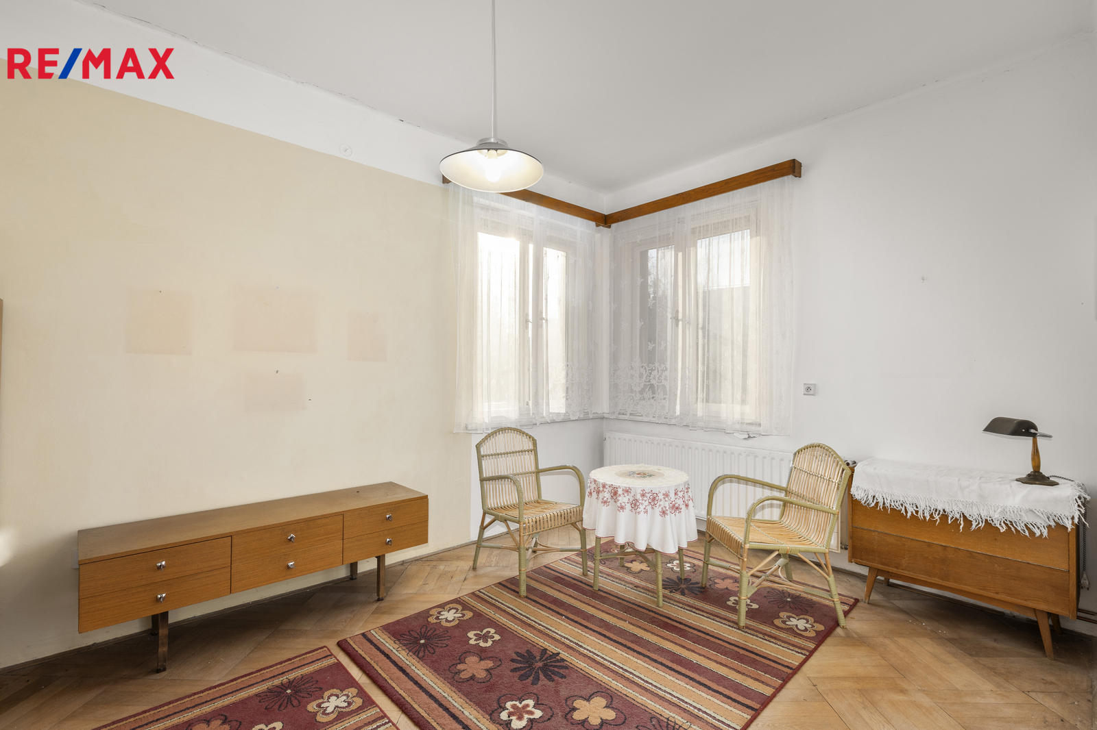 Nabízíme Vám výjimečnou investiční či rodinnou příležitost – řadovou vilu s celkovou podlahovou plochou cca 290 m² na pozemku o výměře 405 m². Dům má tři nadzemní podlaží se třemi byty se samostatnými vstupy. Suterén má výměru cca 85 m² – kde je garáž, technická místnost s kotlem na plyn, sklepy a prádelna. Dům je určen k rekonstrukci a je napojen na všechny inženýrské sítě a stojí na rovinatém pozemku; v zadní části zahrady se nachází zahradní domek s elektrickým připojením. Dům byl postaven v roce 1940, je v původním stavu – původní dřevěná okna, střecha z eternitu a původní parketové podlahy.