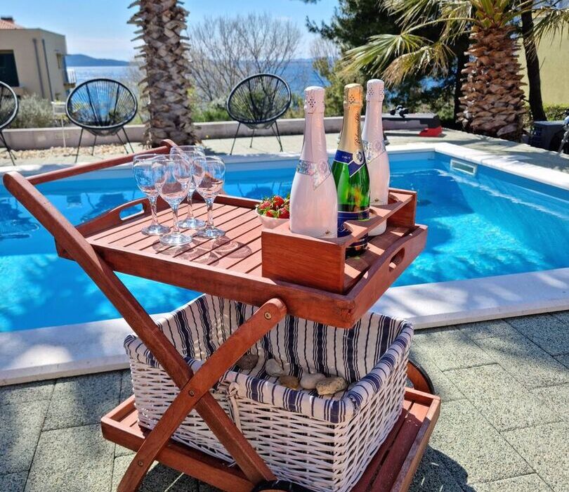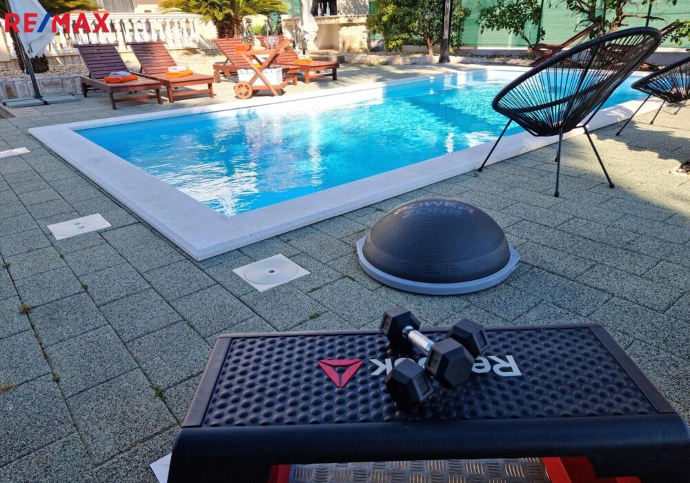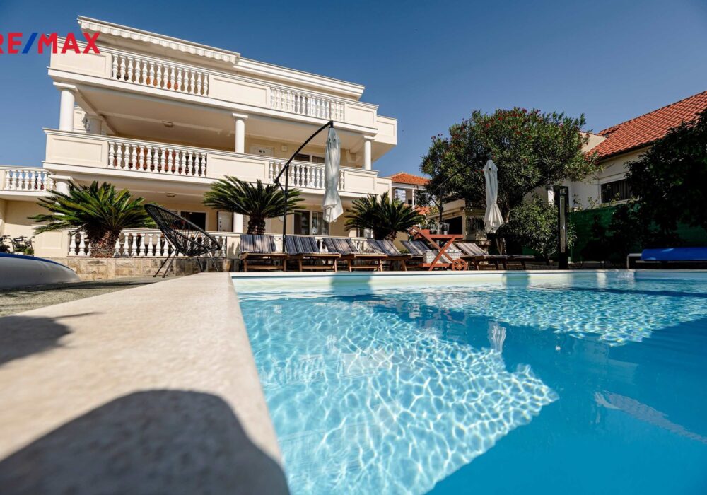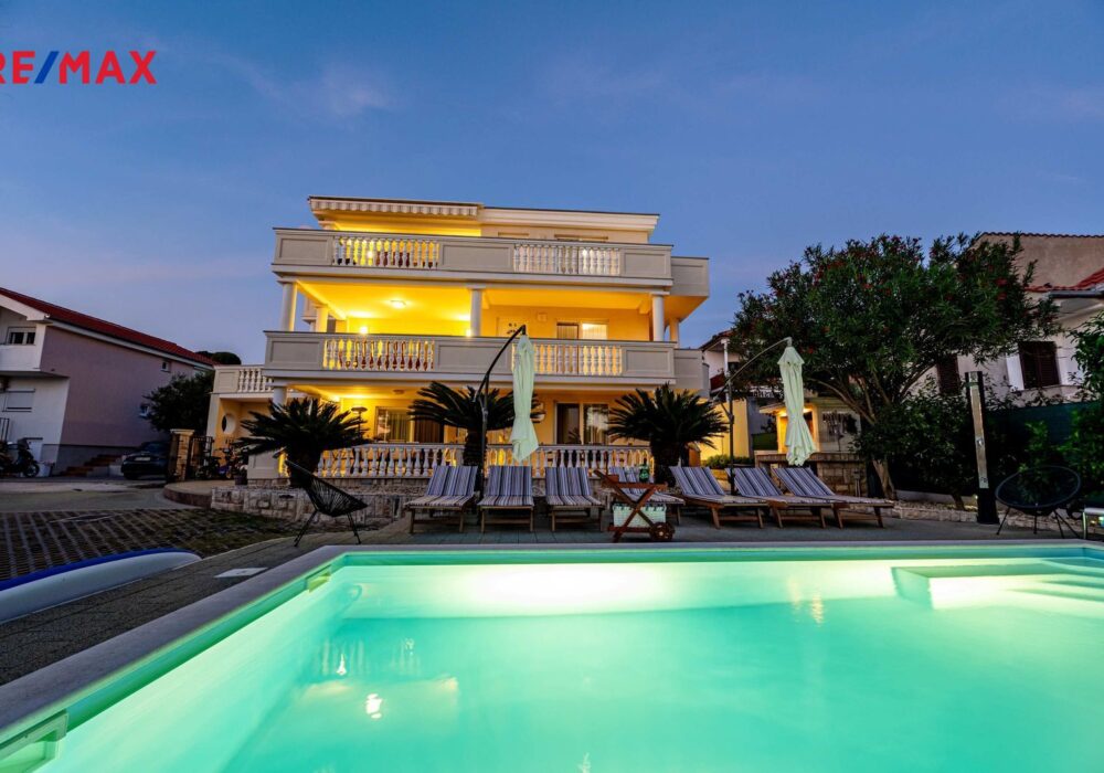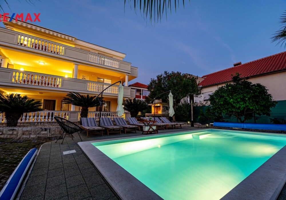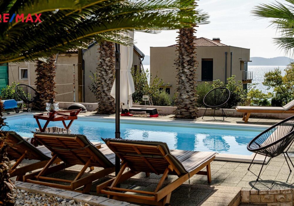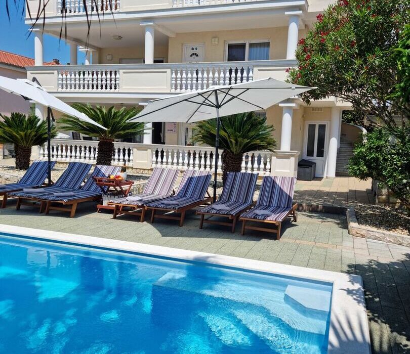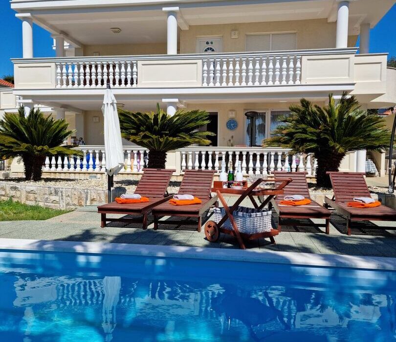 Exkluzivní nabídka vyjímečné vily v těsné blízkosti moře v Zadarské oblasti. Tato nabídka 3 podlažního apartmánového domu, ve kterém se nacházejí 4 klimatizované apartmány s výhledem na moře, případně do zahrady s bazénem, kde je prakticky téměř každý pohled zážitkem. Na chorvatském pobřeží nabízím již 7 let a tato nabídka je naprosto vyjímečná a to hlavně díky velmi zdařilé citlivé péči o okolí domu, bezúdržbovou zahradu a zeleň /grep, mandarinka, pomeranč, kumguat, oleandr, bylinkové záhonky, 8 palem a živý plot z bobkového listu. Absolutní péče je věnovaná i celému interiéru vily a tak každý apartmán poskytuje luxusní odpočinek díky komplexnímu vybavení / Wifi, Sat.rozvod s českými stanicemi, vyhřívaný a UV filtrovaný bazen. Největší výhodou celé nabídky je český majitel / firma/ a zavedený pronájem od 20.4. – 20.10. včetně welnes služeb.