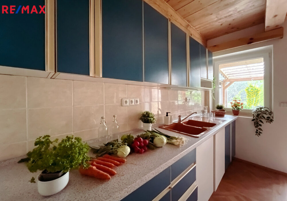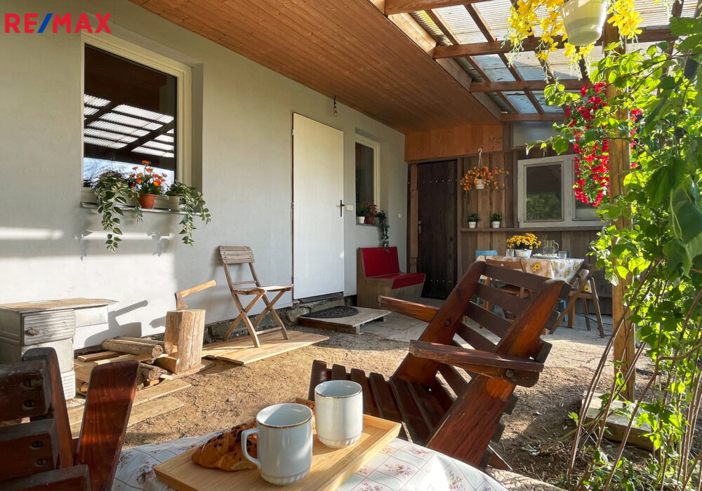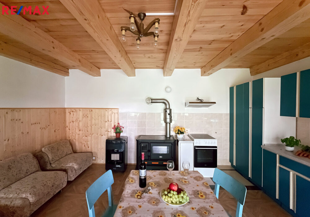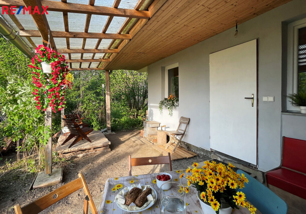 Zahradní domek prošel v roce 2018 rekonstrukcí a zateplením. Má dvojité dveře a dvě plastová okna. V interiéru se nachází dřevěný trámový strop, betonová podlaha s PVC krytinou, štukové omítky, palubkové obložení a keramický obklad. Domek je vybaven kuchyňskou linkou (dvojitý dřez, průtokový ohřívač vody, elektrický sporák s troubou a digestoří), koupelnovým koutem (umývadlo s průtokovým ohřívačem, skříňky a zrcadlo) a kamny na dřevo s napojením do zděného komína.