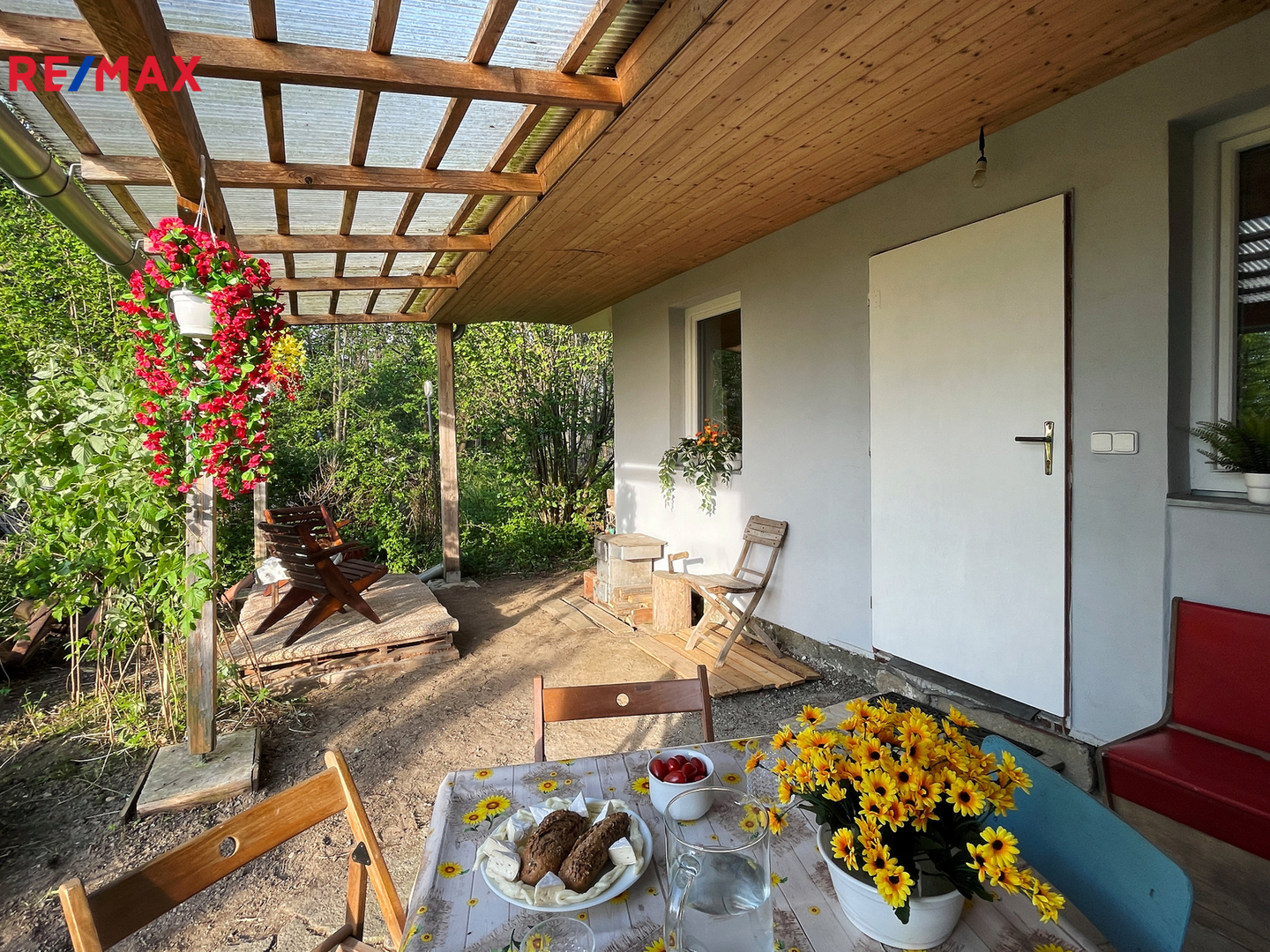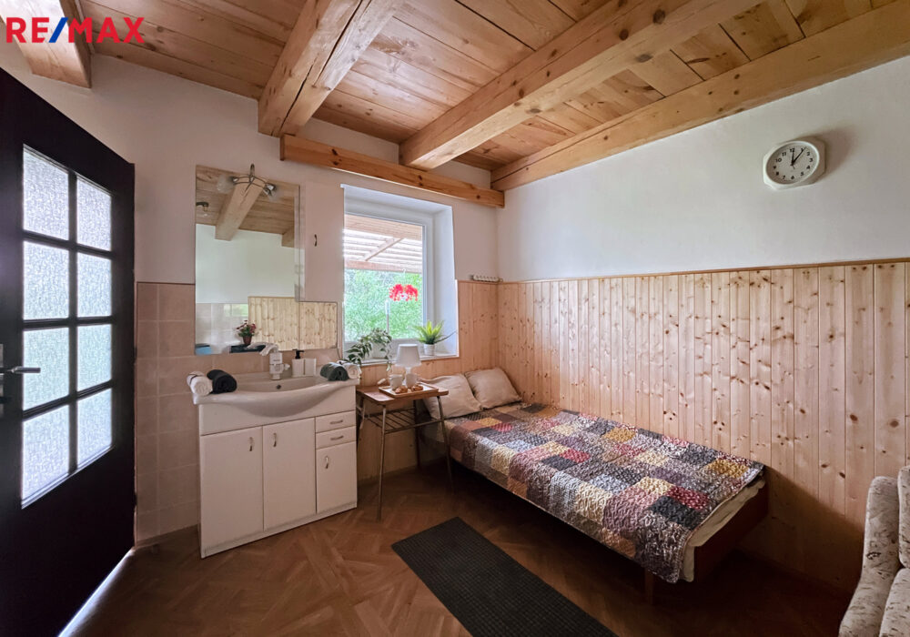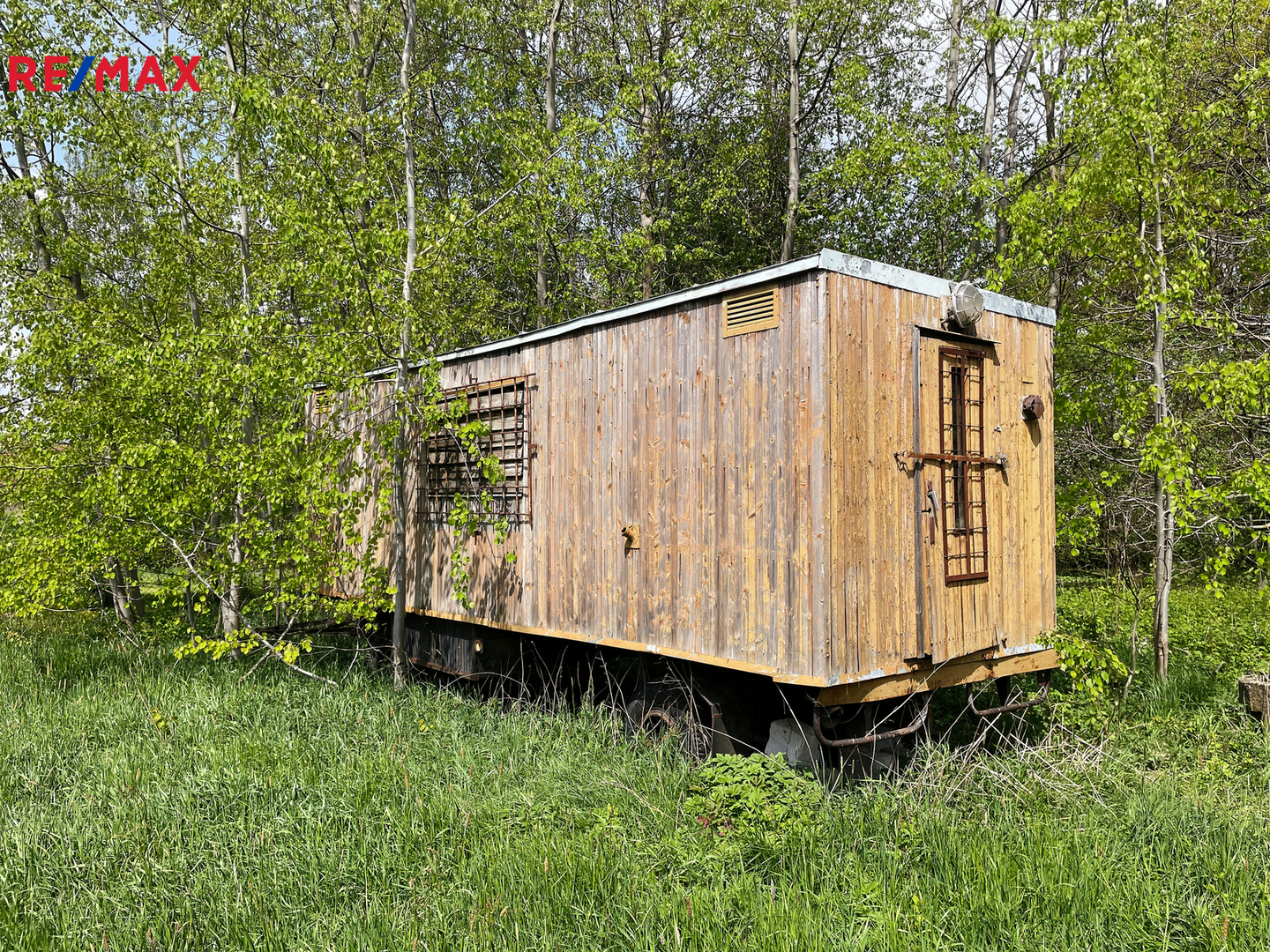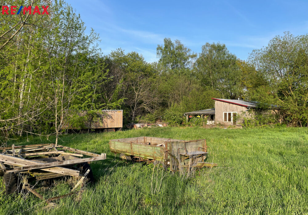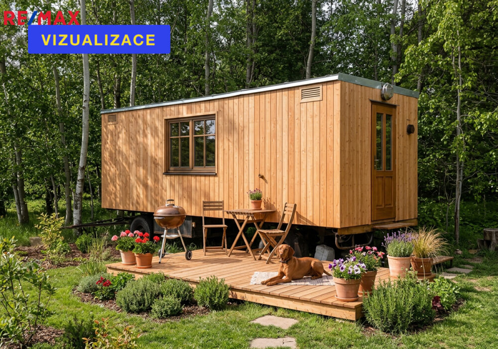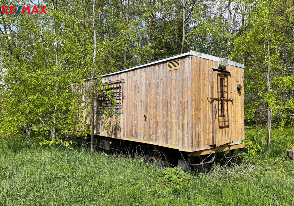 Na pozemku se dále nachází dlouhá dřevěná maringotka, kterou lze po renovaci využít pro včelařské, zahradní nebo obytné účely, a také dvě vlečky na kolech a několik hromad řeziva (fošny, latě a palivové dřevo).