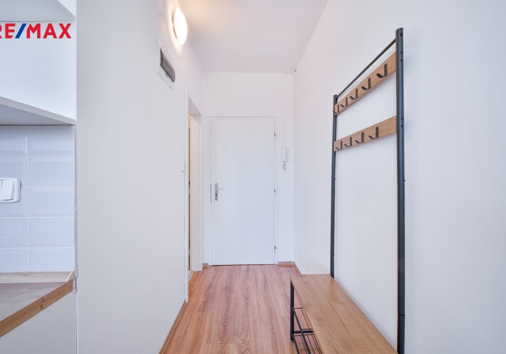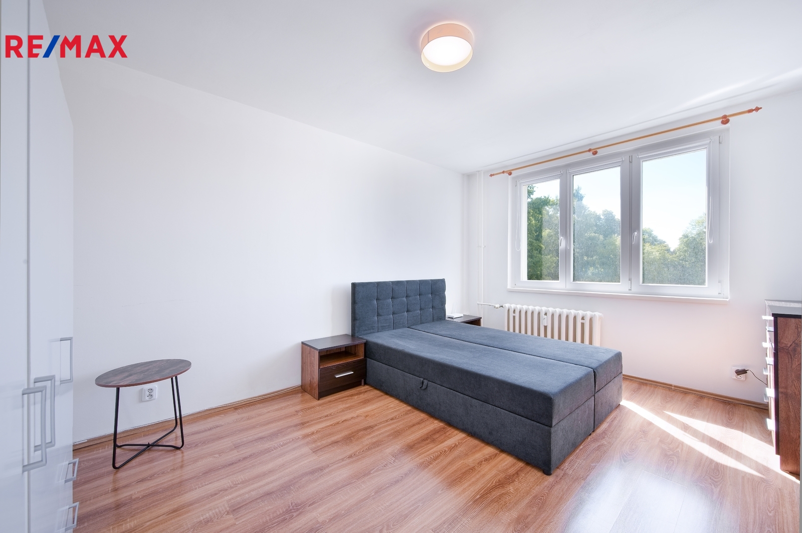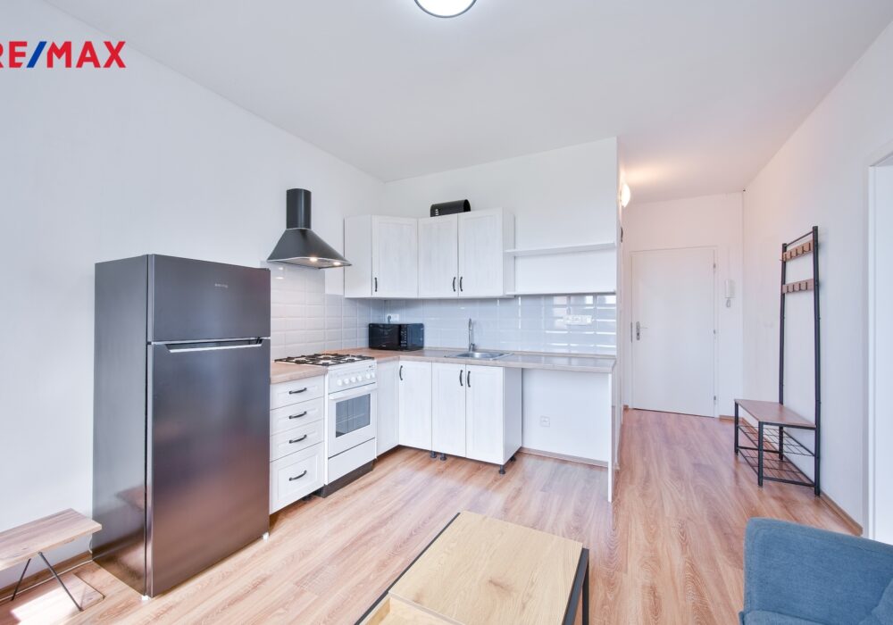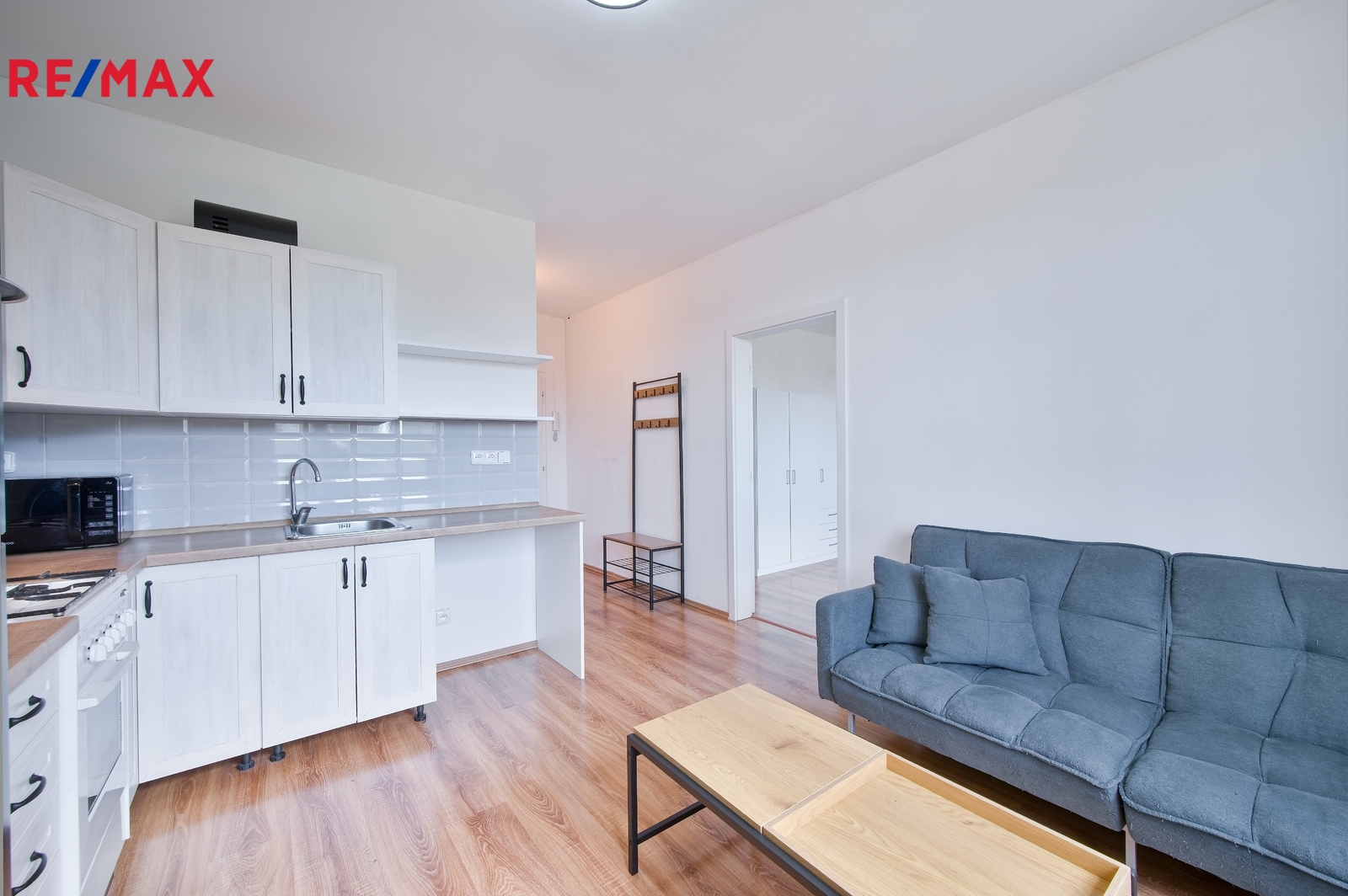 Ve výhradním zastoupení nabízíme k pronájmu byt o dispozici 1+1 a celkové výměře 35,75m2. Bytová jednotka v osobním vlastnictví, se nachází ve 5.NP panelového domu o celkem 8. podlažích s výtahem. Bytová jednotka prošla vkusnou kompletní rekonstrukcí pár let zpět. Ze vstupní chodby se dostaneme do moderně zařízené koupelny a také do hlavního pokoje, kde je kuchyň propojena s obývákem. Dále zde pak nalezneme poměrně prostornou ložnici. K bytu náleží sklepní kóje.