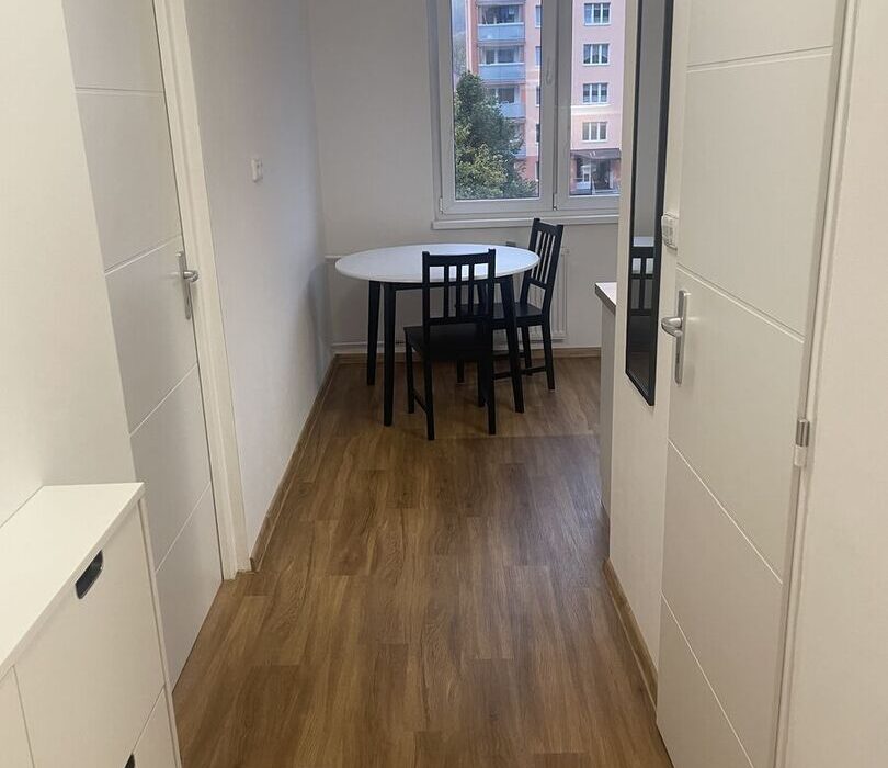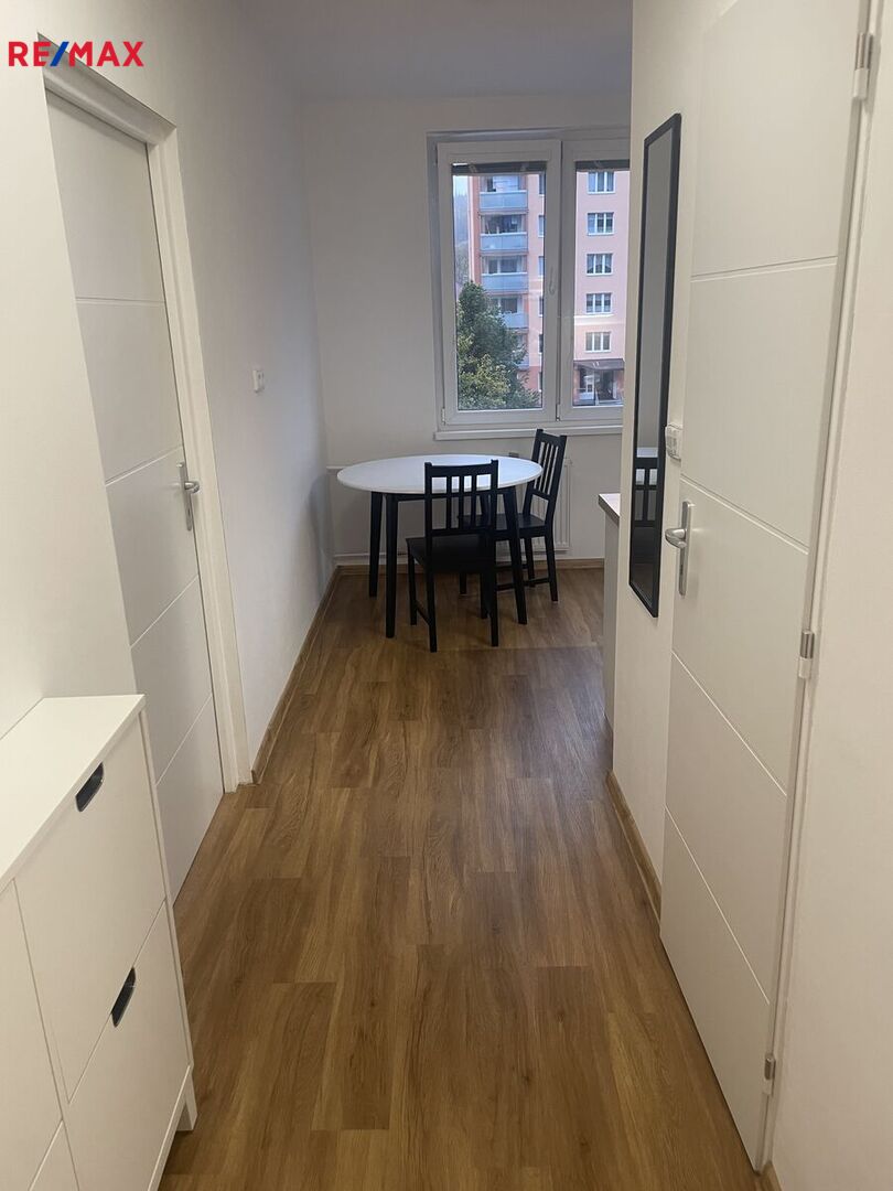 Námi nabízený byt je o dispozici 1+1. Prošel kompletní rekonstrukcí, která z něj udělala útulné místo. Působí jako byt v novostavbě, i když se nachází v panelovém domě s výtahem. Nová kuchyňská linka s vestavěnými spotřebiči usnadní vaření, sprchový kout s nadstandardními rozměry a útulný pokoj pro spánek i příjemné chvíle s knihou nebo filmem.