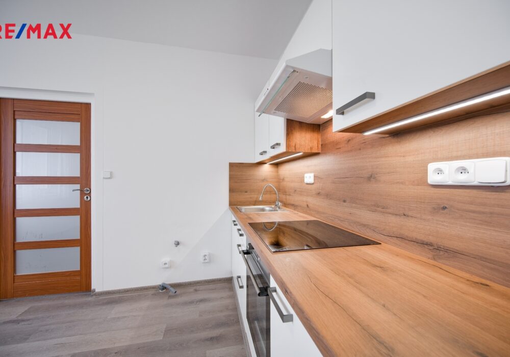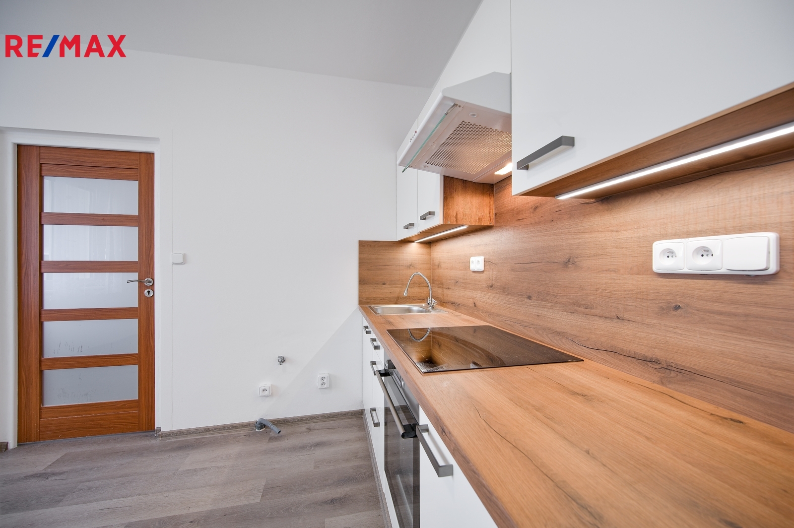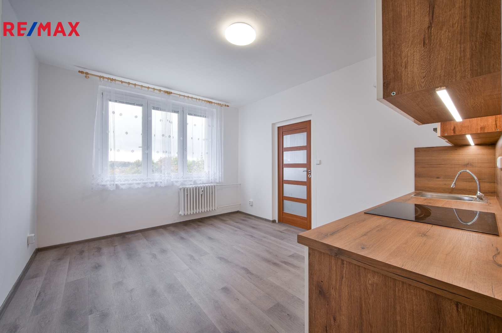 Ve výhradním zastoupení nabízíme k pronájmu byt s dispozicí 1+1 o podlahové ploše 38,36 m2 v osobním vlastnictví, který se nachází v 6.NP (5.patře) panelového domu o 6. podlaží s výtahem. Byt je aktuálně těsně po dokončení velmi povedené rekonstrukce. Nové zděné jádro, velmi pěkně designově sladěno s celým interiérem bytu. Nové rozvody elektřiny. Nová krásná vinylová podlaha v celém bytě. Bytová jednotka byla rekonstruována s citem a za pomocí kvalitních materiálů. K bytu náleží sklepní kóje.