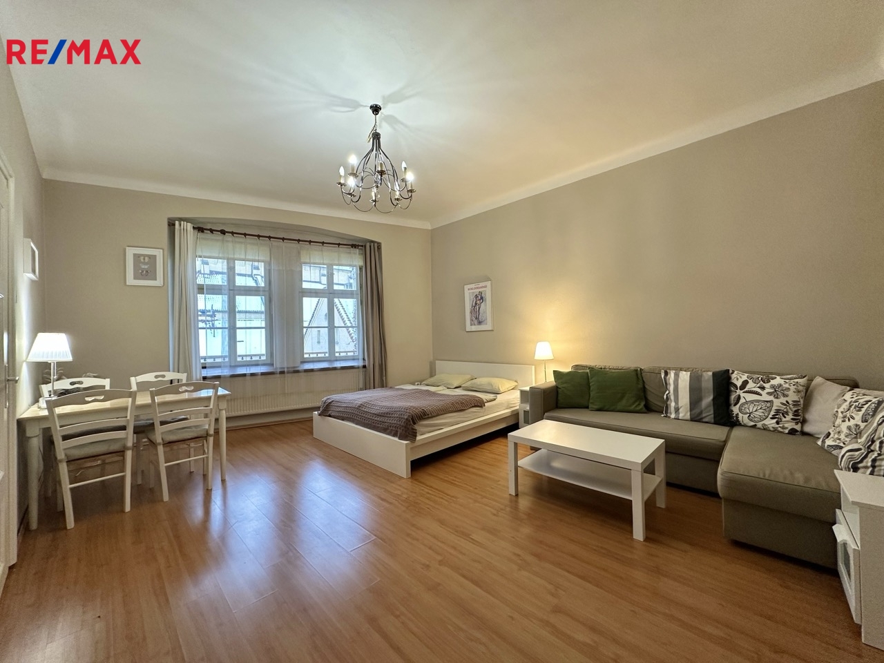 Dispozice bytu nabízí hlavní obytnou místnost s dostatkem prostoru pro relaxaci i spaní, kuchyně je prakticky oddělena ve vstupní části bytu. Koupelna je vybavena sprchovým koutem, umyvadlem a toaletou. Pavlač poskytuje příjemný prostor pro ranní kávu, snídani, oběd i večerní posezení v jedinečné atmosféře Starého Města.