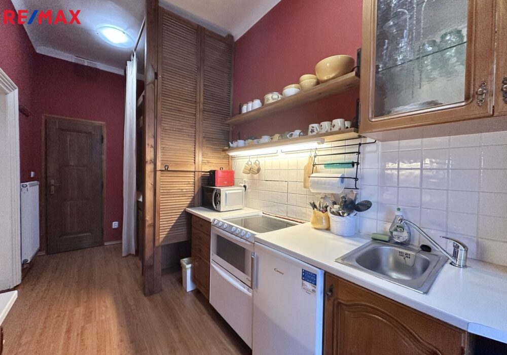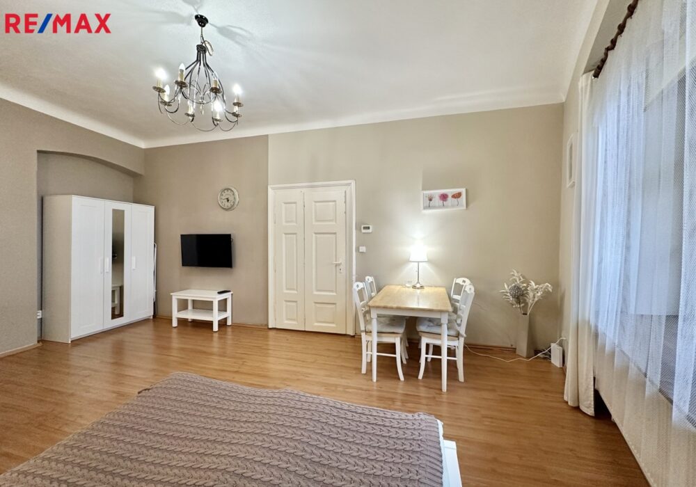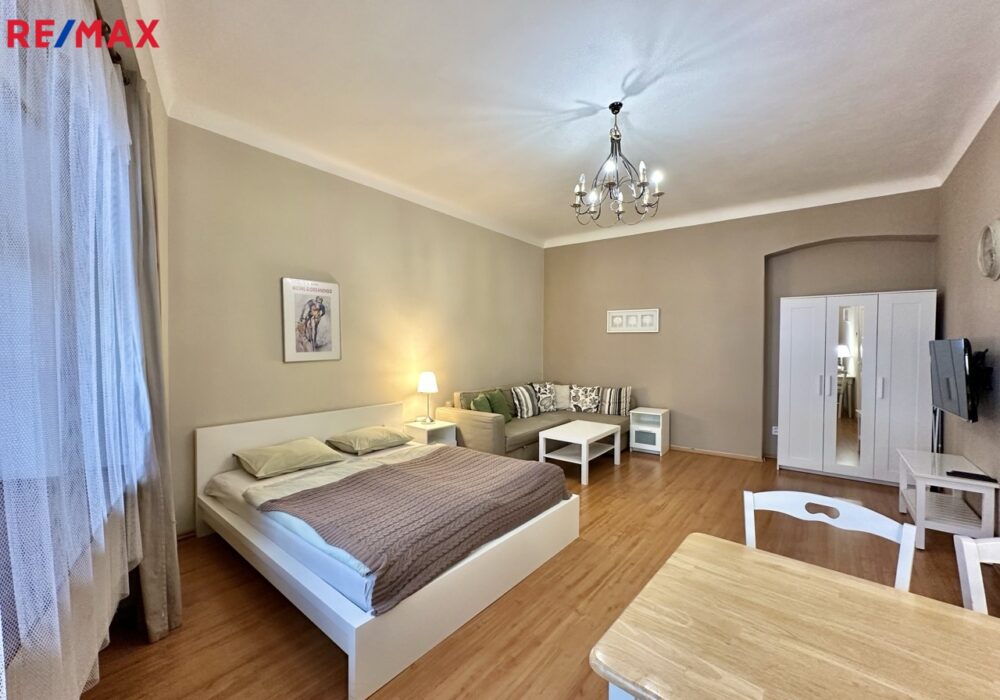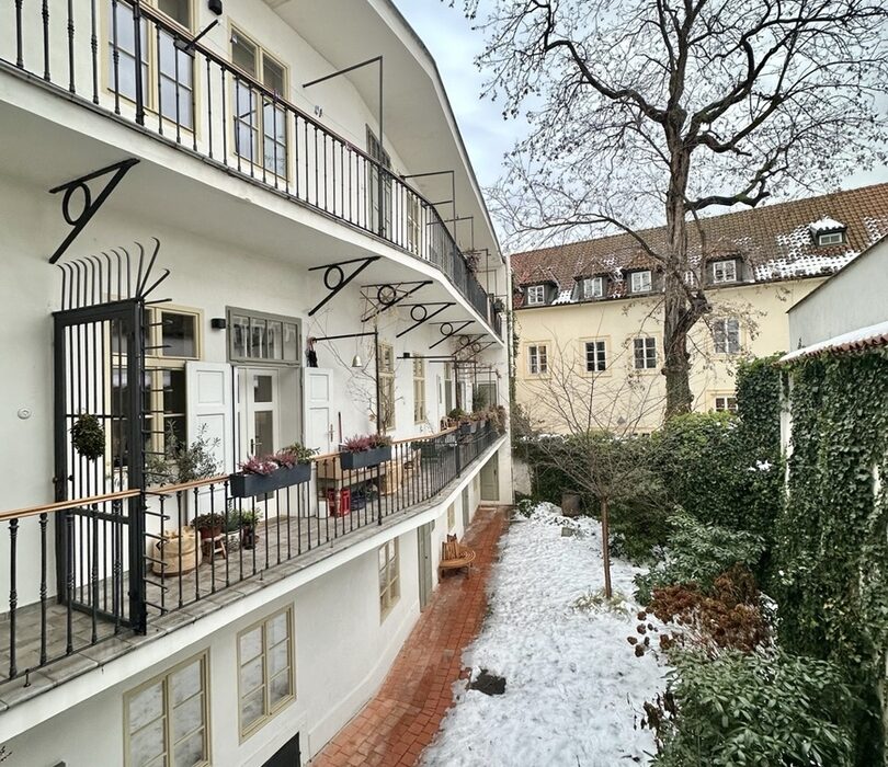 Dovolujeme si vám nabídnout pronájem bytu na opravdu výjimečném místě Prahy 1. Jen pár kroků od Vltavy, v klidné Anežské ulici na Starém Městě, se nachází byt 1+1 o ploše 39 m², který nabízí bydlení v opravdovém srdci Prahy. Všechna nejkrásnější místa Starého Města máte doslova pár minut chůze, přesto byt leží stranou turistického ruchu ve slepé ulici – v naprostém klidu. Historický dům s pavlačemi, vlastní zahradou, půvabným schodištěm a výhledem na kostel svatého Haštala dodává bytu nezaměnitelnou staropražskou atmosféru.