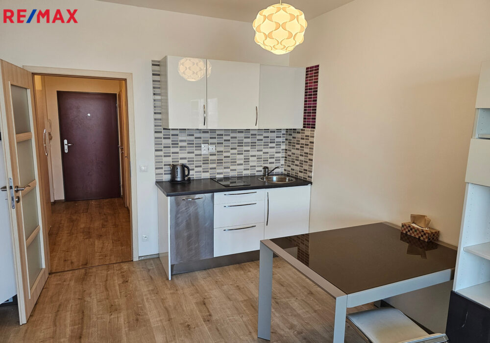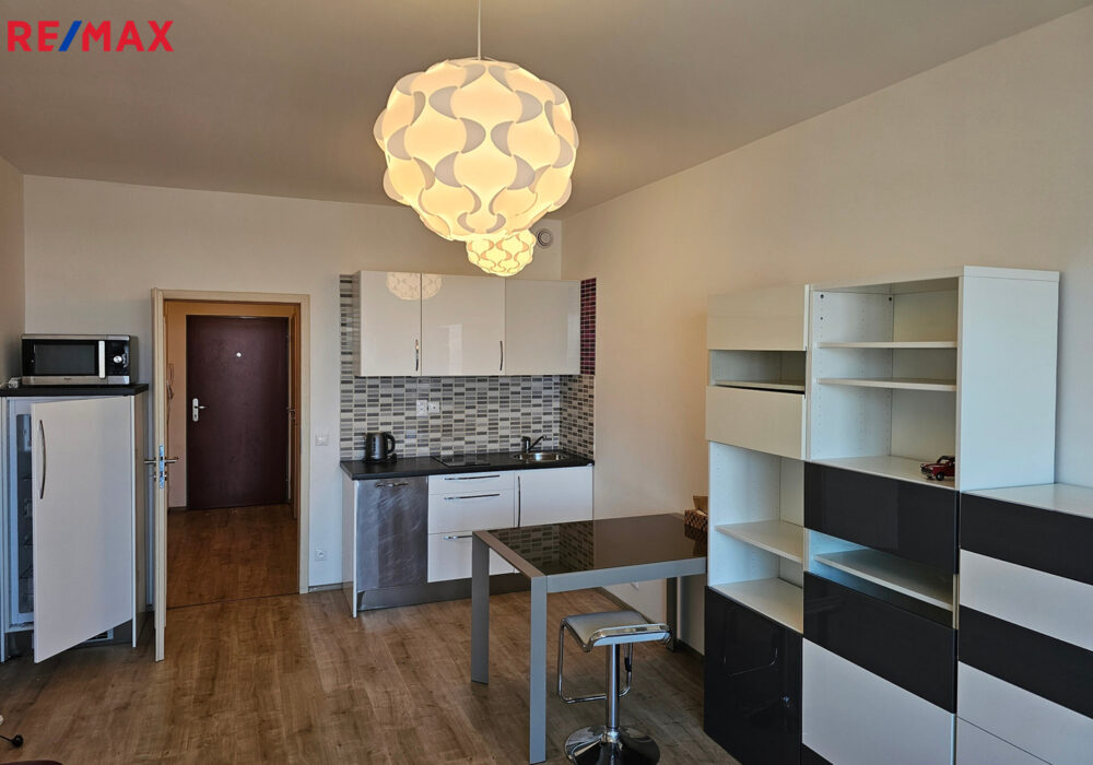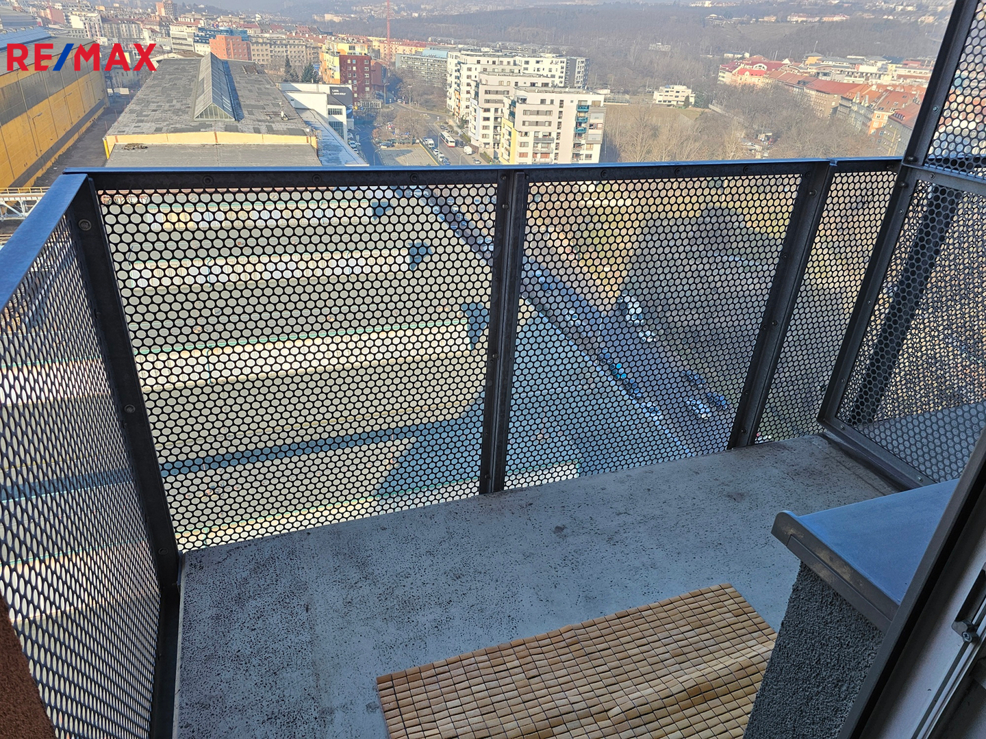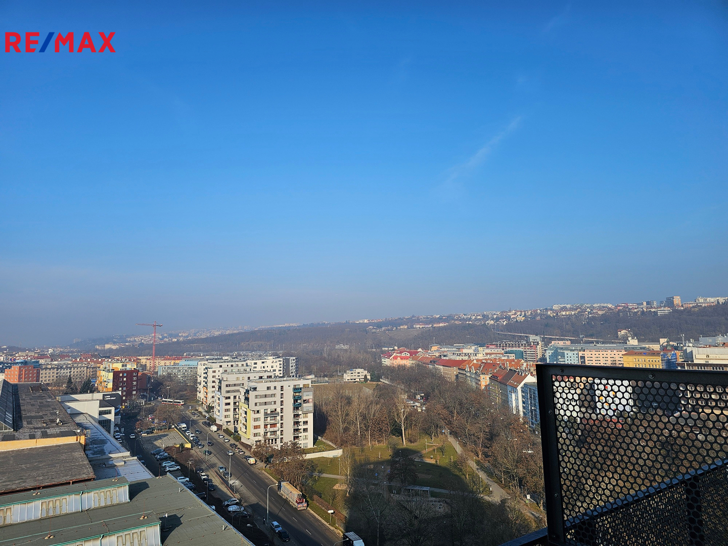 Pronájem bytu 1+kk s balkonem, ul.Freyova, P-9. Byt se nachází ve 13.patře rezidence Eliška. Byt je kompletně zařízený nábytkem, kuchyňská linka, sklokeramická dvouplotýnka, myčka, lednice s mrazákem, mikrovlnka, pračka v koupelně. V předsíni vestavěná skříň. Koupelna se sprchovým koutem a WC, vedle koupelny malá komora. K bytu náleží sklep. V přízemí domu recepce. Měsíční poplatky 4.200,- Kč + převod elektřiny na nájemce. Kauce 20.000,- Kč. V okolí rezidence je veškerá občanská vybavenost, cyklostezka atd. V domě je možno si k bytu pronajmout parkovací stání. Na metro B stanice Vysočanská 8 min chůze.