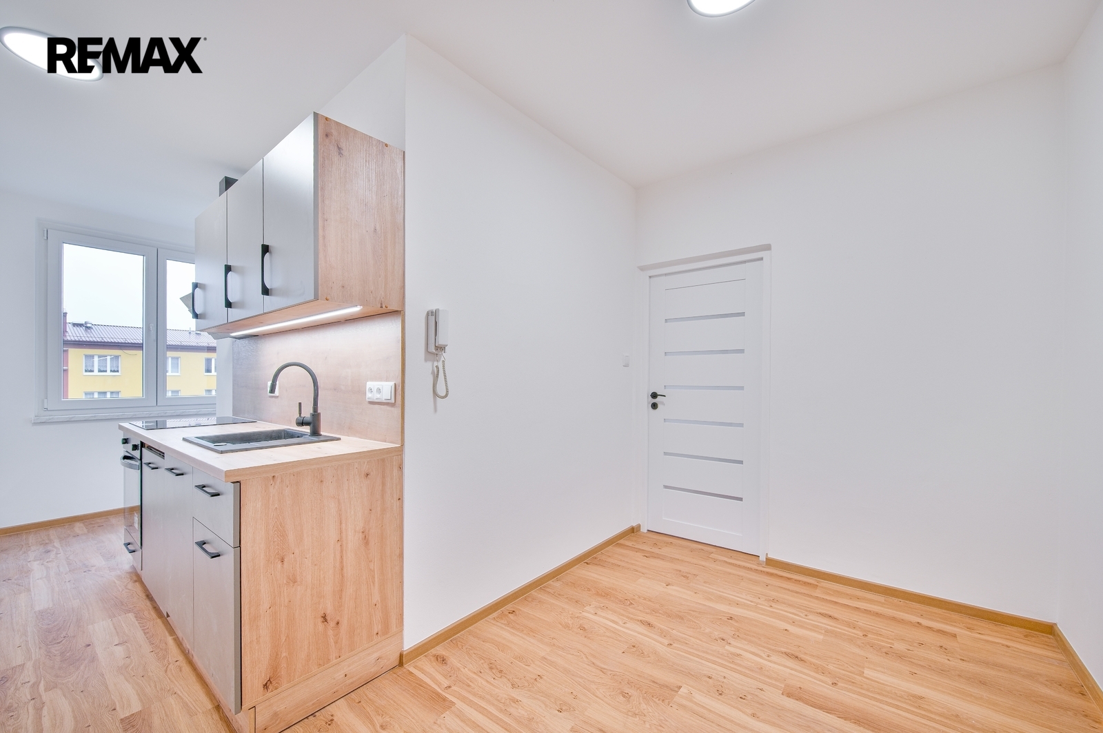 Ve výhradním zastoupení nabízíme k pronájmu byt s dispozicí 2+1 o podlahové ploše 54 m2 v osobním vlastnictví, který se nachází v 8.NP (7.patře) panelového domu o 8. podlaží s výtahem. Byt je aktuálně těsně po dokončení velmi povedené rekonstrukce. Nové zděné jádro, velmi pěkně designově sladěno s celým interiérem bytu. Nové rozvody elektřiny. Nová krásná vinylová podlaha v celém bytě. Bytová jednotka byla rekonstruována s citem a za pomocí kvalitních materiálů.