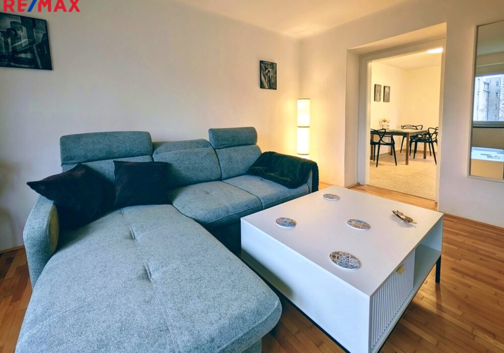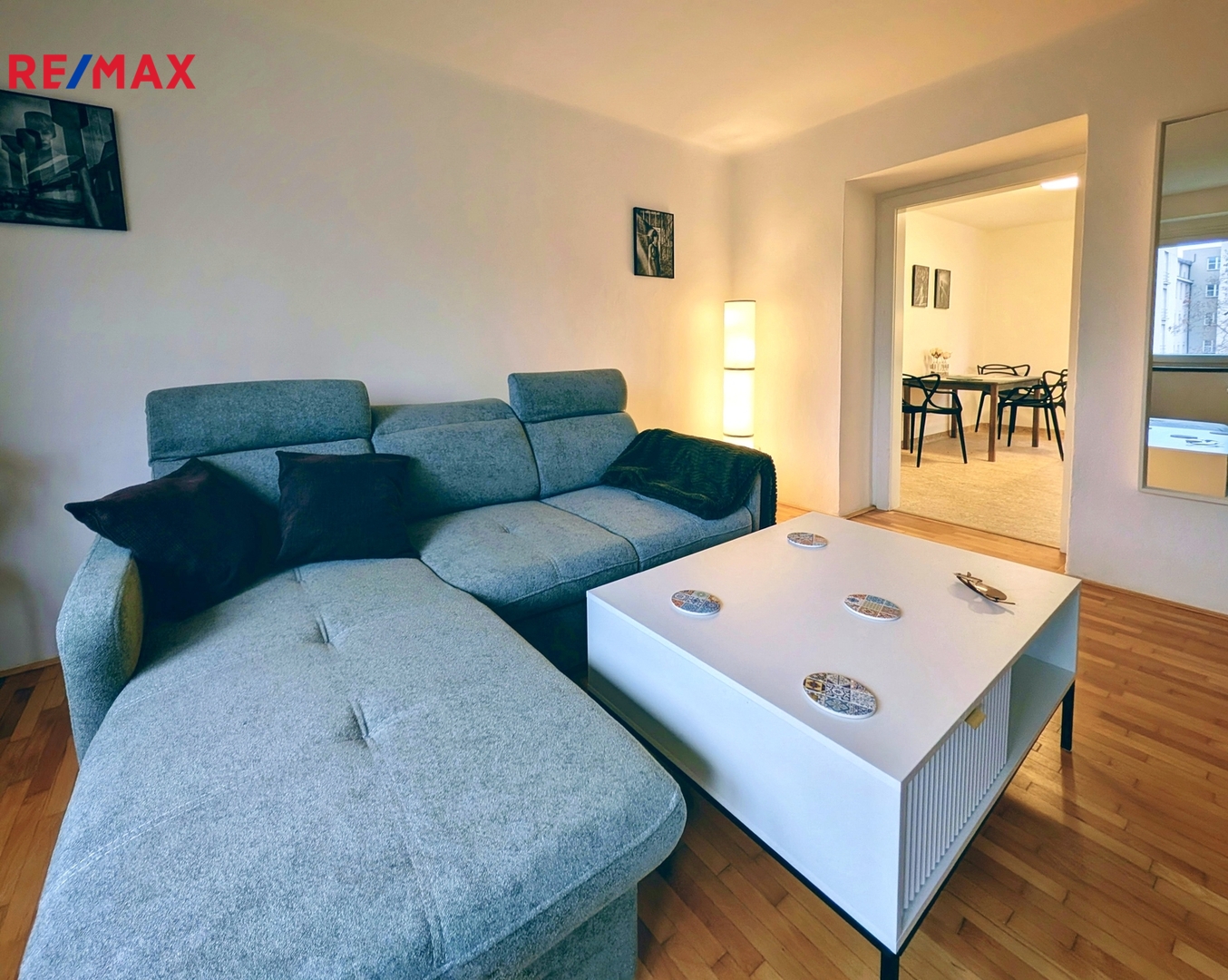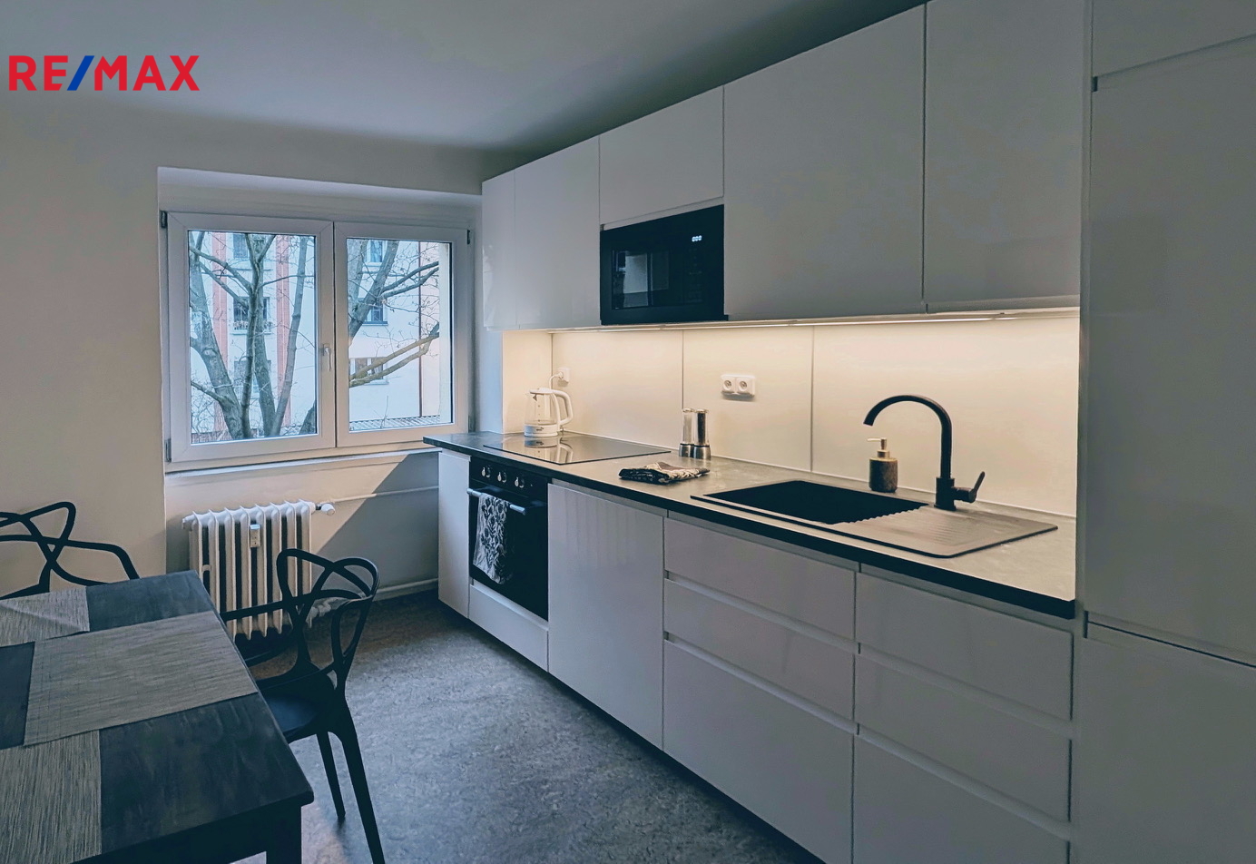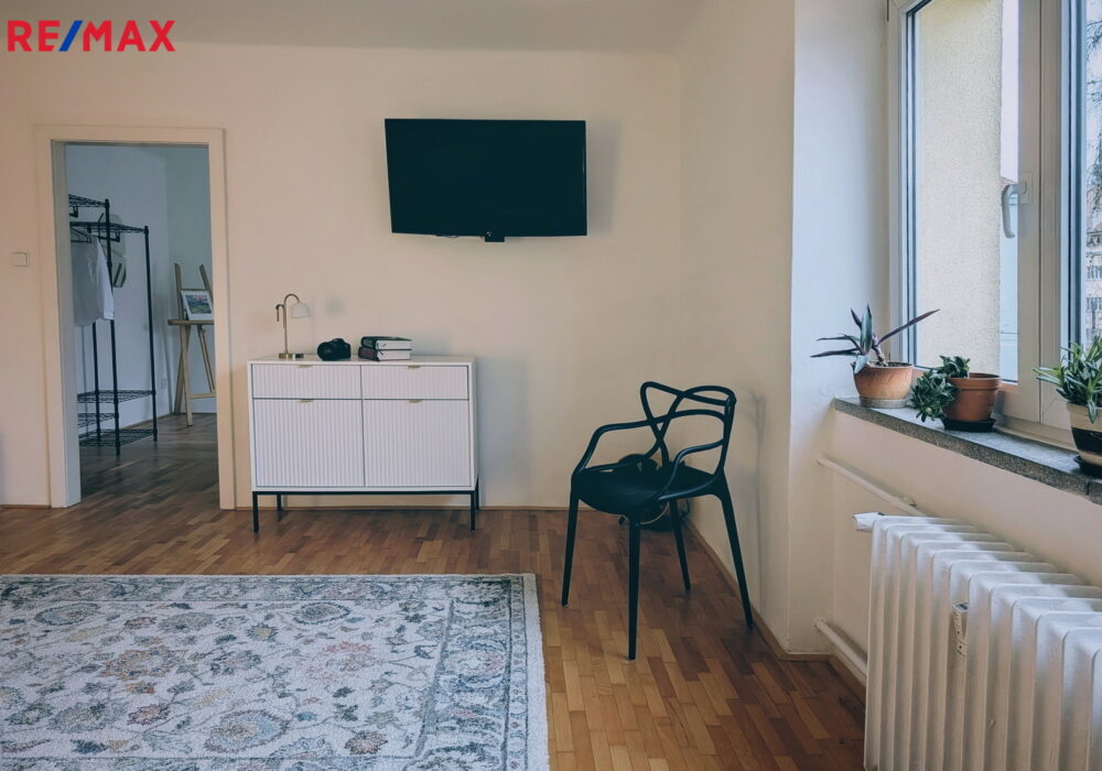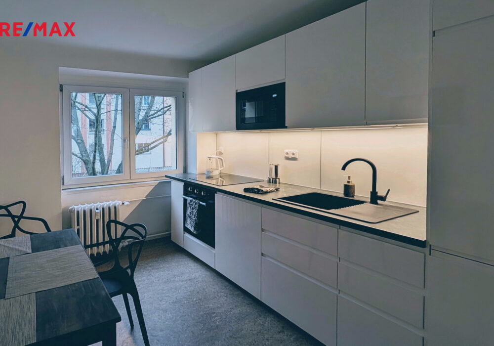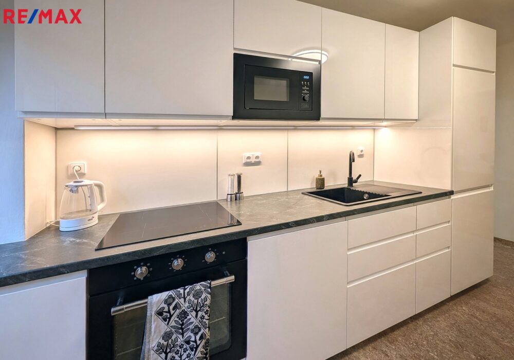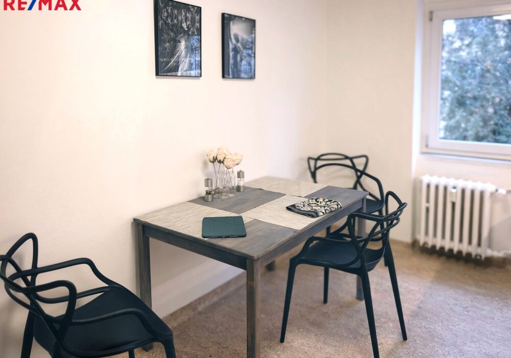 Byt je kompletně zařízený a připravený k okamžitému nastěhování. Díky promyšlené dispozici působí velmi vzdušně a příjemně. Dominantou je světlý obývací prostor s kuchyní, která je vybavena moderními spotřebiči a jídelním stolem. Prostorná ložnice navazuje na obývací část a vytváří příjemné místo pro odpočinek.