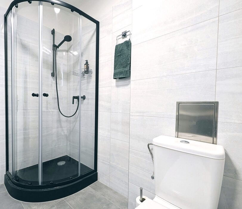 K dispozici je koupelna se sprchovým koutem a toaletou.