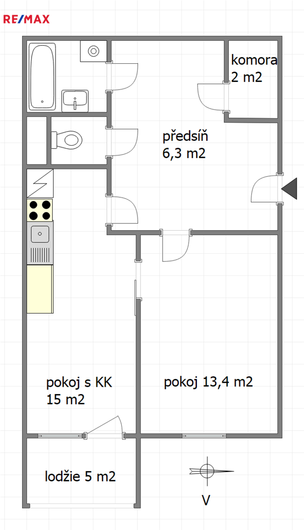 Byt má příjemně velkou lodžii 5 m2 orientovanou na východ s výhledem do zeleně.