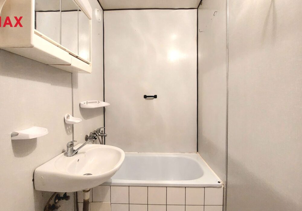 Byt disponuje obývacím pokojem s kuchyňským koutem a ložnicí, koupelnou a samostatným WC. Vybavení bytu je v původním stavu.