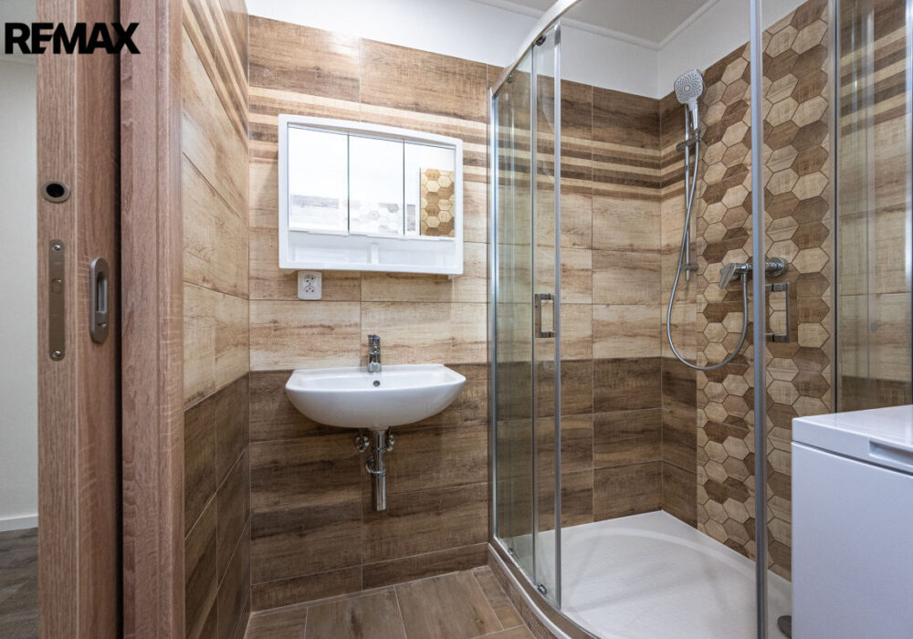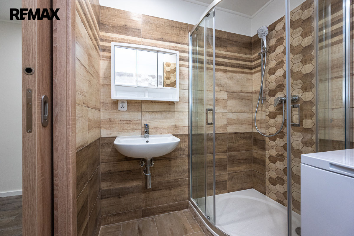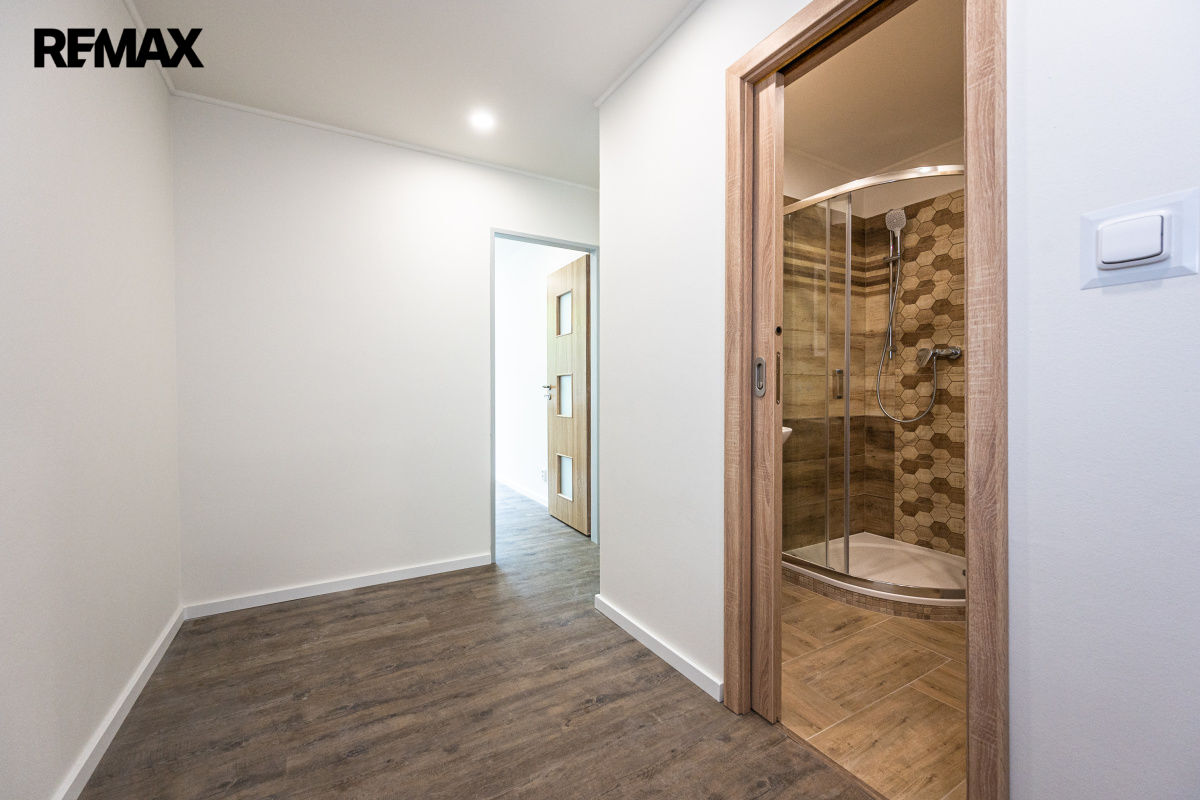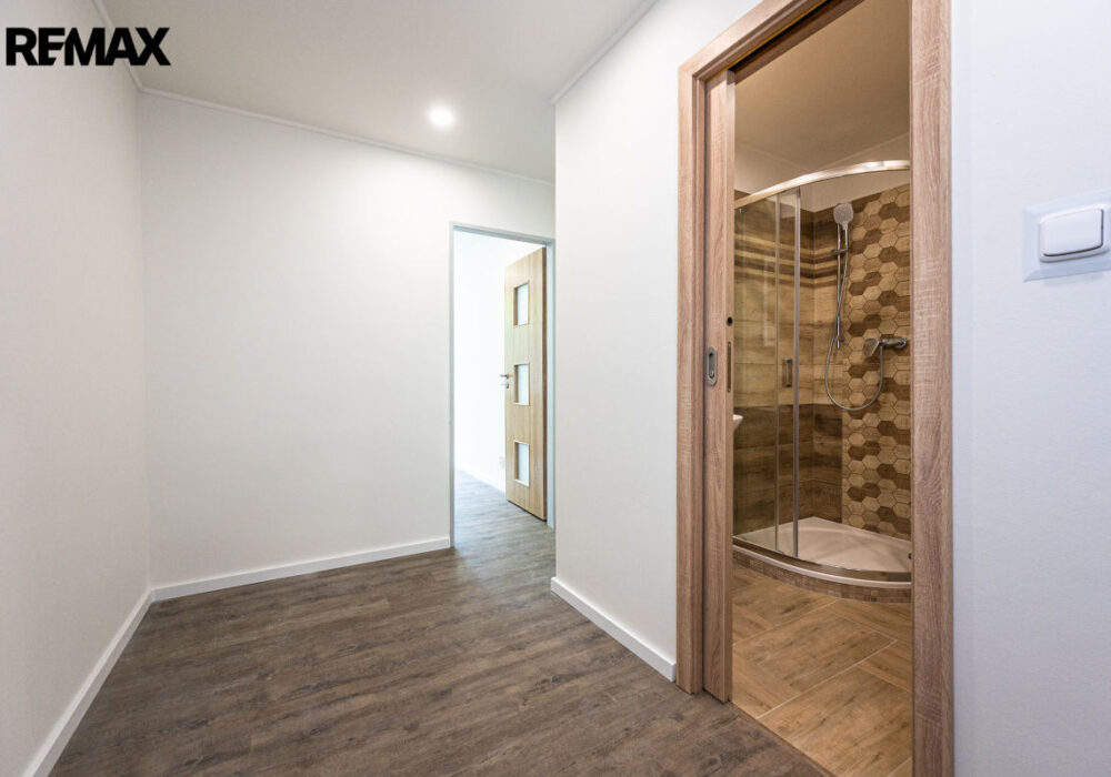 Byt se nachází ve zvýšeném přízemí (balkon okna cca 4m nad zemí). K bytu náleží komora mimo bytovou jednotku. Měsíční poplatky 4.500,- Kč + převod elektroměru na nájemce. Kauce 20.000,- Kč. Parkovat je možné před domem nebo v přilehlém okolí. V docházkové vzdálenosti zdravotní středisko, lékárna, ZŠ, MŠ, SŠ, Penny market, restaurace, BUS. Dobré spojení do Prahy autobusem, zastávka 3min chůzí.