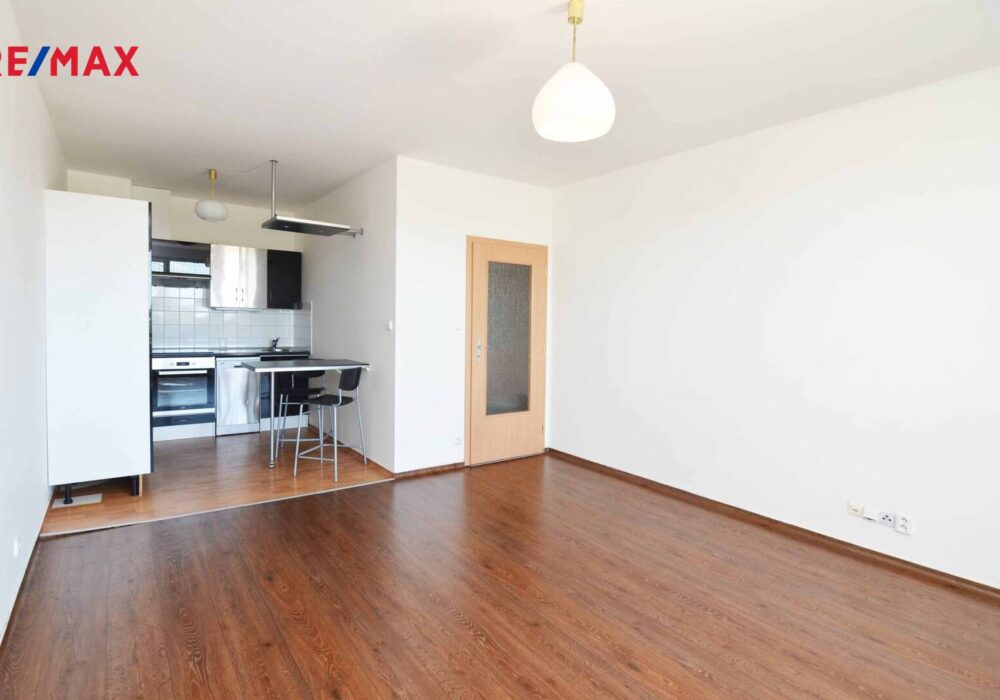 Dominantou tohoto bytu je prostorný obývací pokoj s kuchyňským koutem vybaveným veškerými zabudovanými spotřebiči. Z této místnosti je vstup na západně orientovanou terasu.