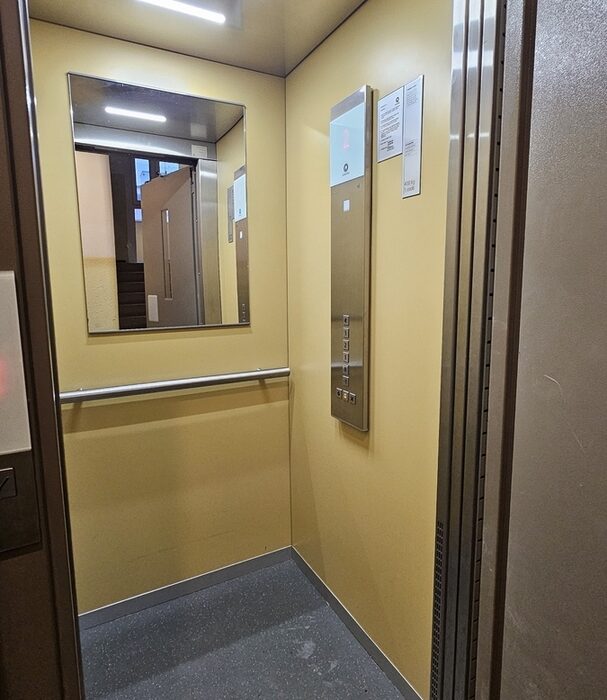 Byt sestává z prostorné vstupní předsíně, ze které se vchází do dvou neprůchozích pokojů, koupelny a toalety. V jednom z pokojů je kuchyňský kout, vybavený sporákem s troubou, myčkou nádobí. Dostatek úložného prostoru nabízí komora. V koupelně je vana, umyvadlo, plynový kotel a příprava na pračku. Toaleta je samostatná. Topení je podlahové.