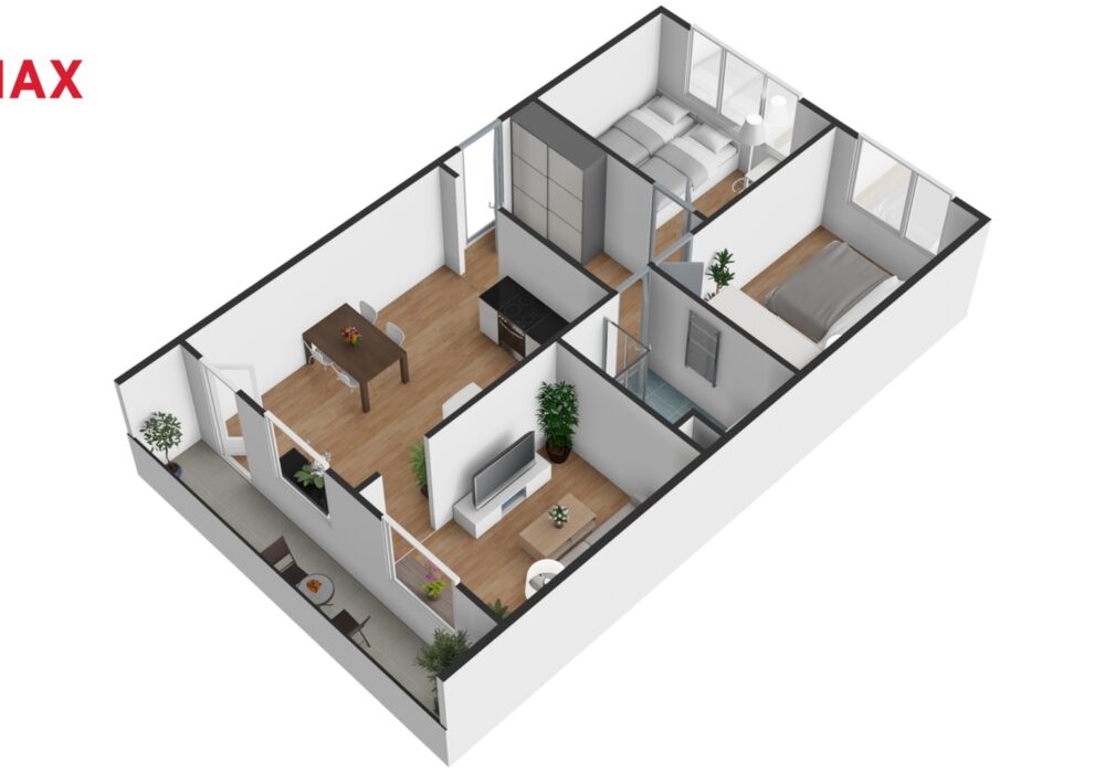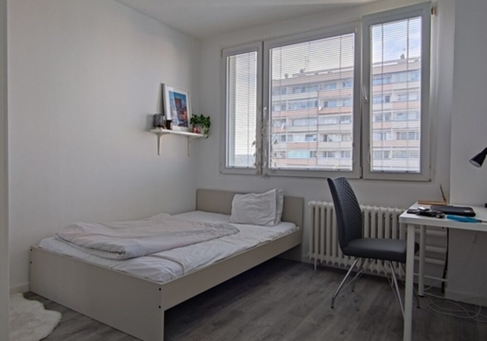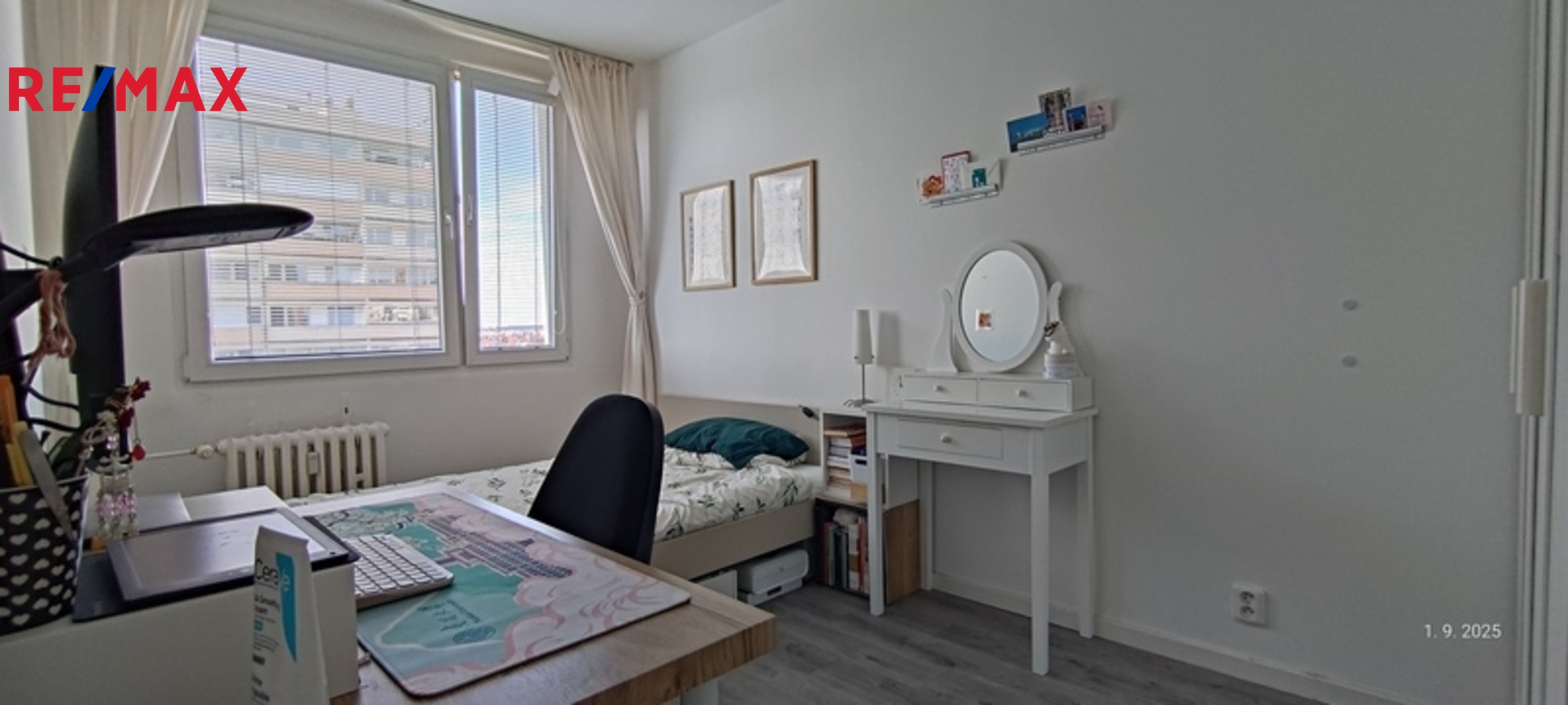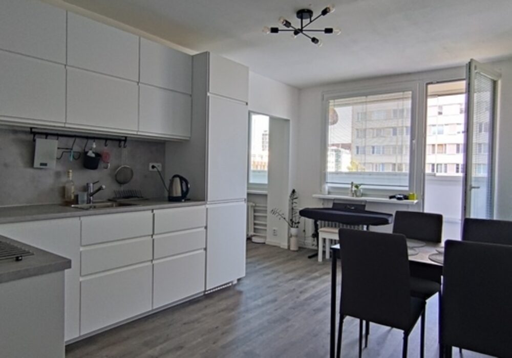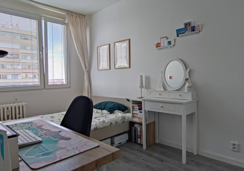 Byt se nachází v šestém nadzemním podlaží z dvanácti podlažního panelového domu a je ve velmi dobrém a hezkém stavu po rekonstrukci. Ze vstupní chodby je přístup do dvou ložnic, koupelny a kuchyně s jídelním stolem, ze kterého se vstupuje do útulného obývacího pokoje. Z kuchyně je také vstup na zasklenou lodžii. V bytě je moderní koupelna se sprchovým koutem, obývací pokoj s TV a sedačkou, dvě ložnice s postelemi a praktická komora na patře. Kuchyňská linka je vybavena spotřebiči včetně myčky nádobí.