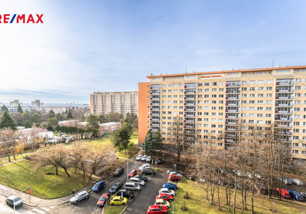 Díky vyššímu patru je byt světlý a nabízí příjemný výhled. Dům je udržovaný a vybaven výtahem.