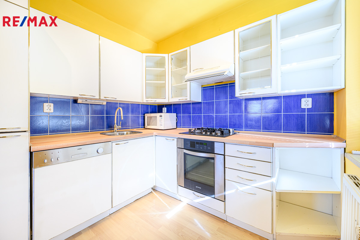 Součástí je malý sklep (cca 1×1 m) a byt je víceméně zařízený – zůstává nábytek, lednice, mrazák, myčka, horkovzdušná trouba i pračka.