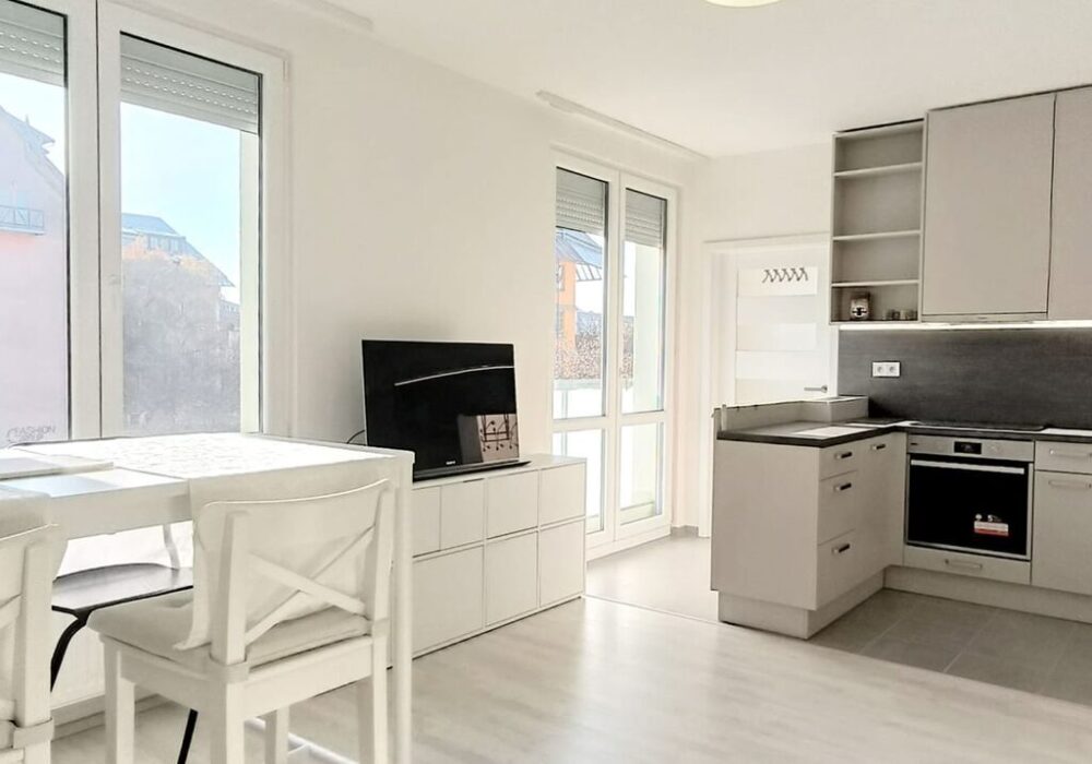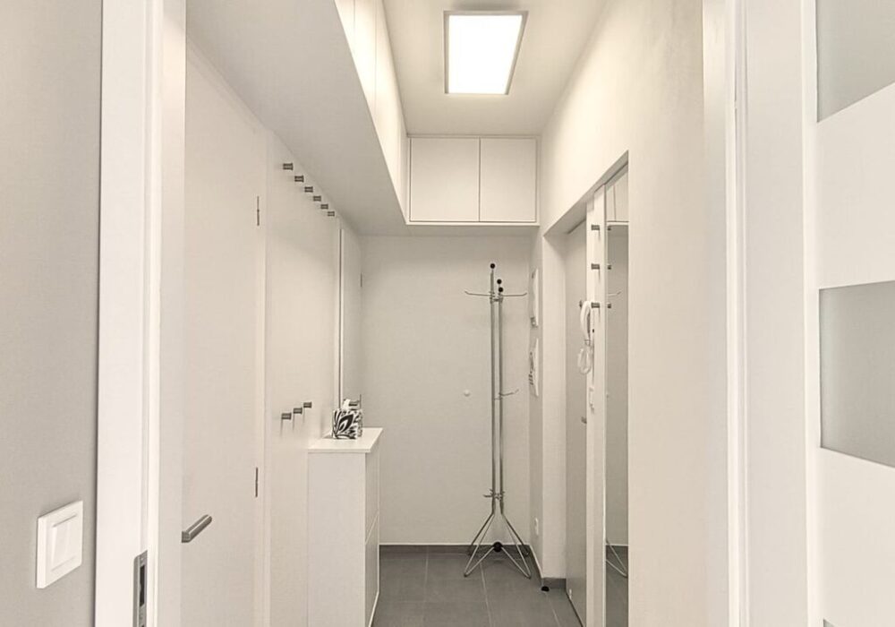 Velice světlý byt o velikosti 3+kk 61 m2 je situován ve třetím nadzemním podlaží bytového domu s výtahem. Byt disponuje dvěma samostatnými ložnicemi, kuchyňským koutem vybaveným spotřebiči, obývacím pokojem. Samozřejmostí je koupelna se sprchovým koutem a samostatné WC.