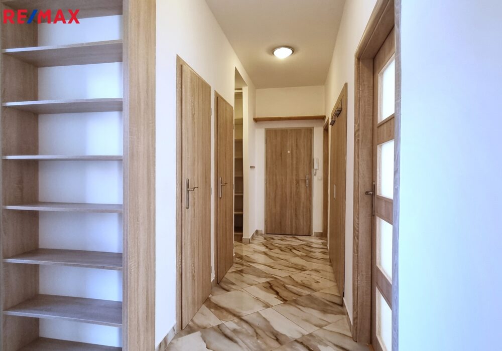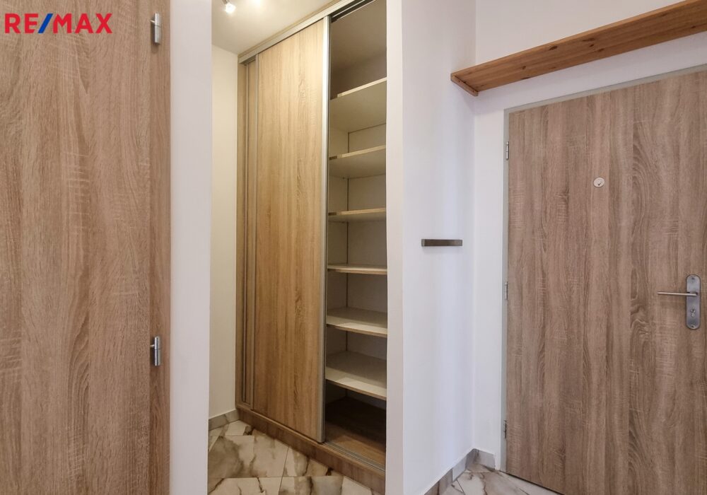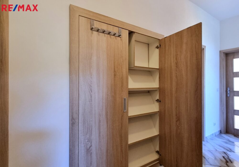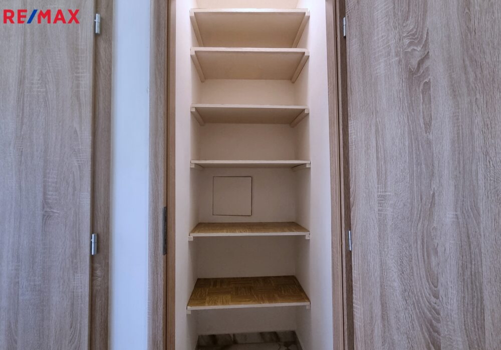 Součástí bytu jsou praktické úložné prostory – vestavěná skříň v ložnici, vestavěný botník a skříň na chodbě, spíž a sklep. K bytu náleží malý zasklený balkon.